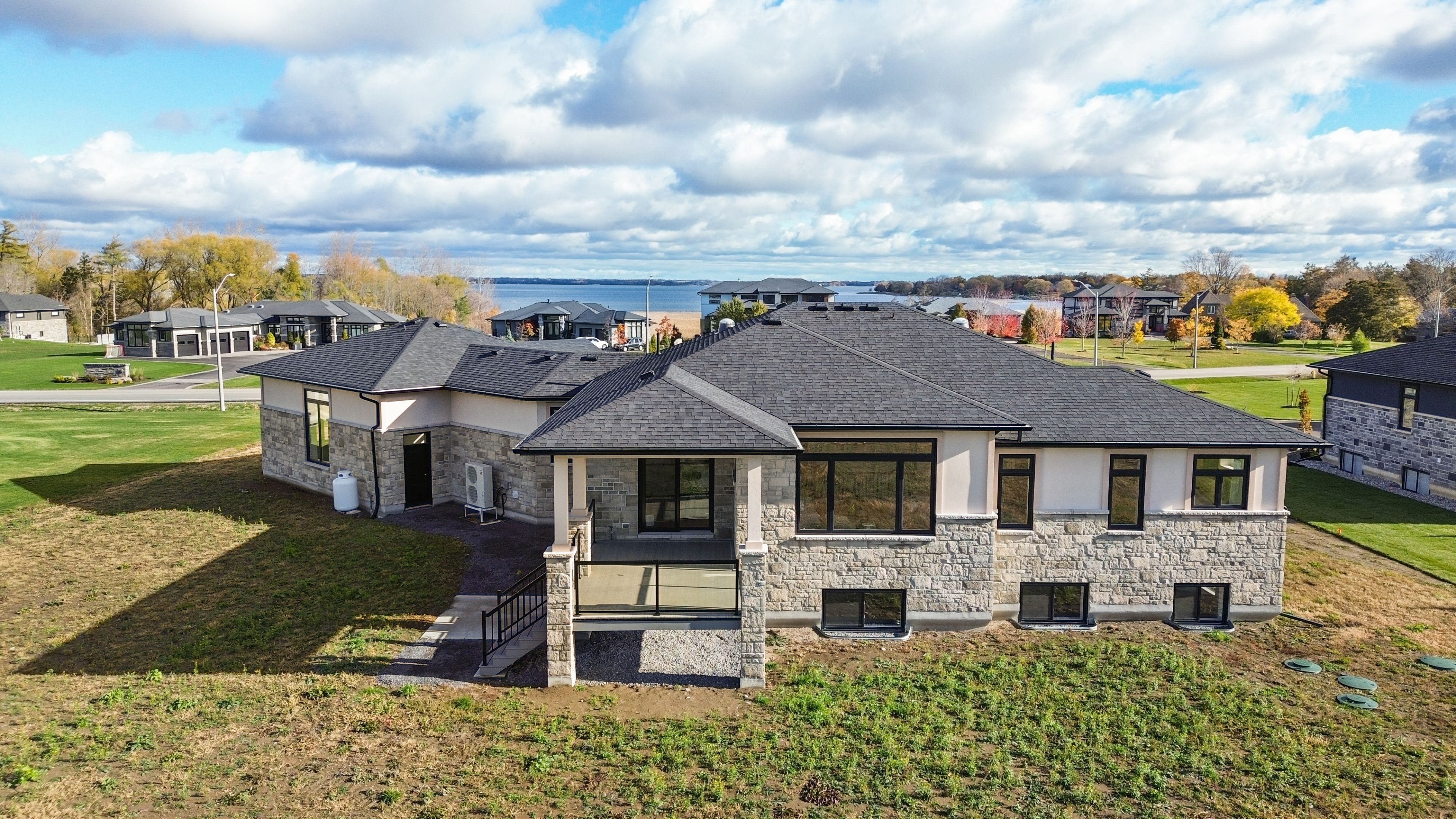 This striking executive stone and stucco home offers scenic water views and is located in the desirable "watermark on the bay" community in prince edward county - just minutes from belleville and close to trails, parks, vineyards, and the bay of quinte. Residents of this elegant enclave enjoy private access to a marsh-front walking trail along the shoreline. Built with energy-efficient insulated concrete form (icf) construction and a forced air electric heat pump, the home is designed for year-round comfort. Inside, you'll find wide-plank wood flooring, quartz countertops, quality cabinetry, and a striking granite island in the contemporary kitchen. The spacious layout includes a walk-in butler's pantry, a generous mudroom with laundry, and a beautifully appointed 5-piece ensuite. Outdoor living is just as impressive, with a covered front porch and a rear deck featuring glass railings. The bright and open lower level has drywalled walls and is ready for your finishing touch. An oversized attached garage - nearly 1,000 sq. Ft. - offers high ceilings, large windows, and ample space for storage or hobbies. With municipal water, bell fibe internet, and a premium location in one of the area's most exclusive neighbourhoods, this home delivers comfort, style, and lasting value.