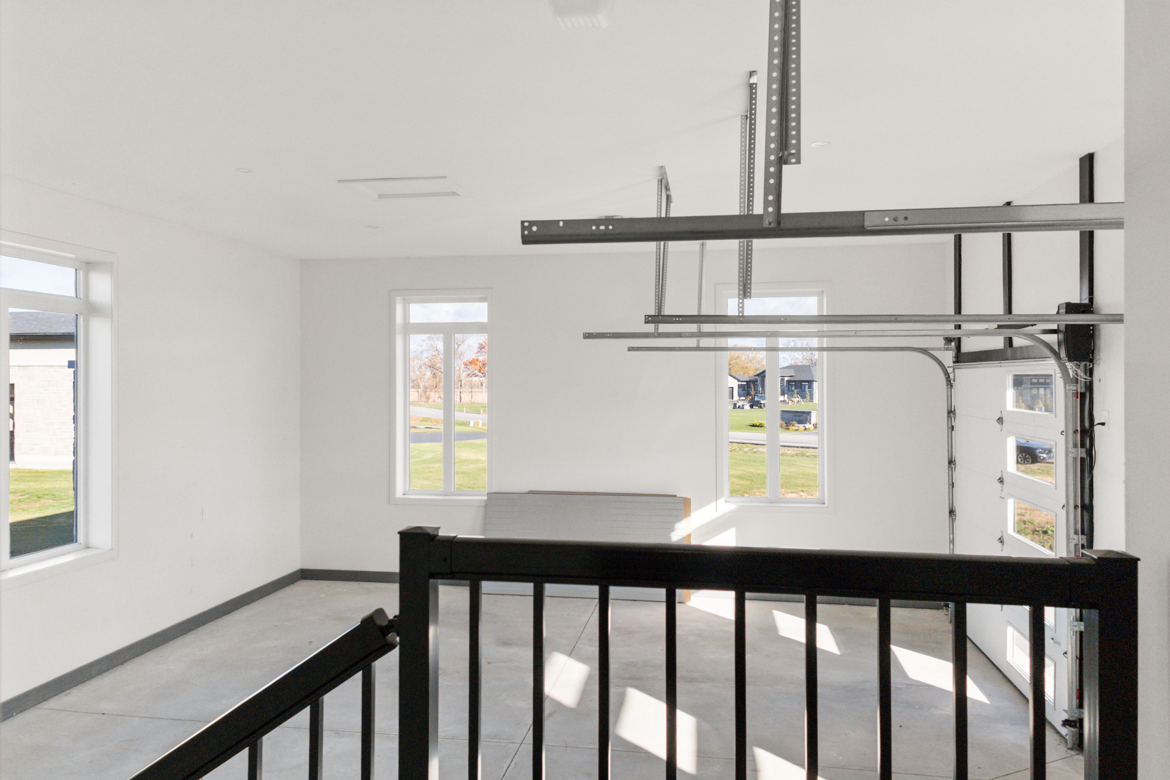 • Large garage with high ceilings and plenty of space for storage and hobbies.