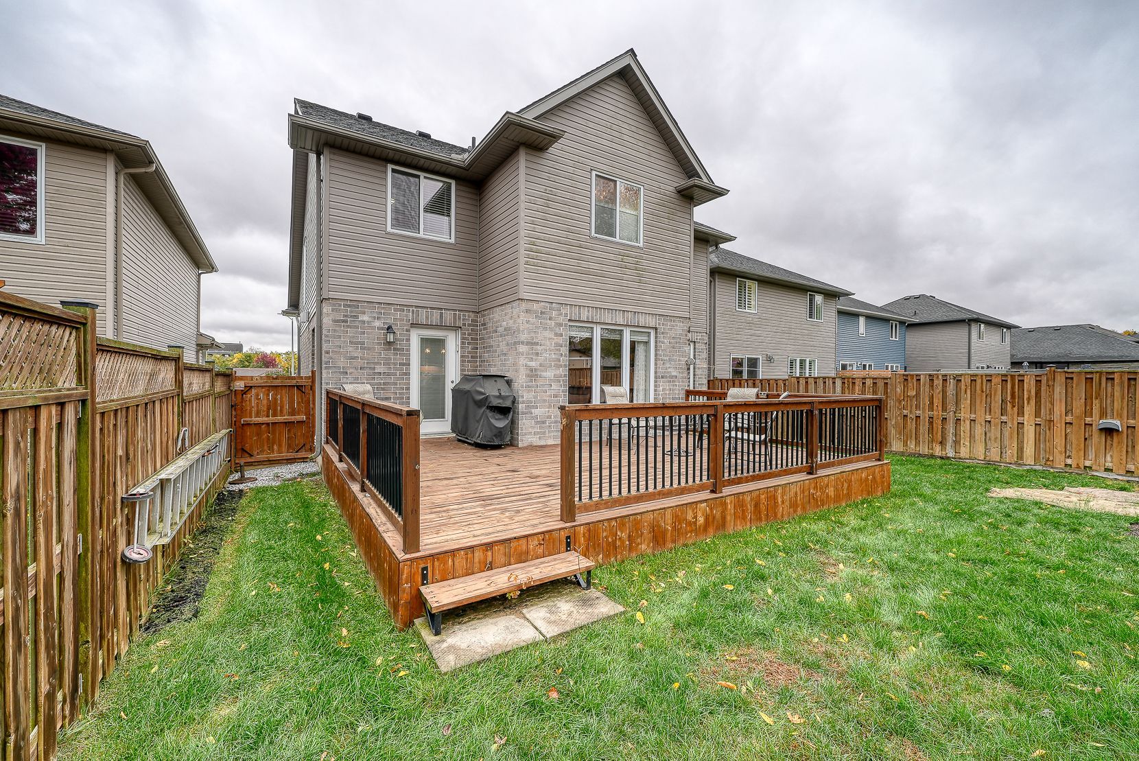 Absolutely stunning two-story home set on a large lot nestled in one of tillsonburg's desired neighborhoods. From the moment you set foot in this extremely well cared for home you'll be impressed with the exceptional quality and outstanding design. Finished tastefully on all three levels you'll be greeted with open to above foyer and solid wood stairs case that leads to a spacious second floor that features an oversized primary bedroom with a spa-like ensuite with a stunning tiled glass shower. The main floor boast a custom kitchen with upgraded appliances, a generous size eating area, overlooking the private fenced backyard and access to a large deck. The living room is bright, open and an ideal place to relax. The convenience of main floor laundry is an added value bonus. The lower level is appealing with a large family room. Ideal for entertaining along with lots of storage. It has a sewing room and an extra washroom. Tremendous value, quality and style are found in this three bedroom, 4 bathroom home where even the most discerning will be impressed.