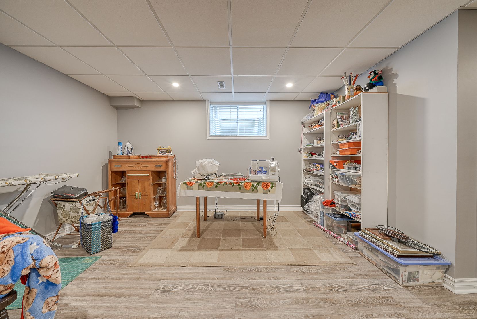 • Lower level includes a large family room, sewing room, and extra washroom.