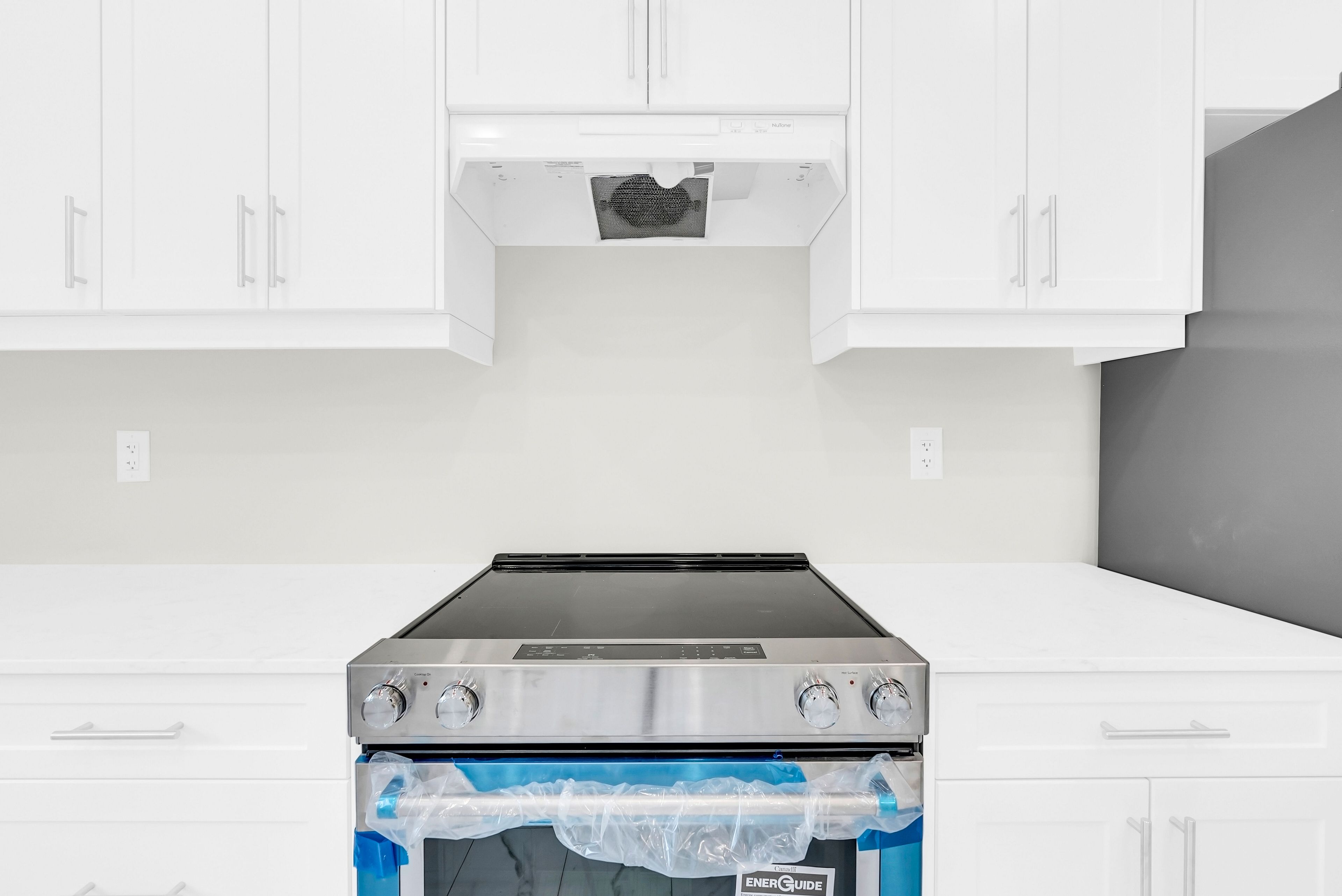 • Chef's kitchen features quartz countertops and high-end KitchenAid appliances.