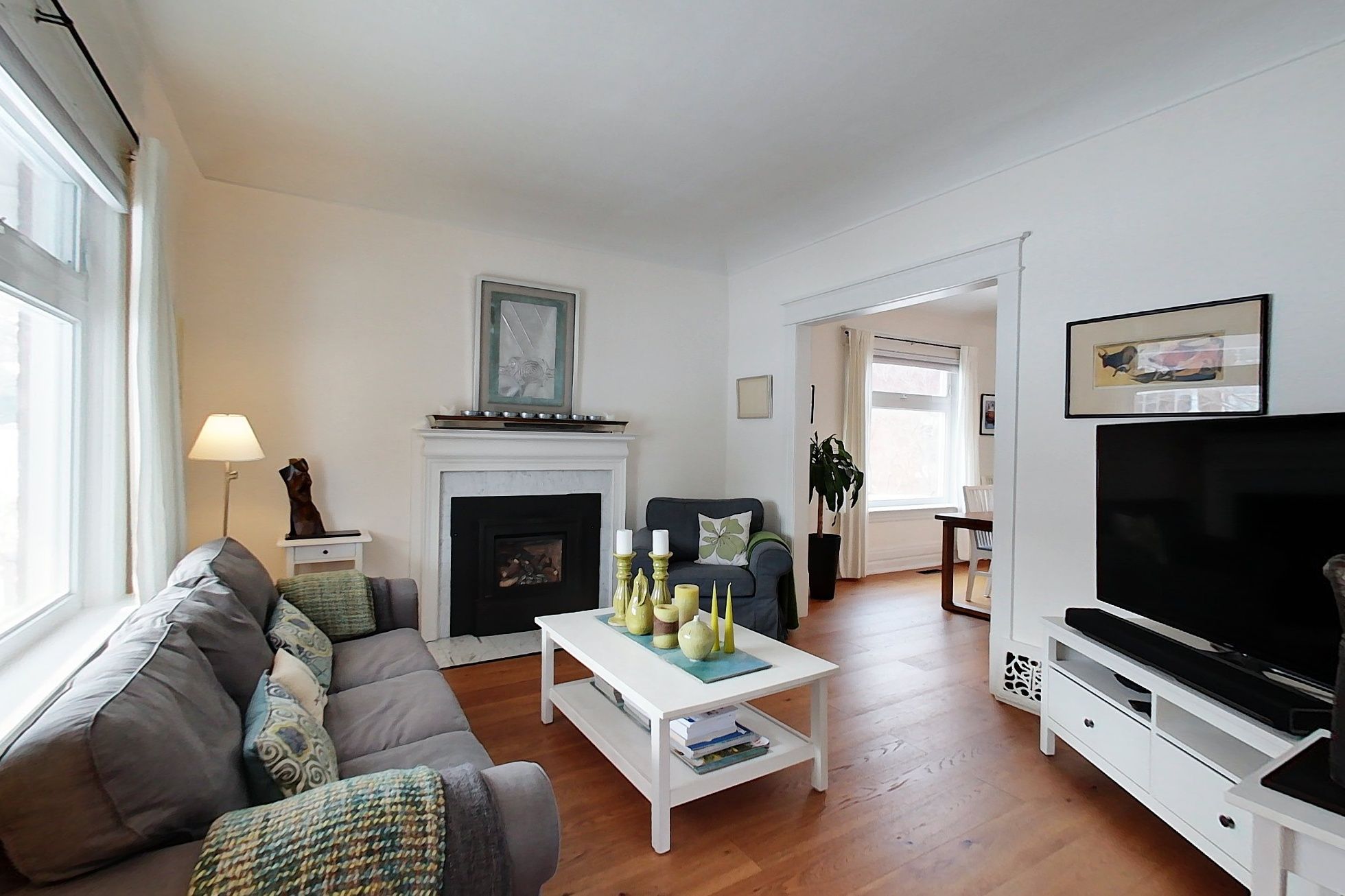 • Bright interior with 9-foot ceilings and large windows throughout.