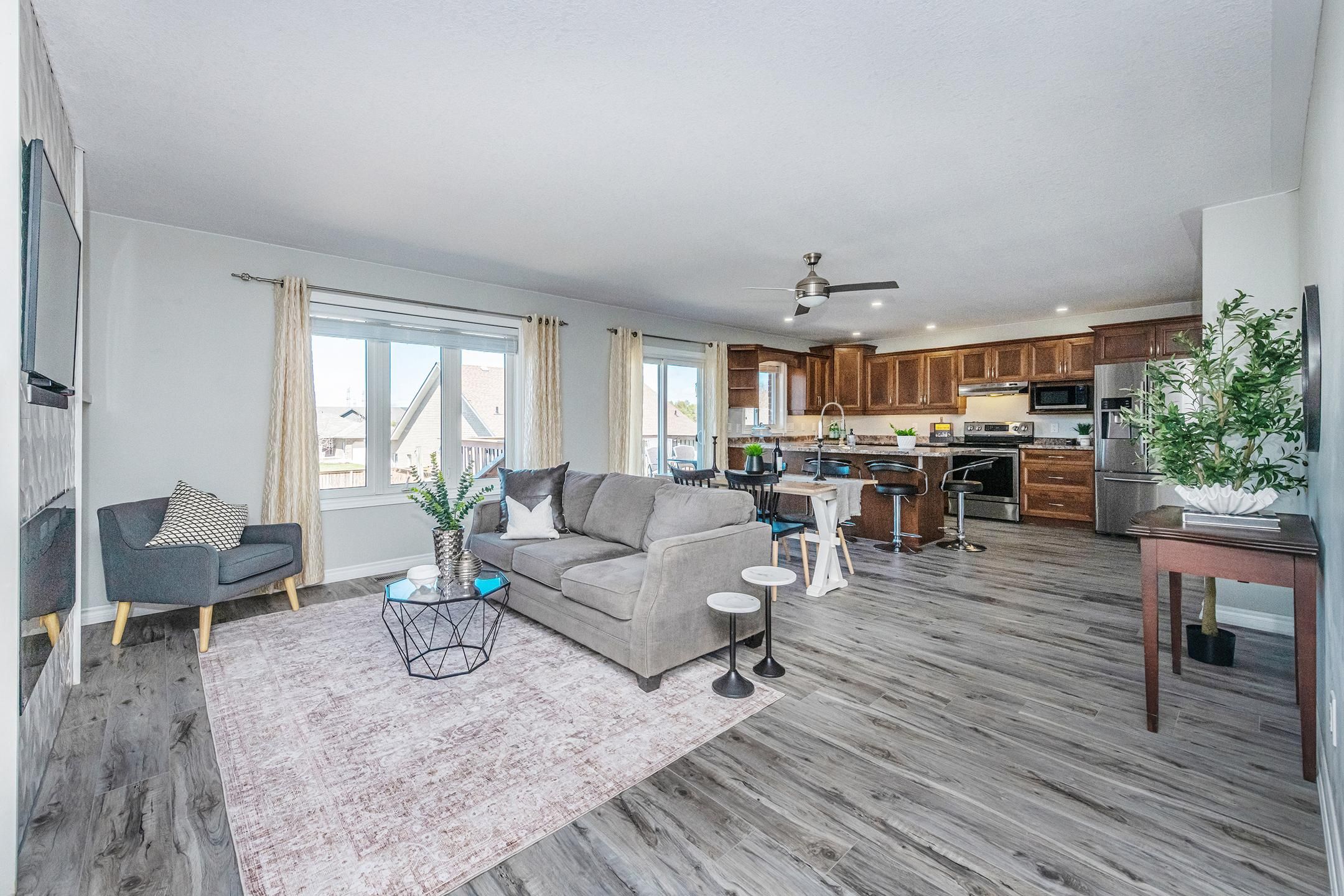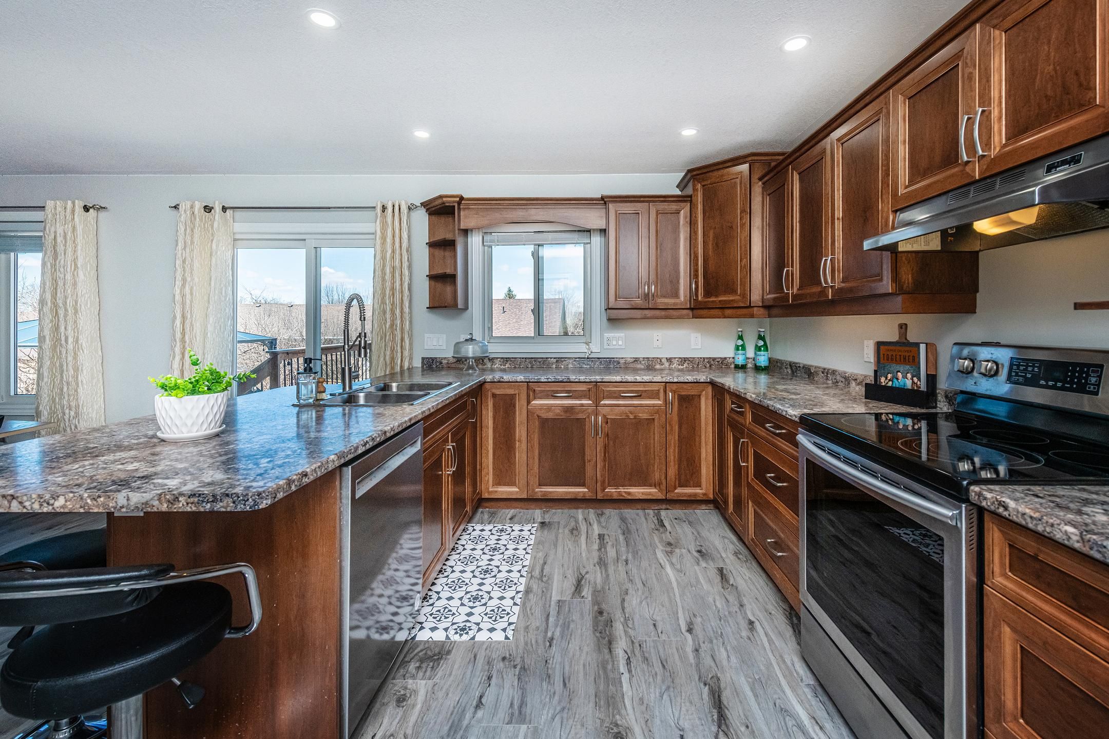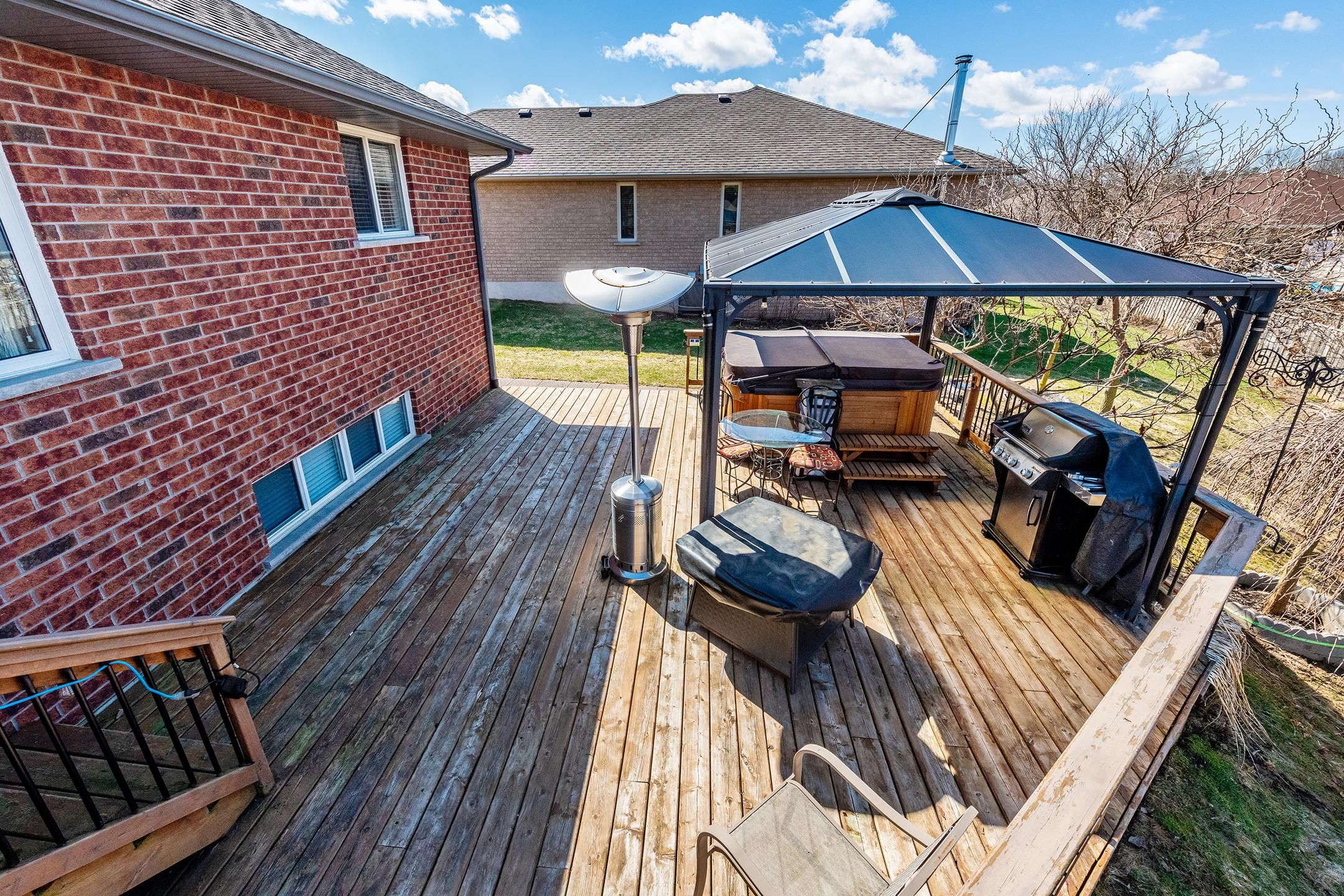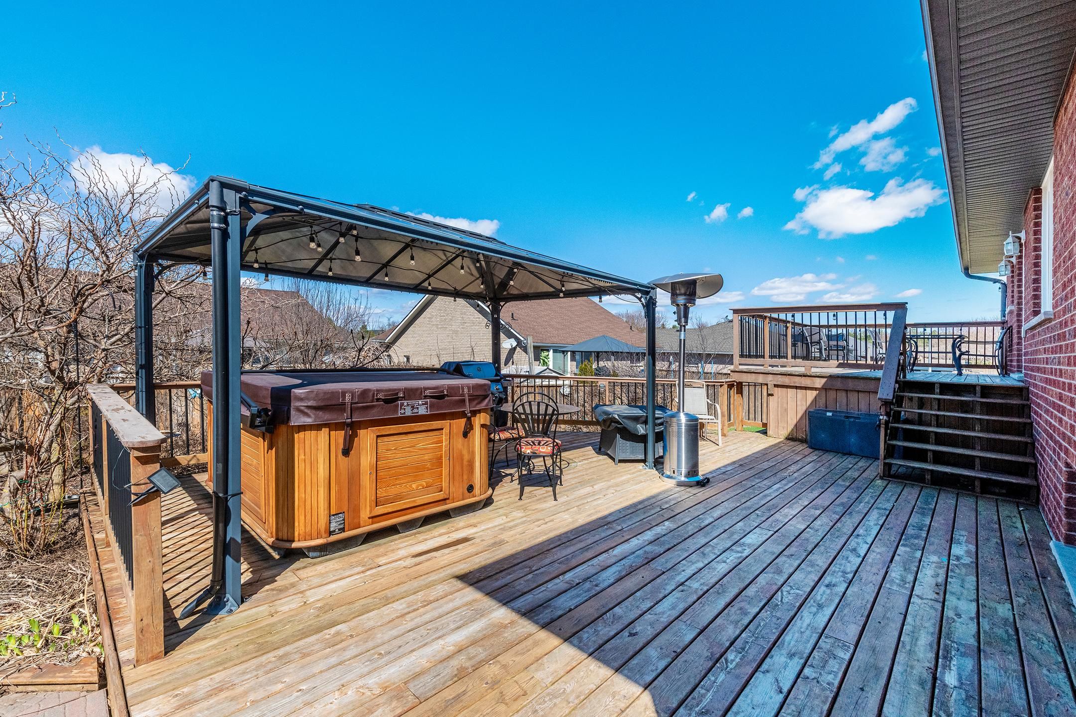 Welcome home to this lovely true bungalow in a sought after neighbourhood of hanover! This well cared for 2+1 bedroom, 3 bathroom home is ideal for a young family or those wanting to downsize. The upper level has luxury vinyl flooring throughout (2026), includes all appliances, and flat screen tv with soundbar and speakers. Walk out of the kitchen onto a lovely 2 tier deck complete with gazebo and salt water hot tub (2024). This fine home boasts an impressive lower level complete with above grade windows, full bathroom and bedroom as well as an extra large recreation room that has ample room for a seating area and a pool table.