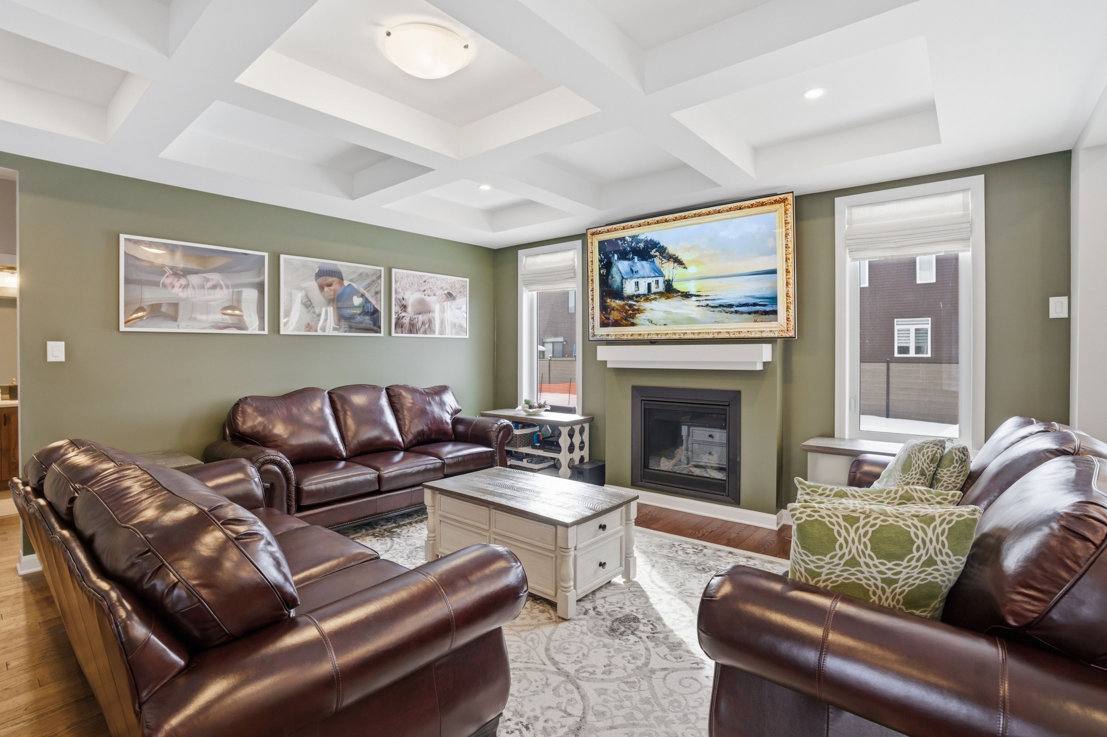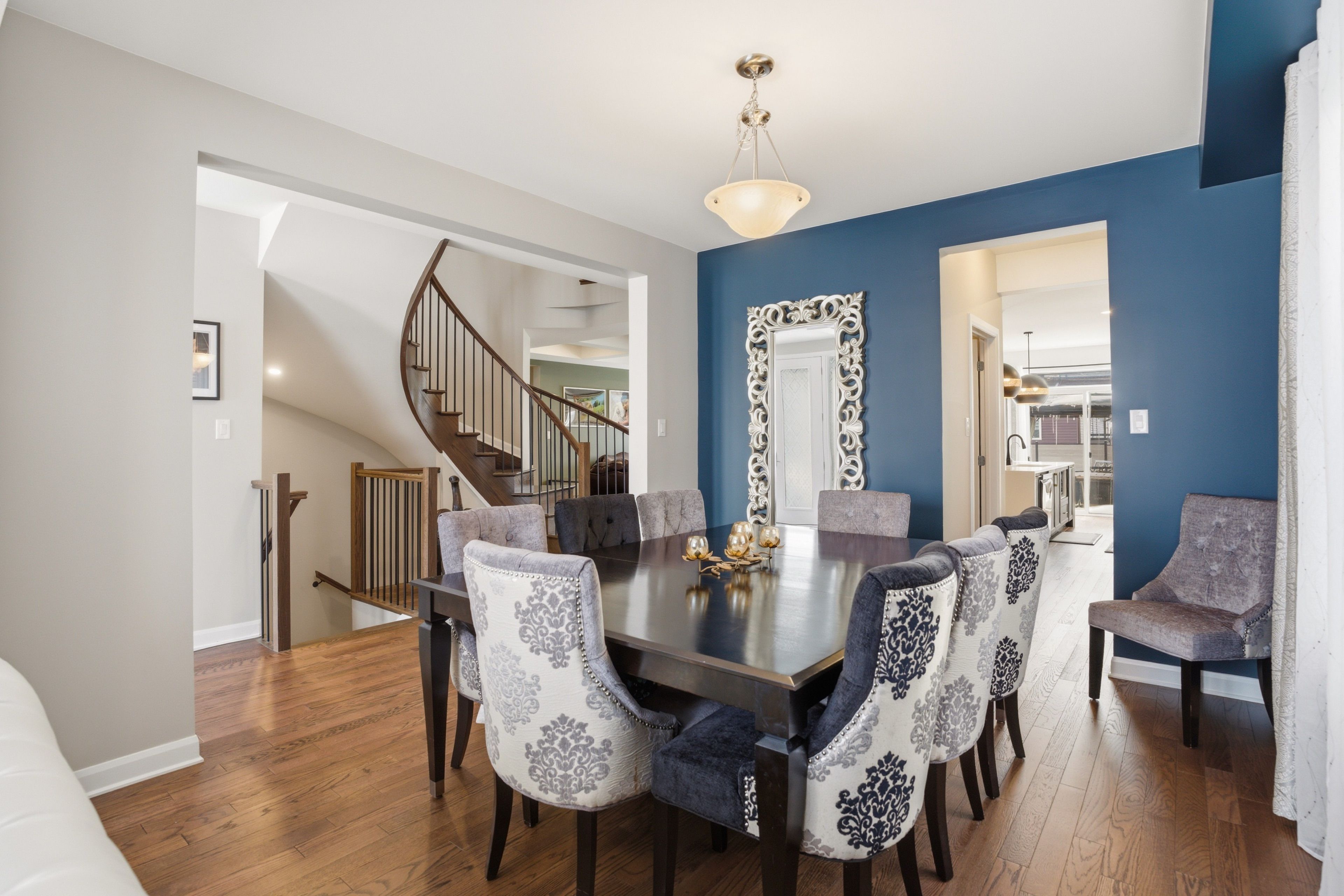 This home is an exceptional elderberry ii model offering 4300 sq ft, 4 bedrooms + den, and 5 bathrooms, where a dramatic hardwood spiral staircase, vaulted ceilings, and a rare walkthrough kitchen layout create a home that truly stands out. With over $200,000 in upgrades, a freshly painted interior, and thoughtful design choices throughout. The main level sets the tone with 9-foot ceilings and a gracious front sitting room that opens into the dining room, flowing seamlessly into a chef's kitchen loaded with the highest-level kitchen upgrades. Enjoy a striking waterfall island, oversized sinks, extended cabinetry, custom garbage and recycling drawers, and a walk-in pantry with servers. The kitchen then opens into a bright, inviting living room anchored by a stunning coffered ceiling and soaring vaulted ceilings. A main-level office/den adds flexibility for work, study, or a quiet retreat, while the oversized mudroom with a walk-in closet brings real, practical function to busy households. Upstairs, the home continues with 9-foot ceilings and walk-in closets in every bedroom. The primary suite features two walk-in closets and a beautiful five-piece ensuite with a freestanding soaker tub, separate shower, and double sinks. A second oversized bedroom includes its own three-piece ensuite and walk-in closet, while the remaining two bedrooms share a jack-and-jill four-piece bath. A well-sized laundry room with a sink and cabinet storage adds everyday practicality to this level. The fully completed basement (2025), offering generous open space with pot lighting, a wet bar with countertop and sink, a bathroom, perfect for entertaining and excellent storage space. Outside, enjoy a fenced yard with a gazebo and an oversized 16' x 24' deck that's made for summer nights and hosting. The fully interlocked front yard delivers serious curb appeal, and a double-car garage plus a four-car driveway. Homes with this much space, style, and upgrade value don't come around often!