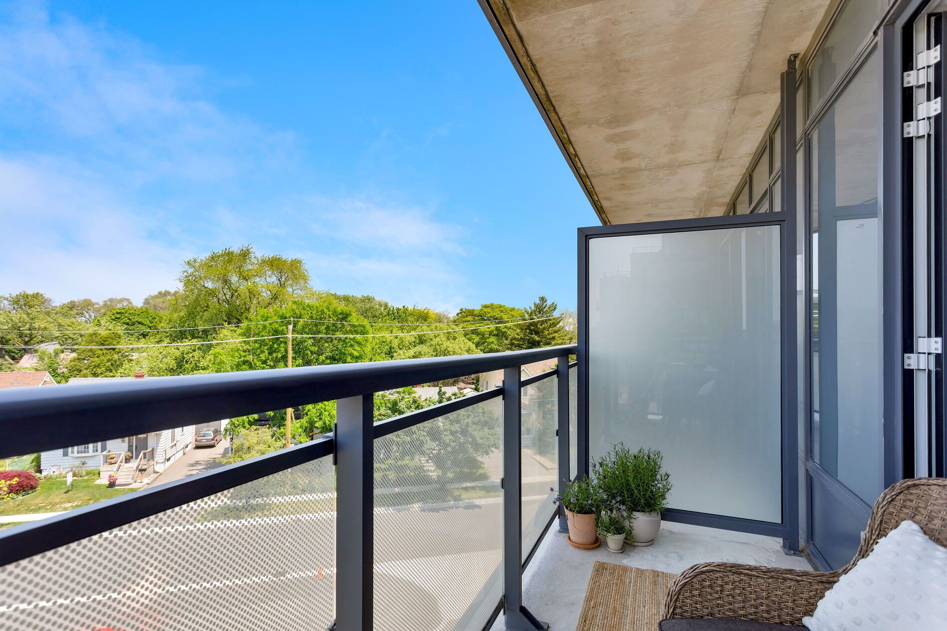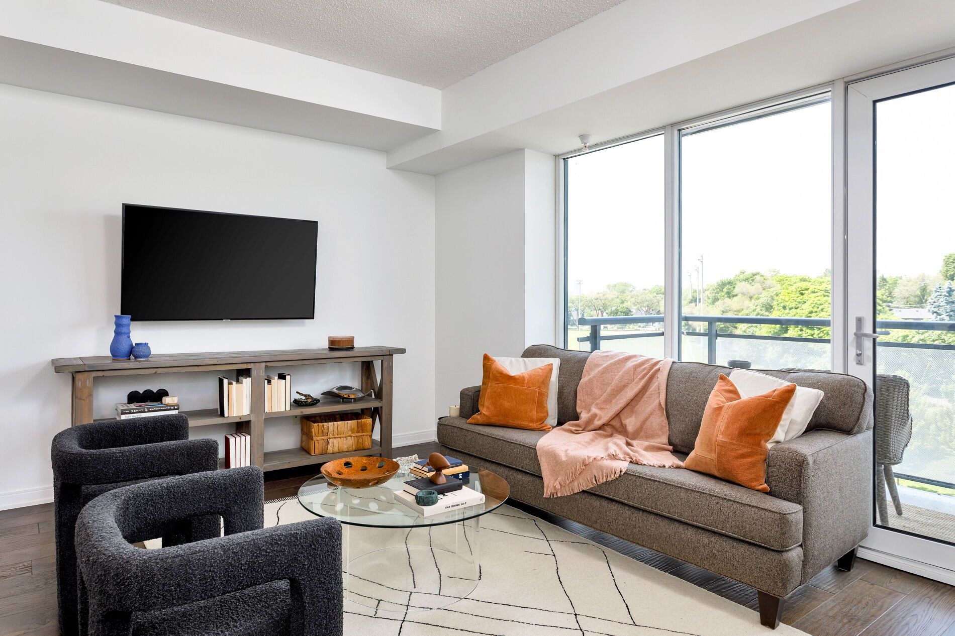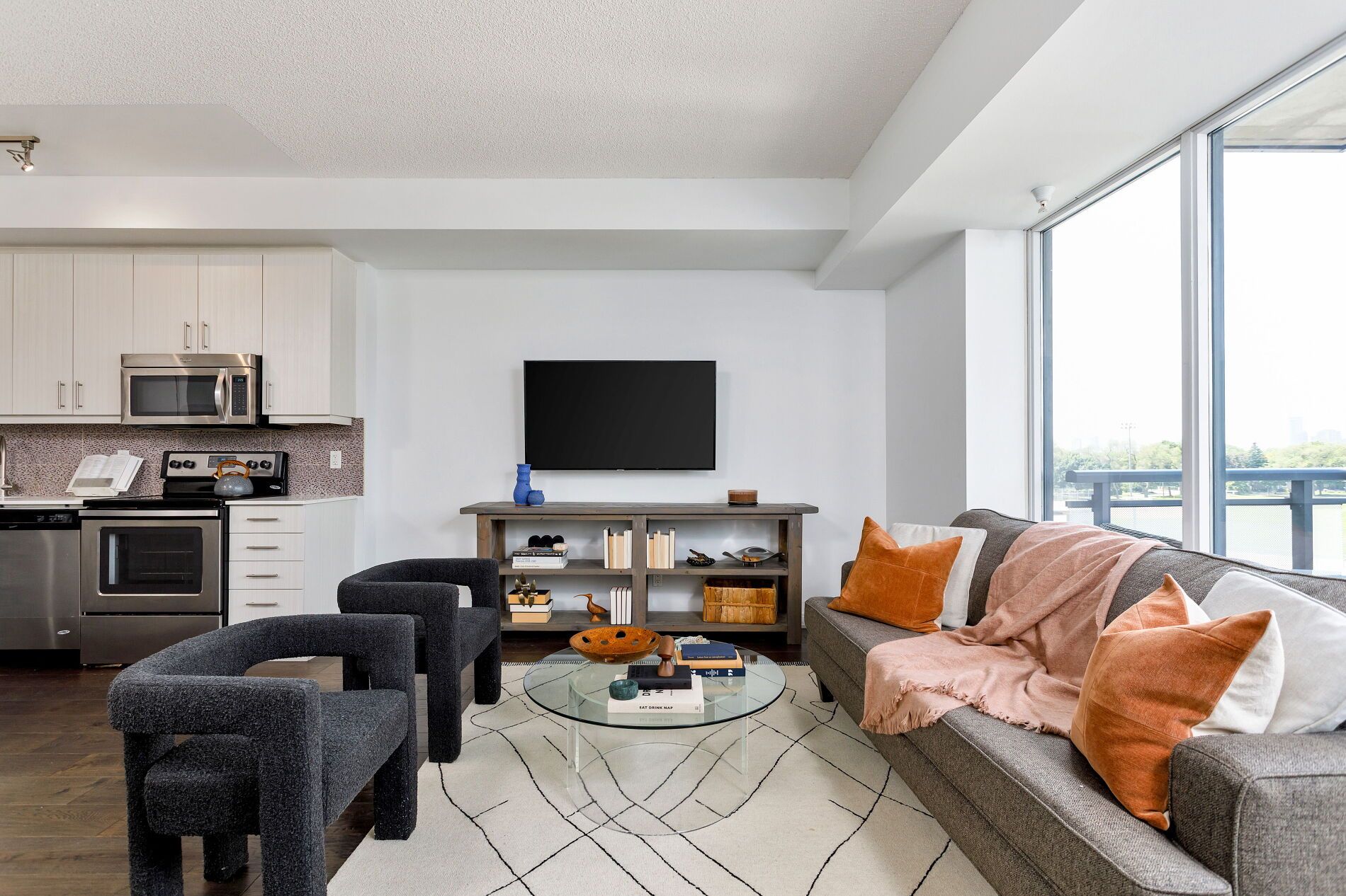 • Open-concept living area leading to a north-facing balcony.