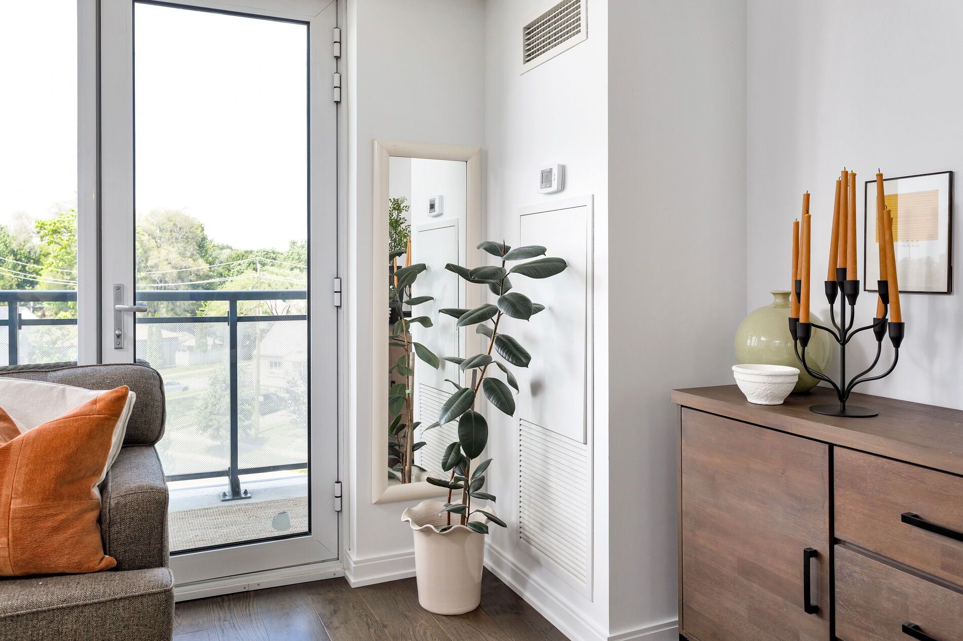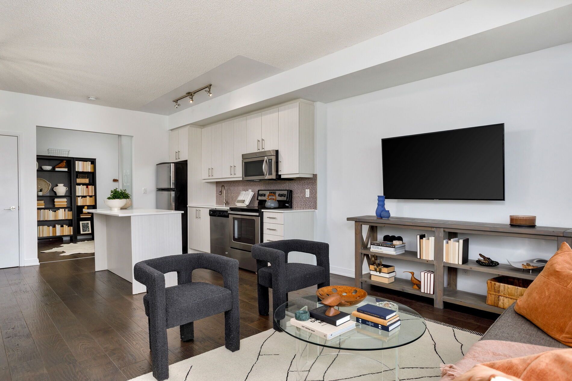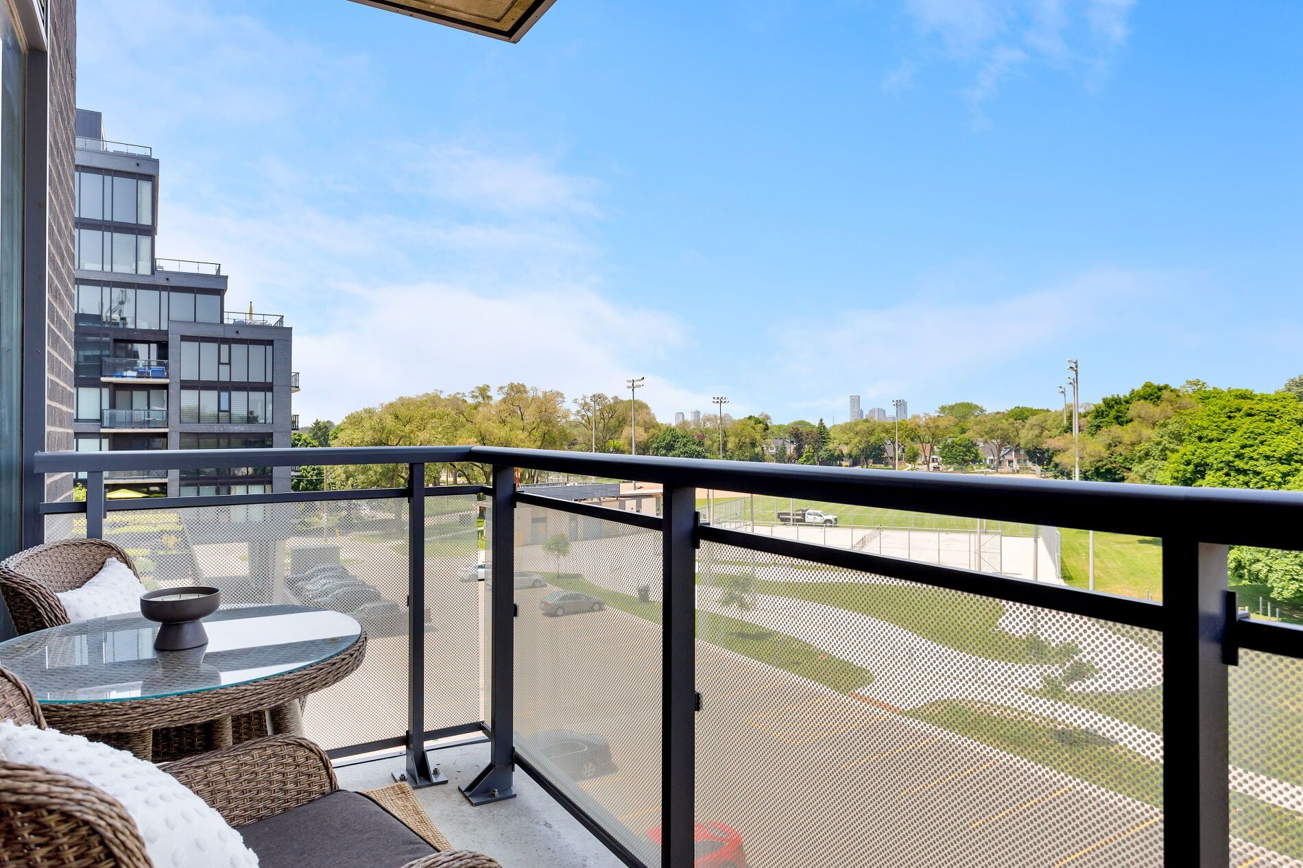 • Open-concept living area leading to a north-facing balcony.