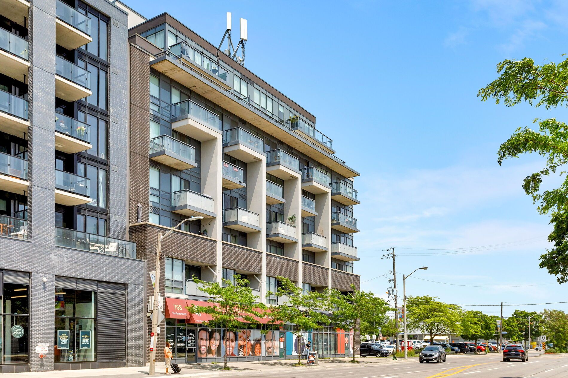 Not your average glass box in the sky! Light-filled. Spacious. Exceptionally livable. Welcome to 760 the queensway, where smart design meets everyday comfort in this sun-drenched 2-bedroom, 2-bathroom suite. Far from the typical cookie-cutter condo, this home offers substance and space - with high ceilings, hardwood floors, and a thoughtfully designed layout that actually lives the way you do. The 2-bedroom floor plan provides flexibility and privacy, while the open-concept living area is filled with natural light and opens to a north-facing balcony - perfect for morning coffee or evening people-watching over the park and baseball diamond below. Details that make a difference: inside, wide-plank engineered hardwood adds warmth and durability throughout. The primary bedroom is a true retreat - exceptionally large with floor-to-ceiling windows that flood the space with natural light, plus his-and-hers closets and a spacious 4-piece ensuite. Storage is abundant here, from generous closet space in both bedrooms to an owned locker conveniently located just 10 steps from your front door. And yes - there's owned parking, too. Set directly across from a major grocery store, just minutes to transit, cafe, and local spots, this location is as practical as it is connected. Comfort, character, and a layout that works - this is condo living with breathing room. Ideal for first-time buyers looking to break into the toronto market, or empty nesters seeking a low-maintenance lifestyle close to all essentials.