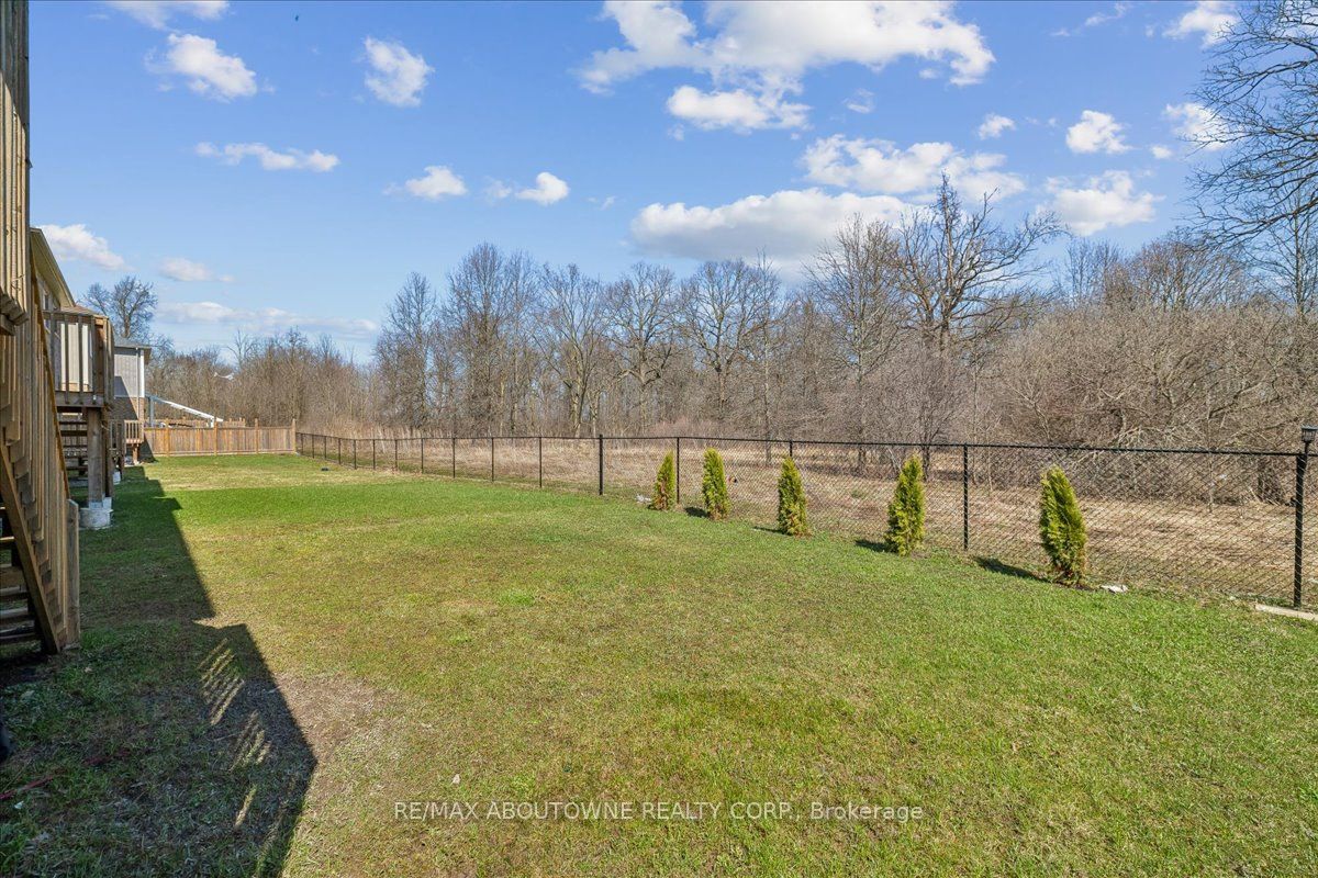 Welcome to 7608 tupelo crescent, located in the desirable westlane area in niagara falls! A well-designed four bedroom, 2. 5 bathroom family home backing onto a quiet woodland. The main level offers 9' ceilings, a kitchen with an island, a living room with a large window overlooking the back yard and forest, dining area, pantry, mud room, laundry room and powder room. Access to the garage is from the main level. The hallway will take you to the beautiful hardwood staircase where you will walk up a few steps to an over-sized family room with 13' ceilings and two large french doors leading to a deck. The family room is a perfect spot to have a movie night with the family! Just a few steps up from the family room, you will enter the landing leading to a primary bedroom with 2 large walk in closets and a 4 piece bathroom with a large soaker tub. A further three bedrooms and a 4 pc family bathroom. The basement with an over-sized window is unfinished with rough in plumbing for a bathroom. It awaits your own design to meet your family needs! This is a wonderful place to call home with so many practical features!