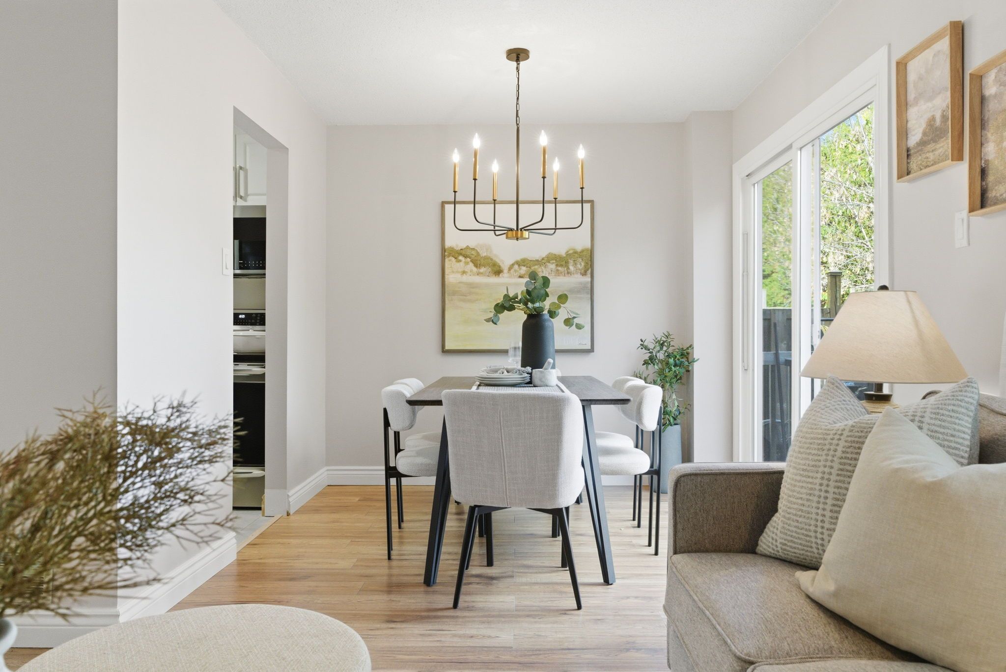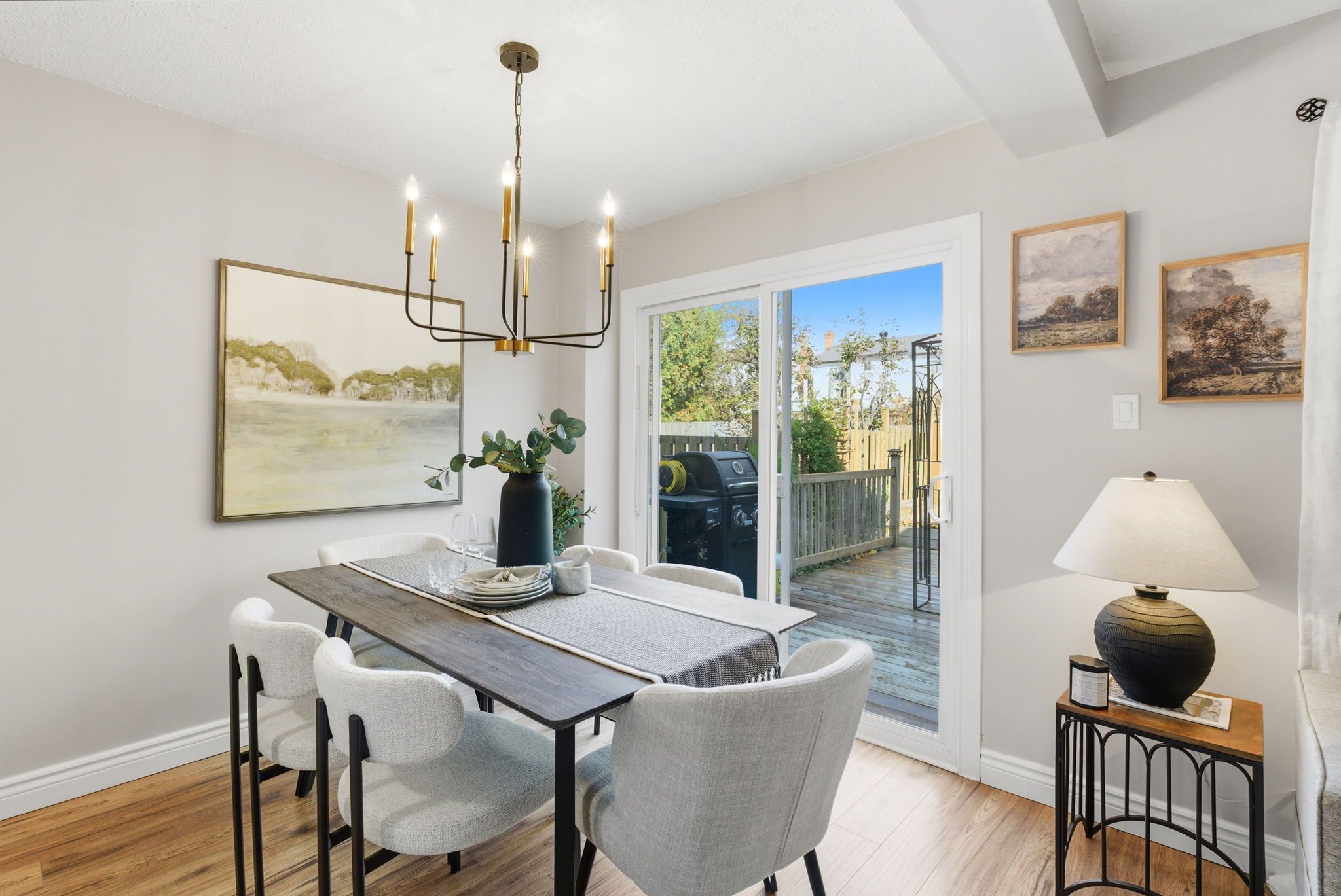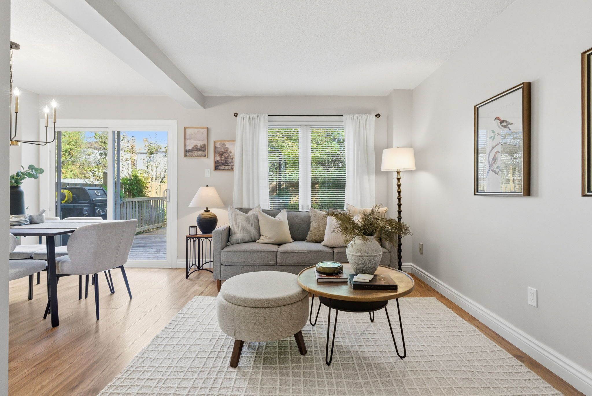 • Main floor features an L-shaped living and dining area with deck access.