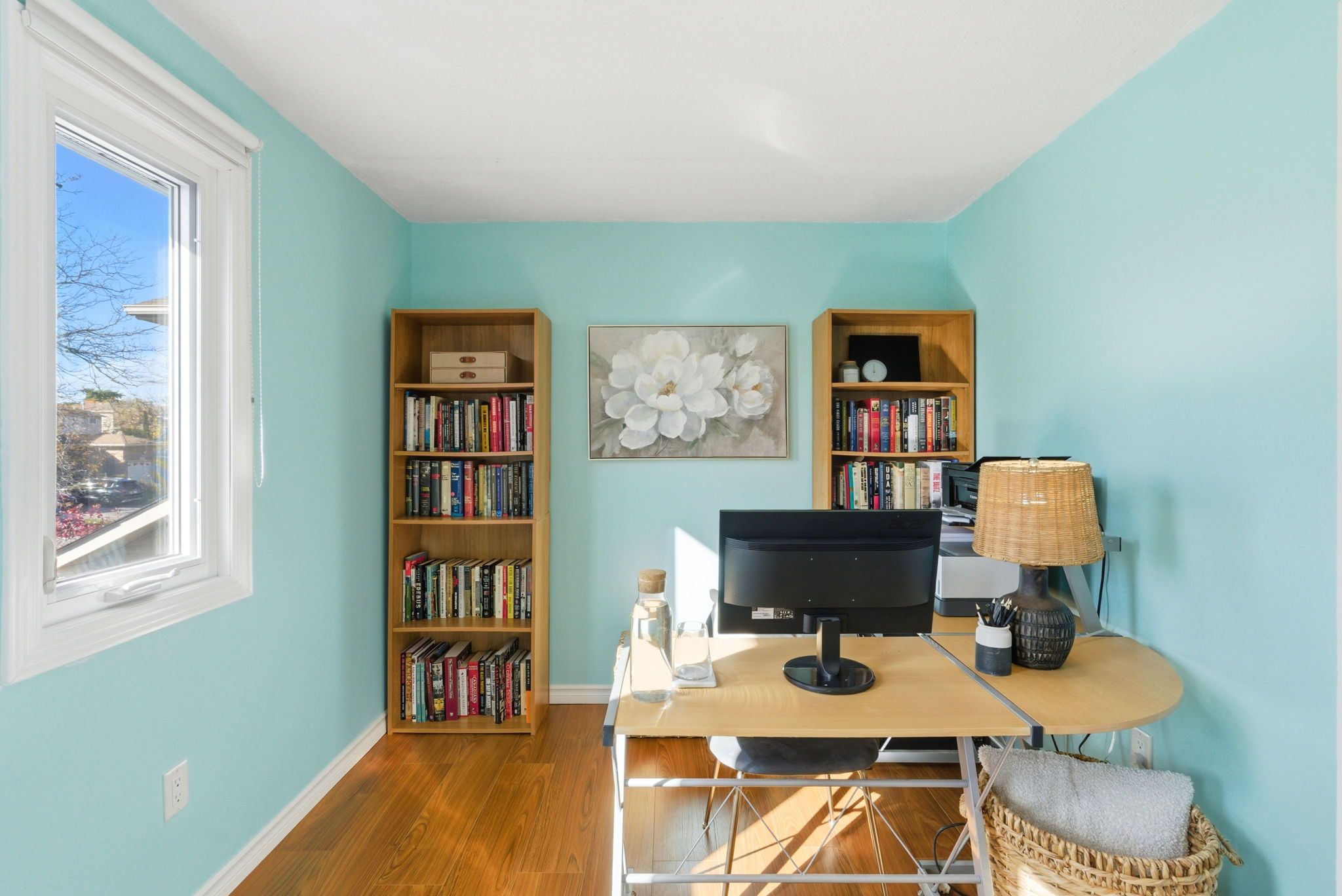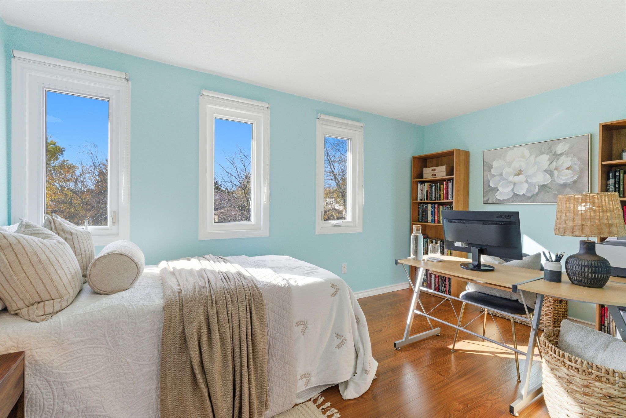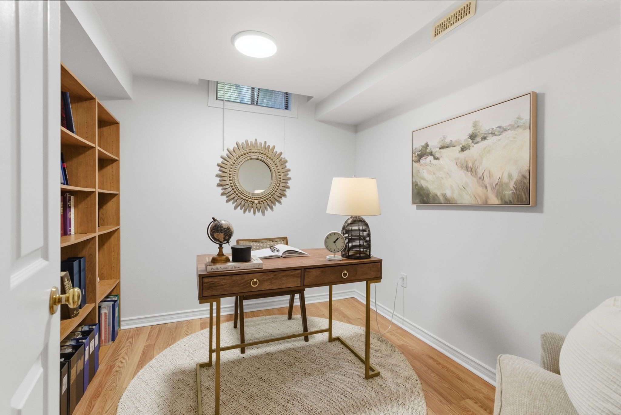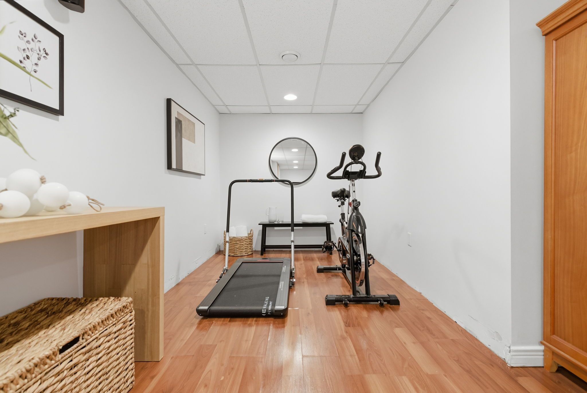 • Finished basement with cozy rec room, home office, and gym nook.