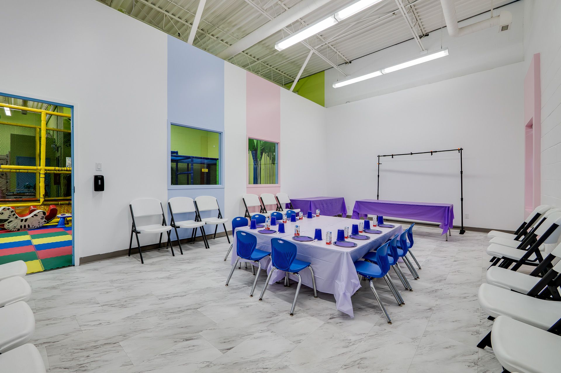 • Offers drop-in play, birthday parties, and camps for families.