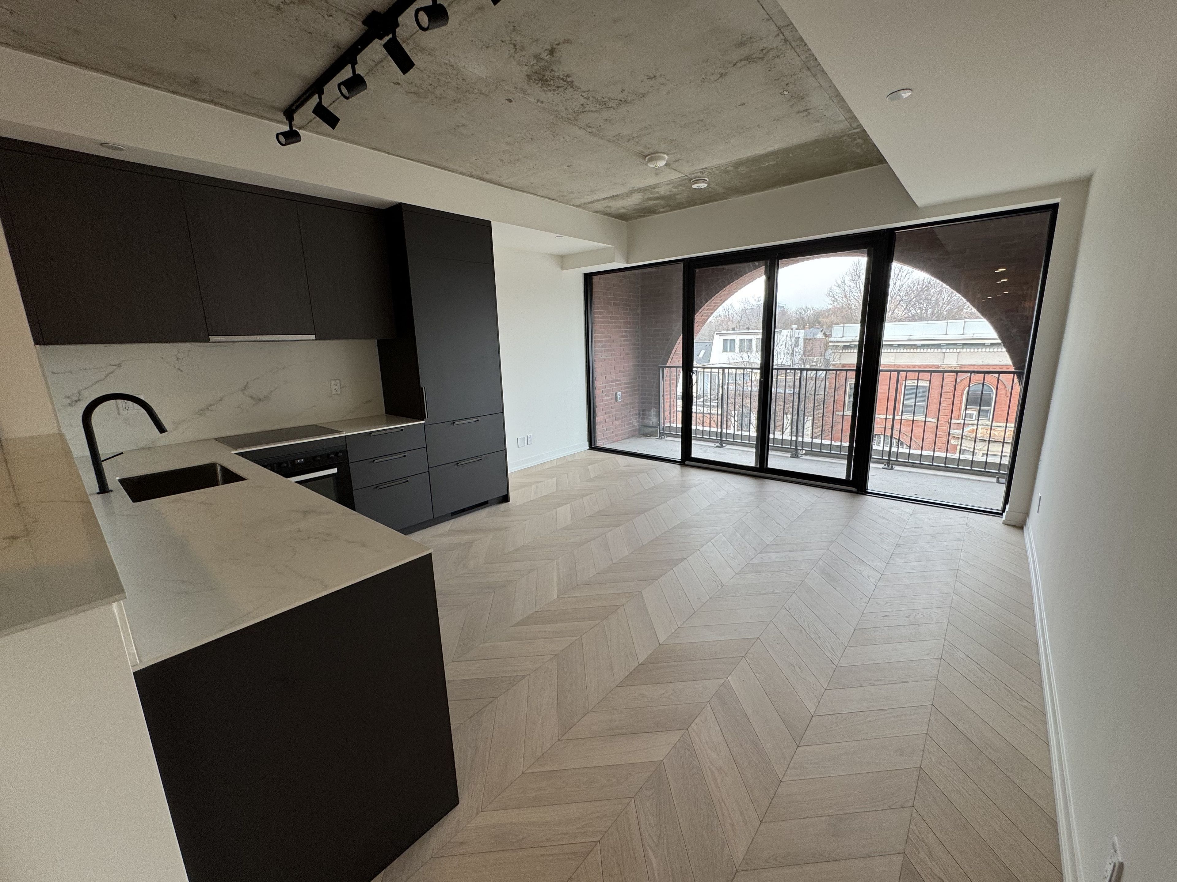 Welcome to biblio lofts at 761 queen st e, a brand-new boutique residence in the heart of riverside. This never-lived-in 2-bedroom, 2-bath loft-style condo blends modern design with striking architectural character. Inside, herringbone floors set a sophisticated tone while floor-to-ceiling windows flood the space with natural light. Step onto the balcony where a stunning brick archway frames views over queen street east, creating a rare blend of heritage inspired detail and contemporary city living. Designed for those who appreciate style and convenience, the suite offers a sleek, modern aesthetic perfect for urban professionals seeking a vibrant neighbourhood lifestyle. Residents of biblio lofts enjoy thoughtfully curated amenities including a fully equipped gym and a rooftop patio, ideal for relaxing or entertaining above the city. Located in the dynamic riverside community, you're steps from some of toronto's best cafés, restaurants, boutiques, and transit along queen street east. A rare opportunity to live in a brand-new loft in one of the city's most sought-after east-end neighbourhoods.