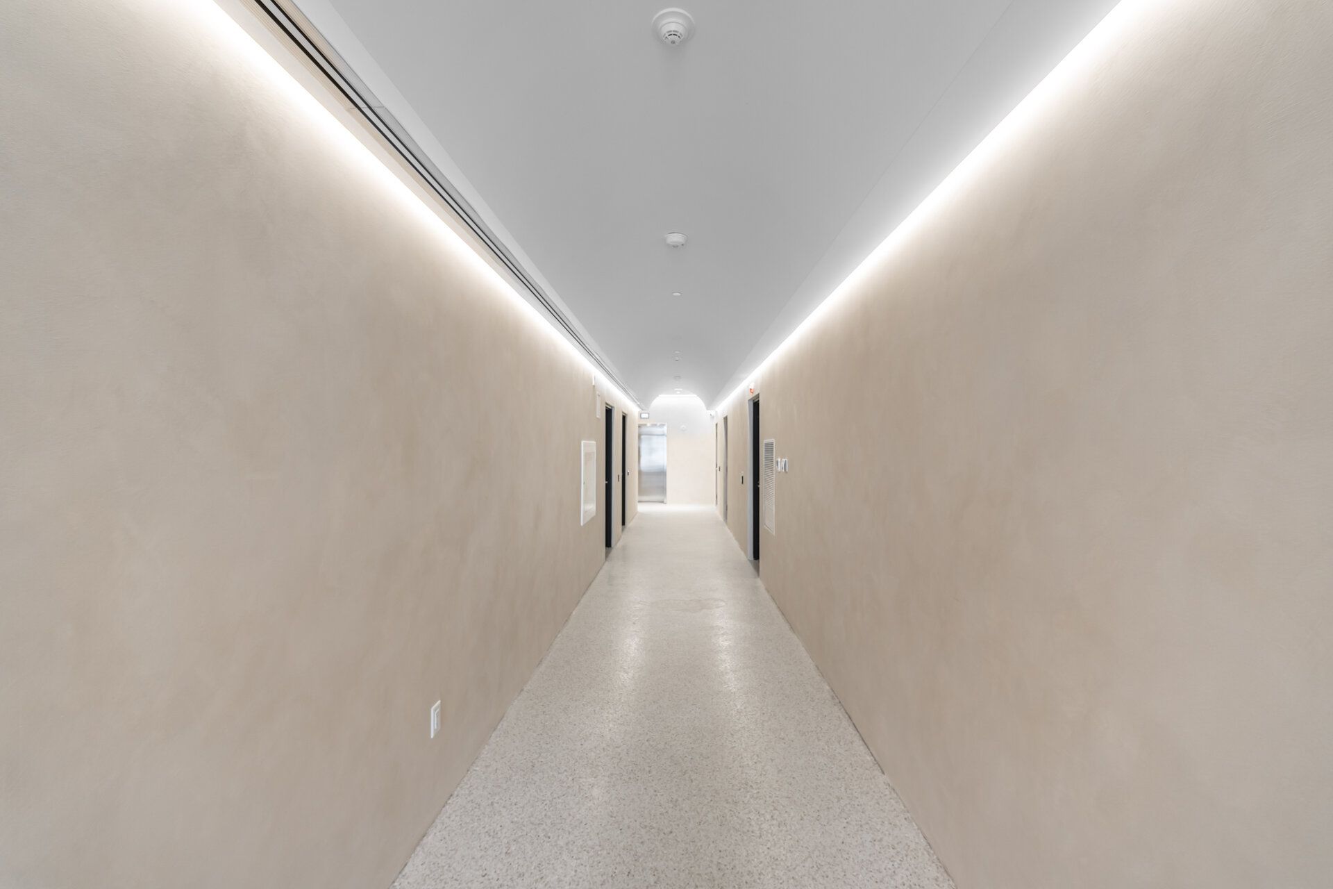 • Elegant chevron hardwood flooring and expansive windows for natural light.