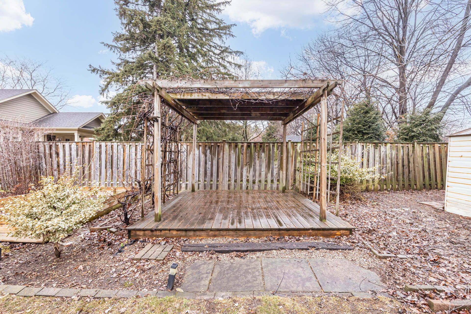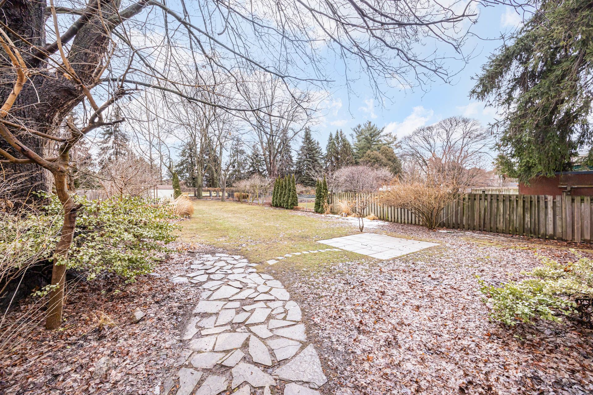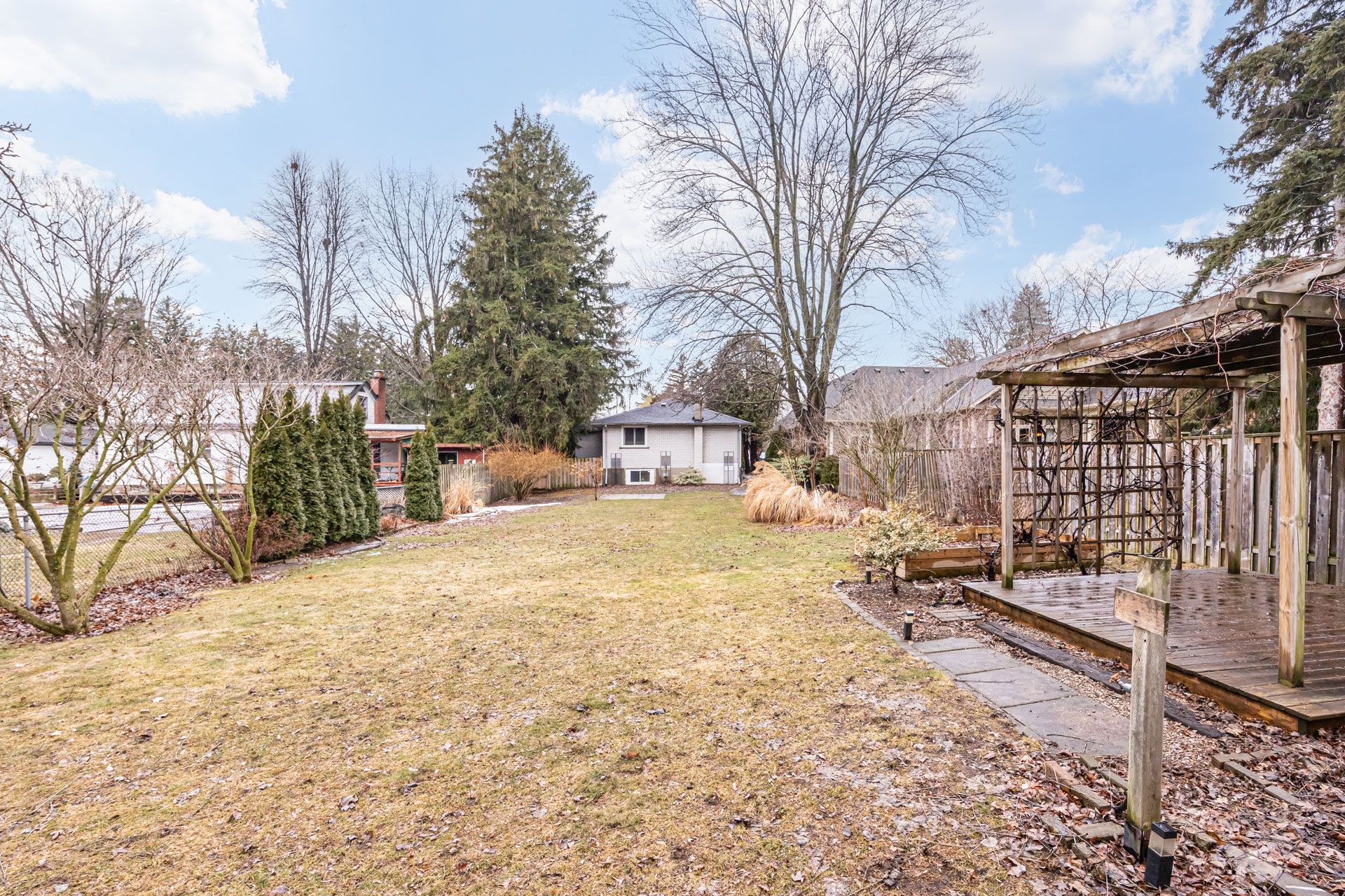 • Backyard retreat with mature trees and beautiful perennial gardens.