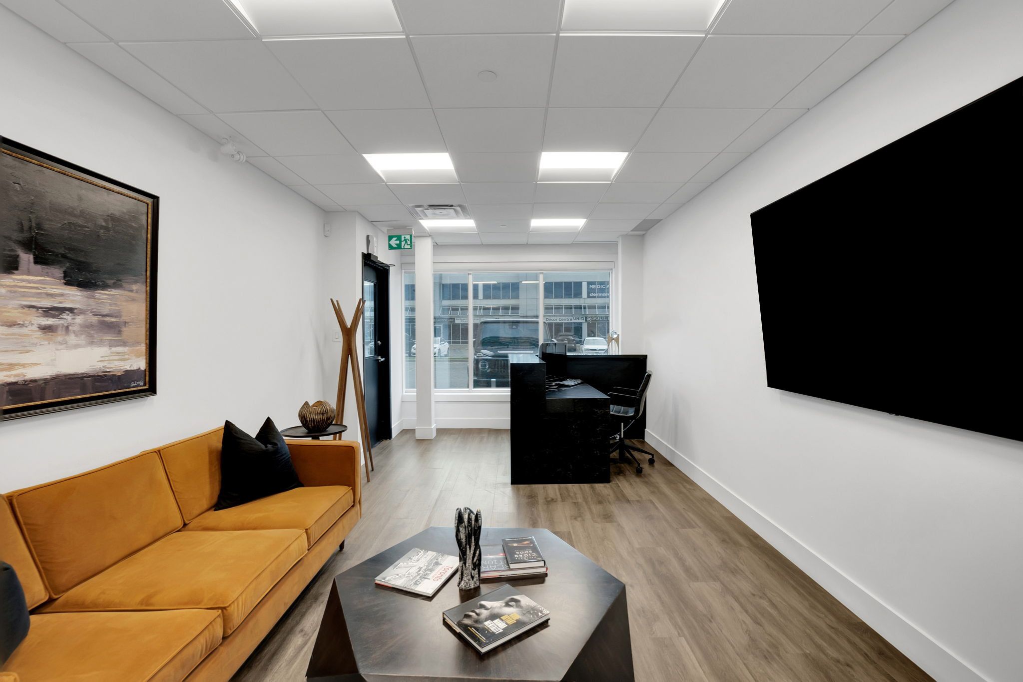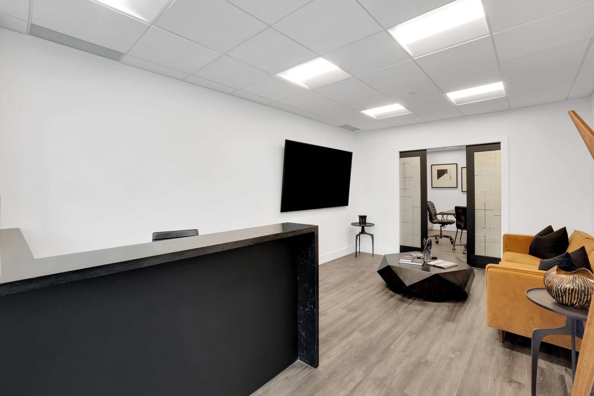 • Main floor includes reception, boardroom, and multiple office spaces.