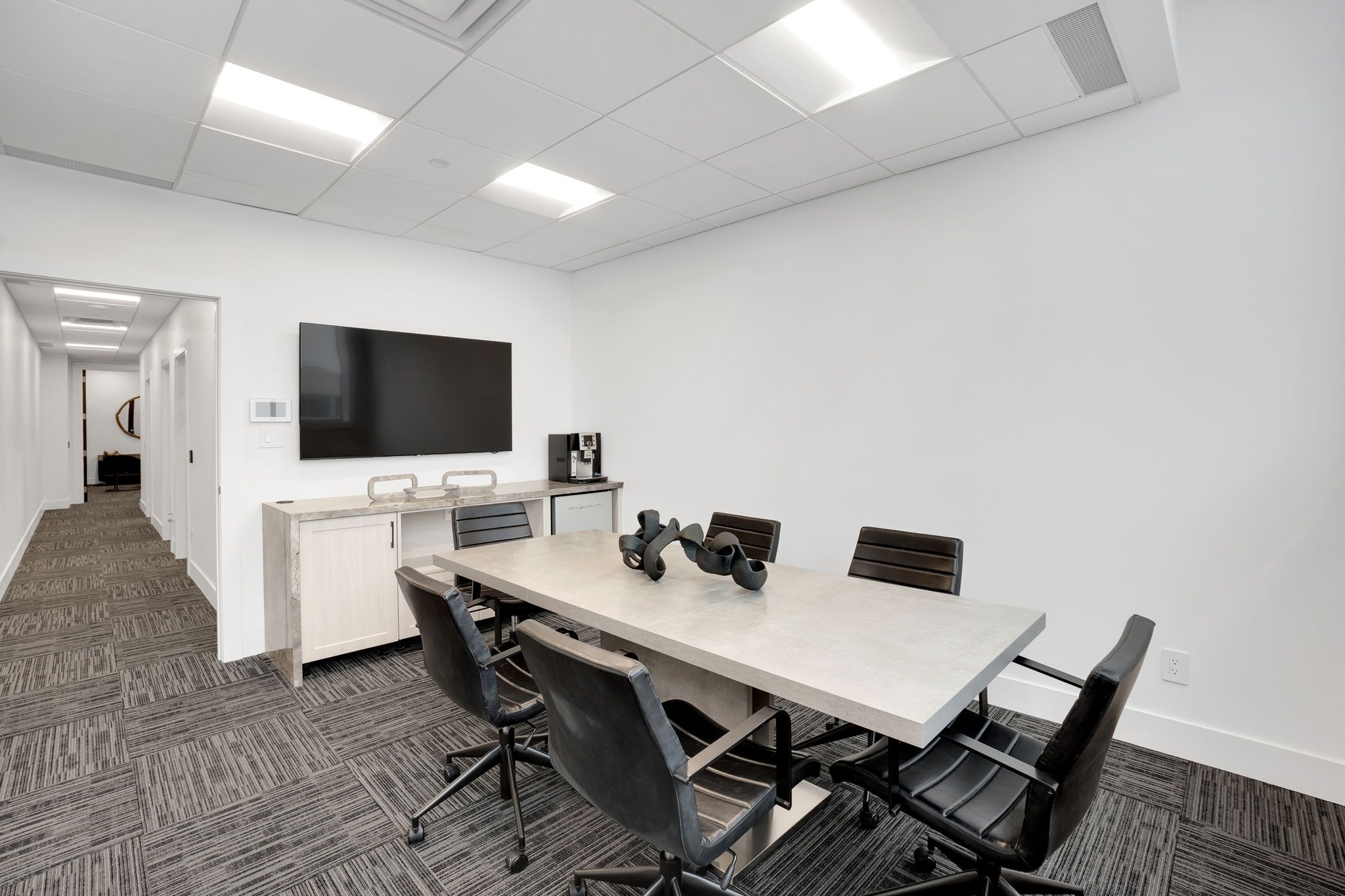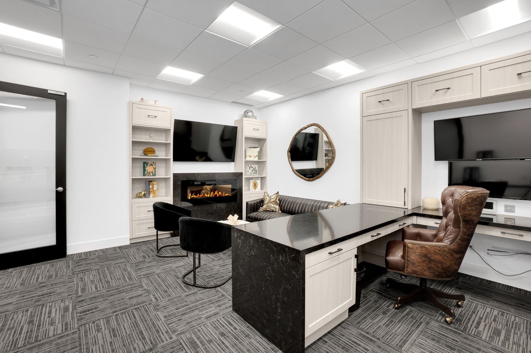 • Includes built-in desks and custom storage cabinets for efficiency.