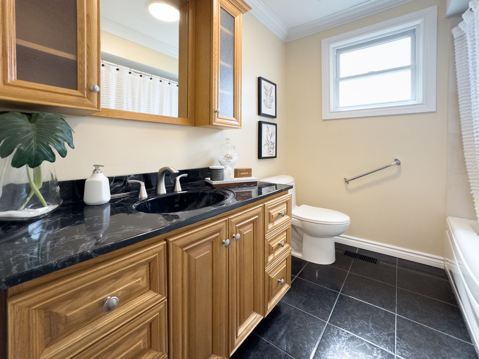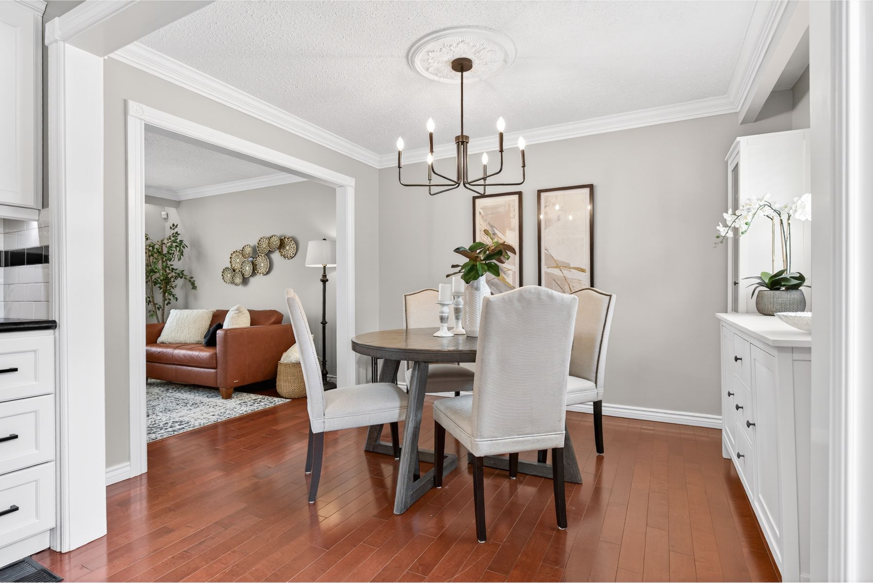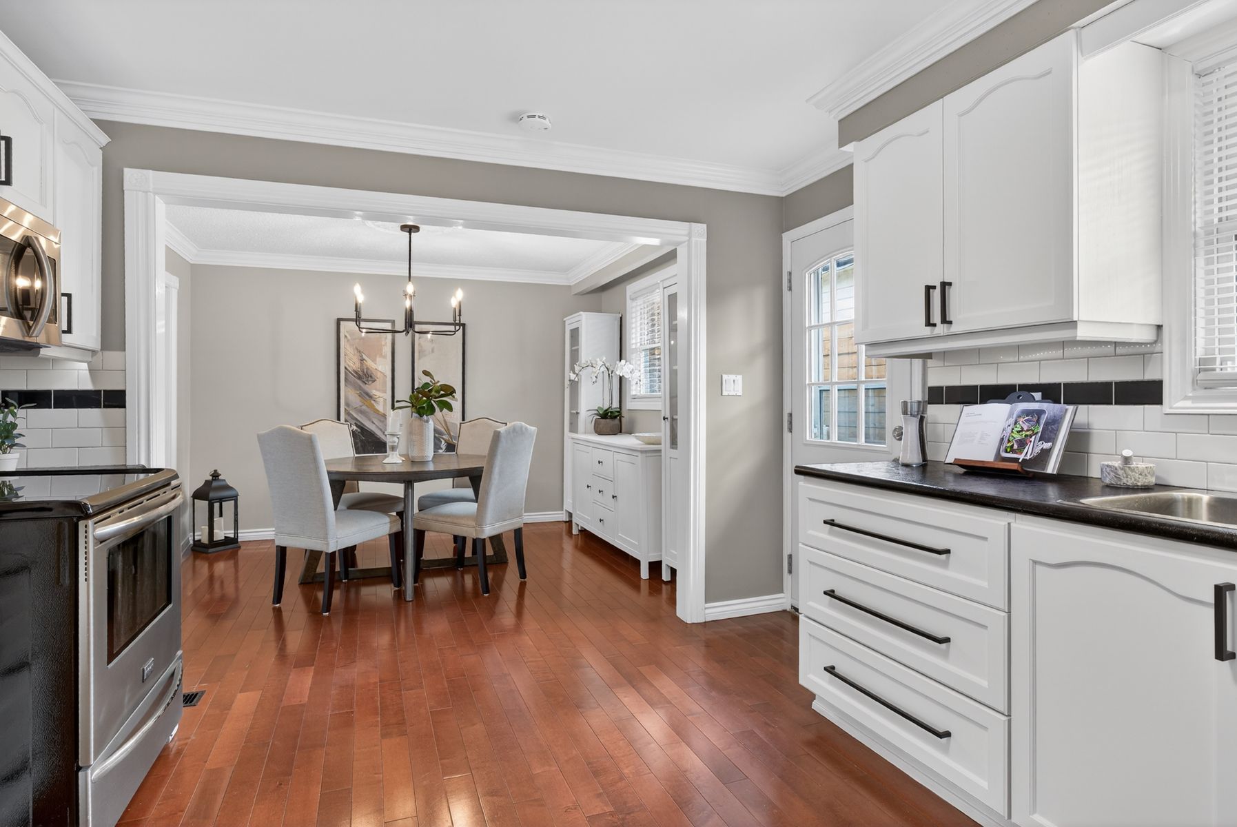 Stylish & desirable side-split in a quiet oshawa neighbourhood. Welcome home to this beautifully maintained 3-bedroom, 2-bathroom side-split on a lovely corner lot in one of oshawa's quiet, family-friendly neighbourhoods. Bright, sunny, and truly move-in ready, this home combines stylish upgrades with a comfortable, functional layout. Step inside to a welcoming living room featuring a large bay window that fills the space with natural light, rich hardwood floors, and elegant crown moulding that adds a touch of sophistication. The adjoining dining area flows seamlessly into the gorgeous updated kitchen, complete with a sleek tile backsplash, stainless steel appliances, ample cabinetry, and plenty of counter space for cooking and entertaining. The split-level design offers excellent separation of space. Upstairs, you'll find three generous bedrooms, including a primary bedroom with his-and-hers closets. The updated main bathroom is designed for relaxation, featuring a soaker bathtub and modern finishes. The cozy lower-level family room is perfect for movie nights or casual gatherings, anchored by a warm gas fireplace and offering a comfortable retreat from the main living area. Additional storage spaces throughout the home ensure everything has its place, helping you stay organized with ease. Outside, the corner lot provides extra presence and curb appeal, with room to enjoy outdoor living in the fully fenced side yard, complete with a pergola to enjoy in rain or shine. Stylish, well cared for, and thoughtfully updated, this move-in ready home is an ideal choice for buyers seeking comfort, charm, and modern features in oshawa.