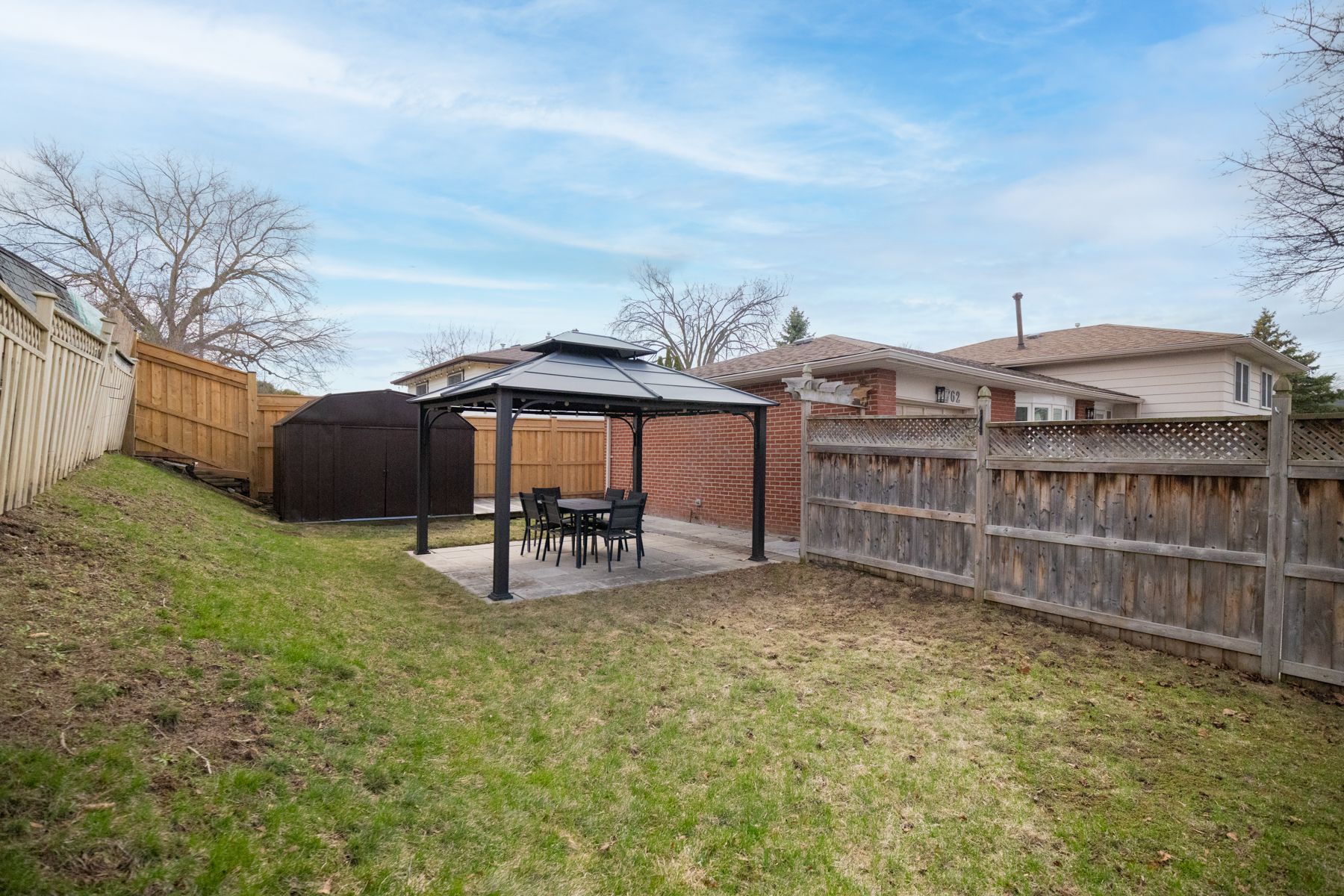 • Fully fenced side yard with a Pergola for outdoor enjoyment.