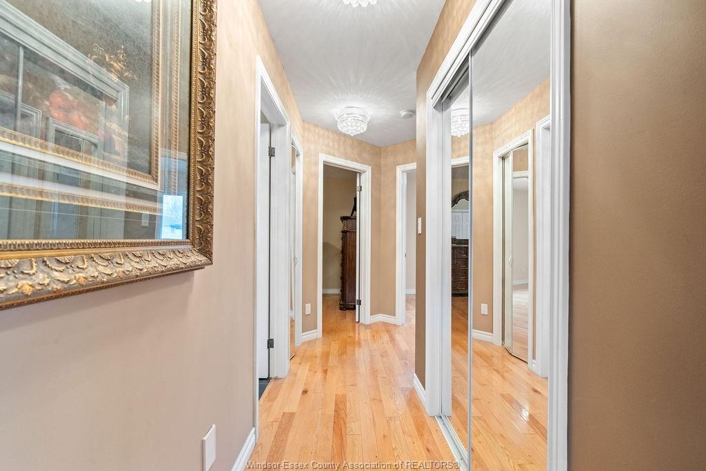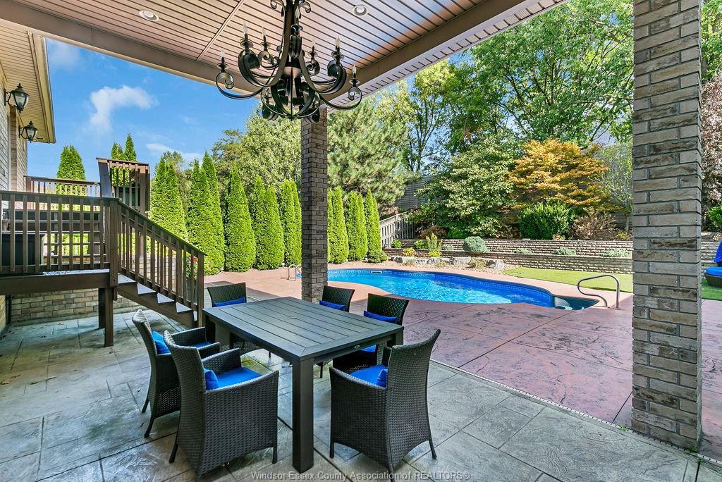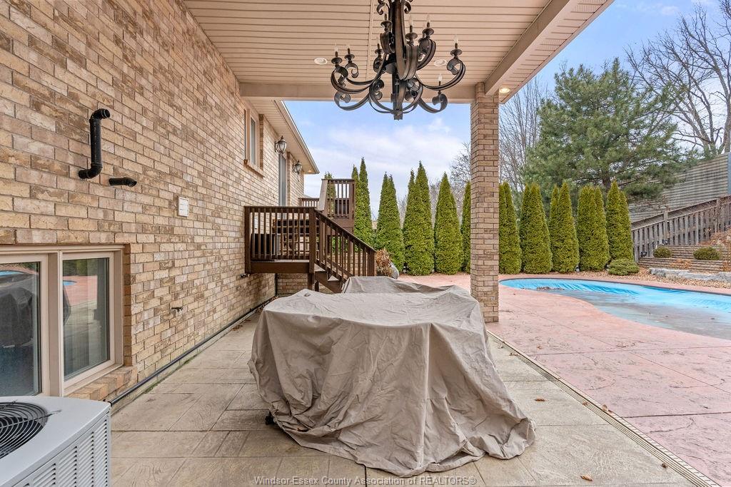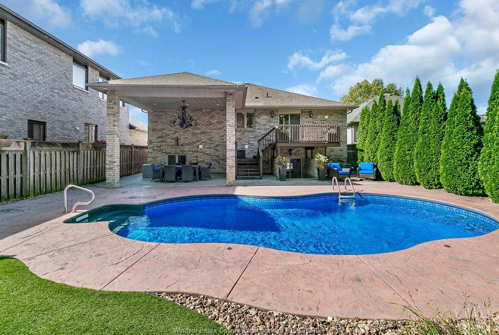 An impressive all-brick residence offering five bedrooms and three-and-a-half bathrooms, designed for refined living both indoors and out. Located in a highly desirable neighbourhood of south windsor, this impressive property showcases an array of premium exterior enhancements, including a heated in-ground pool, stamped concrete driveway and pool deck, rear covered porch, a striking bubble rock waterfall, professionally landscaped grounds with retaining walls, an in-ground sprinkler system, lighting, and a natural gas bbq line—ideal for effortless, year-round entertaining. The interior is equally impressive, featuring hardwood and ceramic flooring throughout, an elegant foyer highlighted by a seven-foot crystal chandelier, and a bright open-concept kitchen, living, and dining area perfect for gatherings. The main level also offers three generously sized bedrooms, including a primary suite complete with a walk-in closet and four-piece ensuite. This home doesn’t stop there, the lower level is complete with an open concept living room, dining room, kitchen with grade entrance, 2 additional bedrooms, laundry, and full bathroom with a jacuzzi tub. Simply move in and begin enjoying everything this remarkable property has to offer.