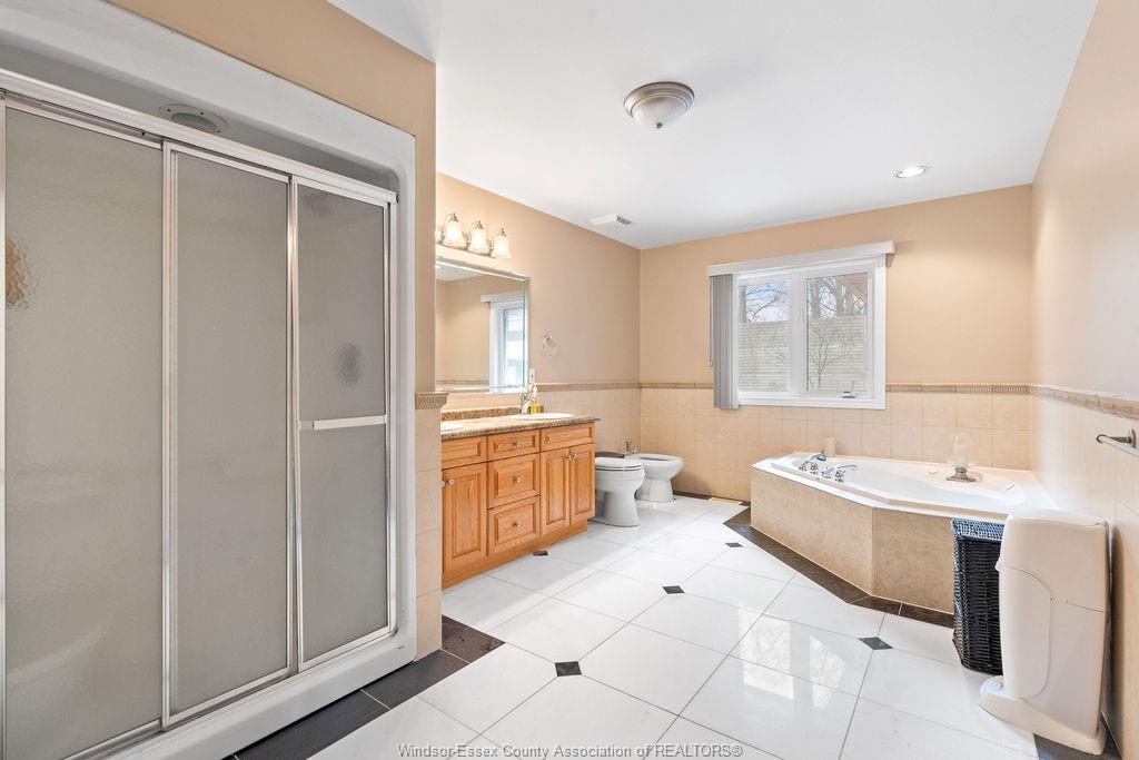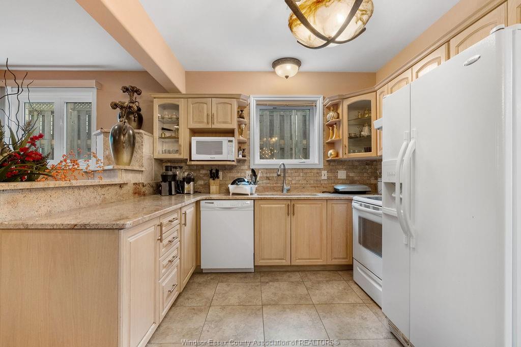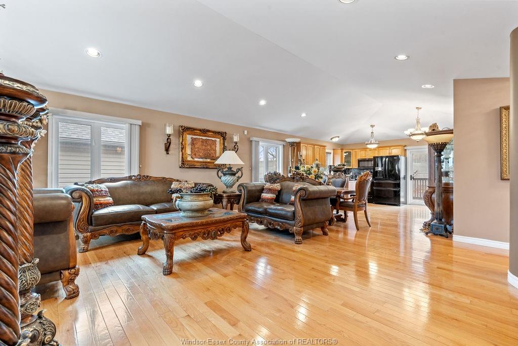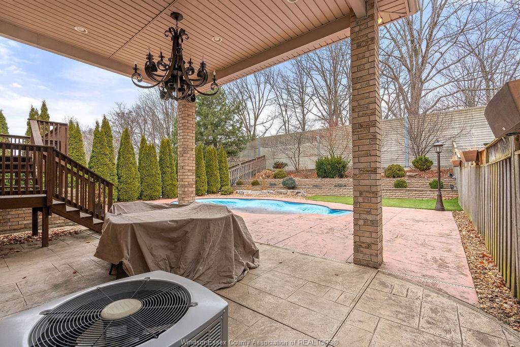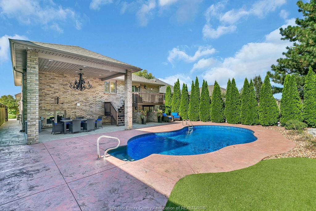 An impressive all-brick residence offering five bedrooms and three-and-a-half bathrooms, designed for refined living both indoors and out. Located in a highly desirable neighbourhood of south windsor, this impressive property showcases an array of premium exterior enhancements, including a heated in-ground pool, stamped concrete driveway and pool deck, rear covered porch, a striking bubble rock waterfall, professionally landscaped grounds with retaining walls, an in-ground sprinkler system, lighting, and a natural gas bbq line—ideal for effortless, year-round entertaining. The interior is equally impressive, featuring hardwood and ceramic flooring throughout, an elegant foyer highlighted by a seven-foot crystal chandelier, and a bright open-concept kitchen, living, and dining area perfect for gatherings. The main level also offers three generously sized bedrooms, including a primary suite complete with a walk-in closet and four-piece ensuite. This home doesn’t stop there, the lower level is complete with an open concept living room, dining room, kitchen with grade entrance, 2 additional bedrooms, laundry, and full bathroom with a jacuzzi tub. Simply move in and begin enjoying everything this remarkable property has to offer.