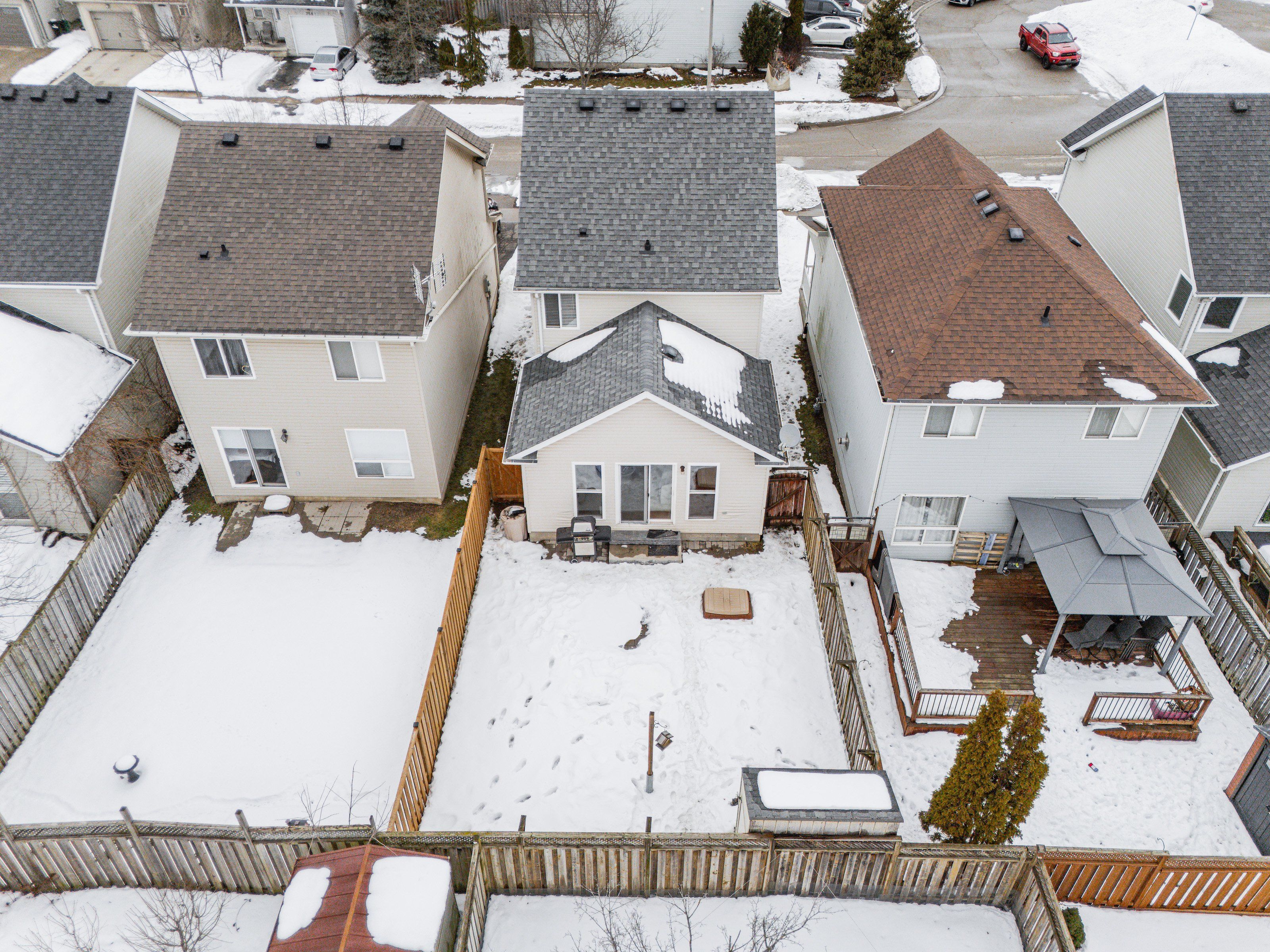 Welcome to 763 angler way in the heart of eastbridge, one of waterloo's most sought-after family neighbourhoods. Perfectly situated on a quiet, tree-lined street, this lovely and completely move-in ready home offers the ideal blend of comfort, space, and convenience-just minutes from shopping, top-rated schools, parks, trails, and everyday amenities. Offering over 1,900 square feet of living space, this spacious and inviting home features 3 bedrooms and 2 bathrooms, thoughtfully designed for modern family living. The main floor showcases a bright, open-concept layout filled with natural light, fresh paint throughout, and updated light fixtures. The eat-in kitchen features granite countertops, ample cabinetry, and generous prep space, along with an integrated dining area that flows seamlessly into the spacious living room. Complete with hardwood flooring and direct access to the backyard patio, this layout is ideal for both everyday living and entertaining. Upstairs, you'll find a large primary bedroom with dual closets, two additional well-sized bedrooms, and a full 4-piece main bathroom with tub/shower combination. Laminate flooring runs throughout the upper level for a cohesive, polished finish. The fully finished basement provides an oversized rec room perfect for a play room, home office, gym, or media room, along with a dedicated laundry area and abundant storage. Outside, the home offers strong curb appeal with a single-car garage and interlocking driveway with parking for three vehicles. The fully fenced backyard features a large patio, creating the perfect setting for summer evenings and outdoor gatherings. Located within walking distance to millen woods public school, st. Luke catholic elementary school, and neighbourhood parks. Minutes from conestoga mall, rim park, the waterloo public library, grey silo golf course, popular restaurants, scenic trails (walter bean trail), and quick highway access, this location truly defines eastbridge living at its best!