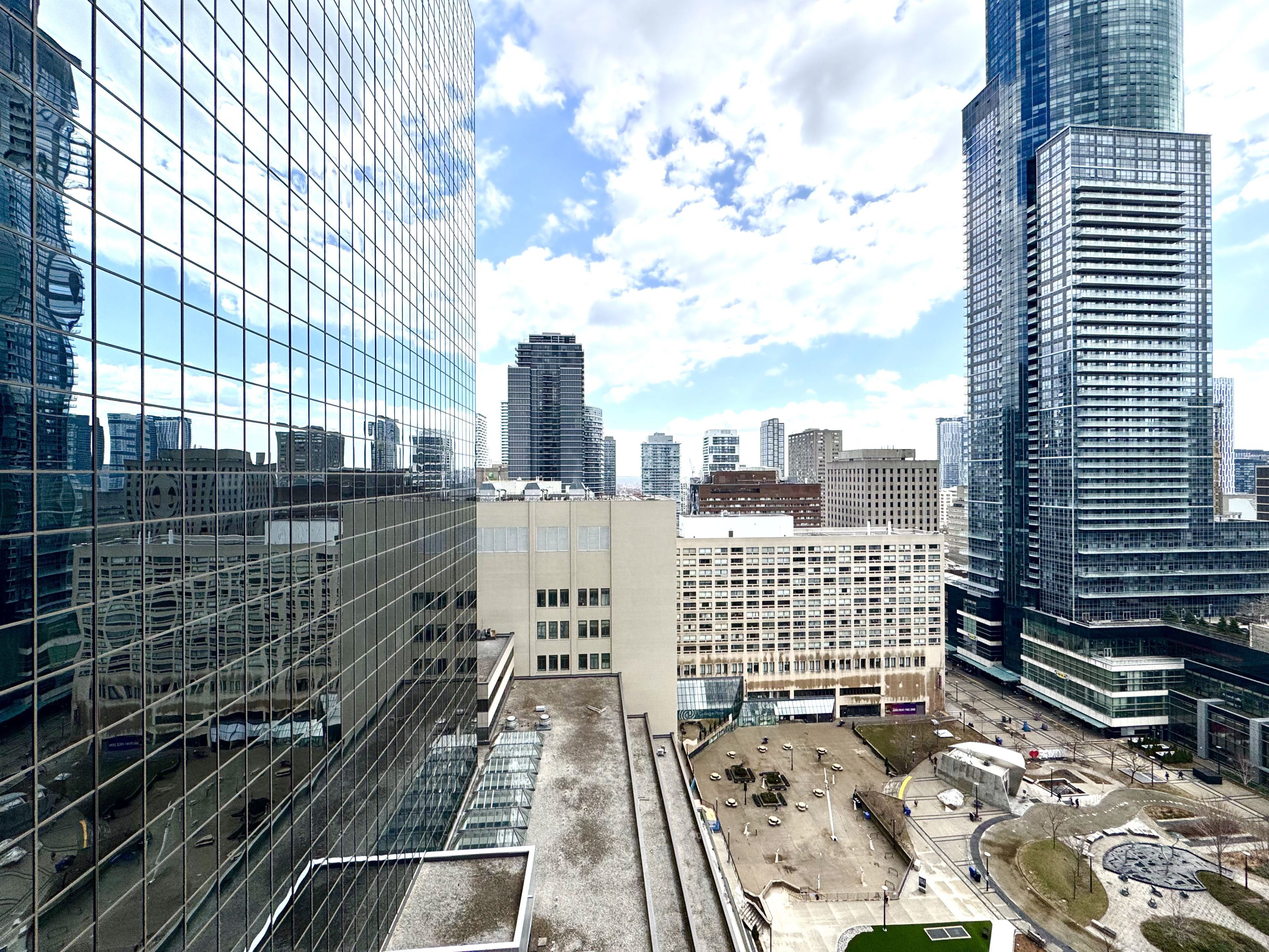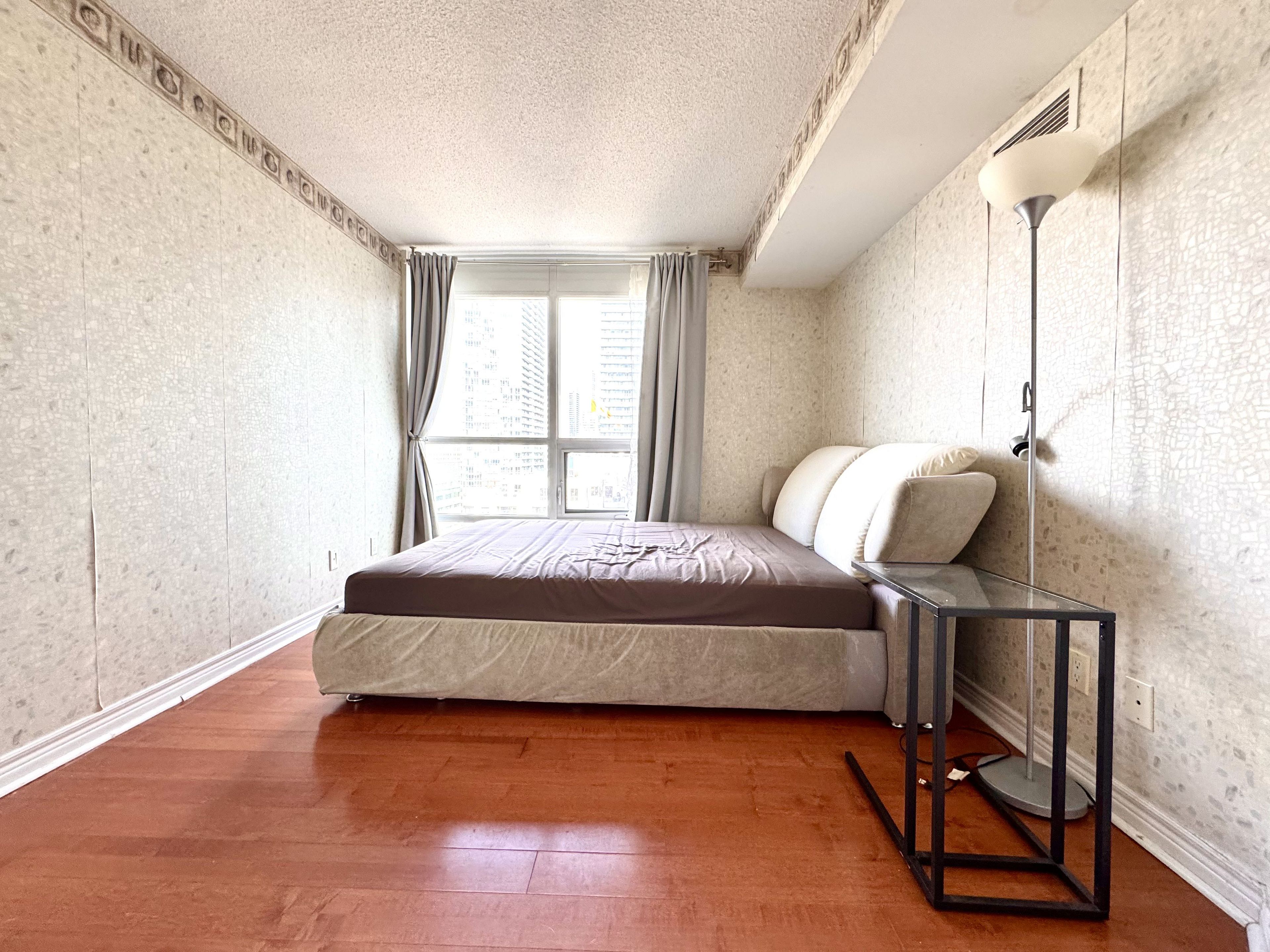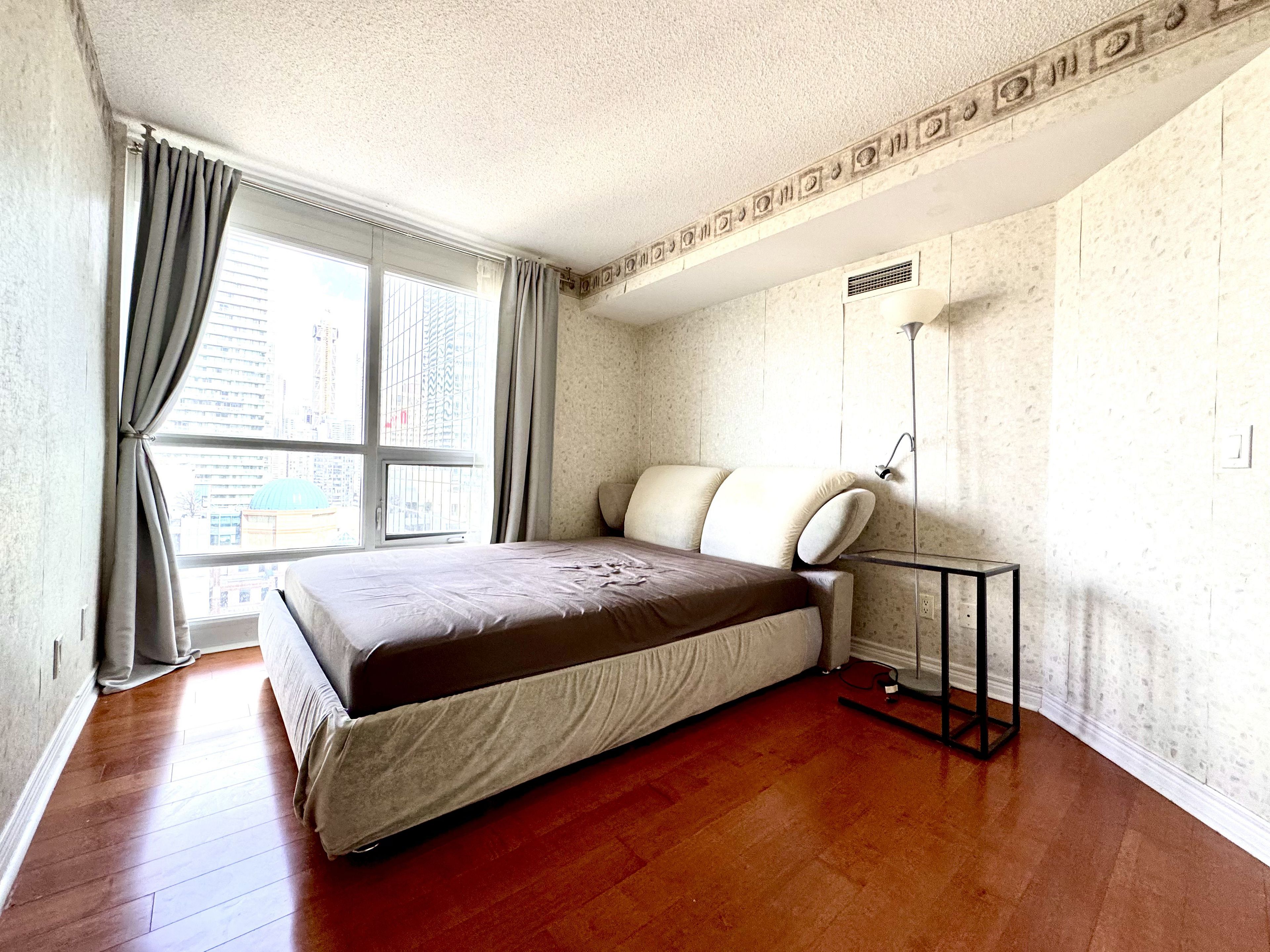 Luxury, sunny & bright 1+den suite at prestigious residences at college park! This high-floor unit features stunning lake & city views, abundant natural light, and a functional layout. Upgraded with quality hardwood flooring, granite countertops, modern kitchen cabinetry, stylish wallpaper finishes, and convenient ensuite laundry. Furniture are included. Located in the heart of the bay street corridor, enjoy direct underground access to college subway station and college park shops. Steps to u of t, tmu (ryerson), major hospitals, financial district, eaton centre, 24-hour grocery, restaurants, and everyday essentials. Residents enjoy premium amenities including 24-hour concierge & security, indoor pool, sauna, steam room, fully equipped gym, virtual golf, theatre, party room, and outdoor patio. Professionals and students are welcome.