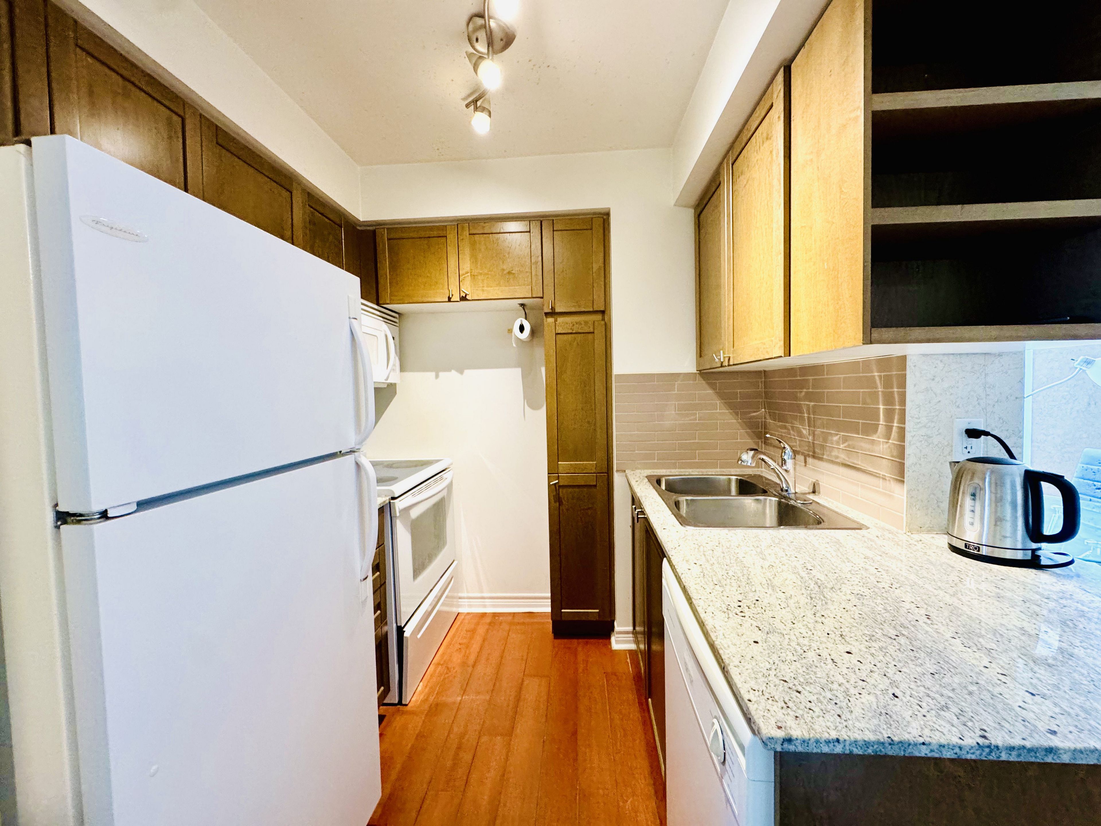 • Modern upgrades like hardwood floors and granite countertops.