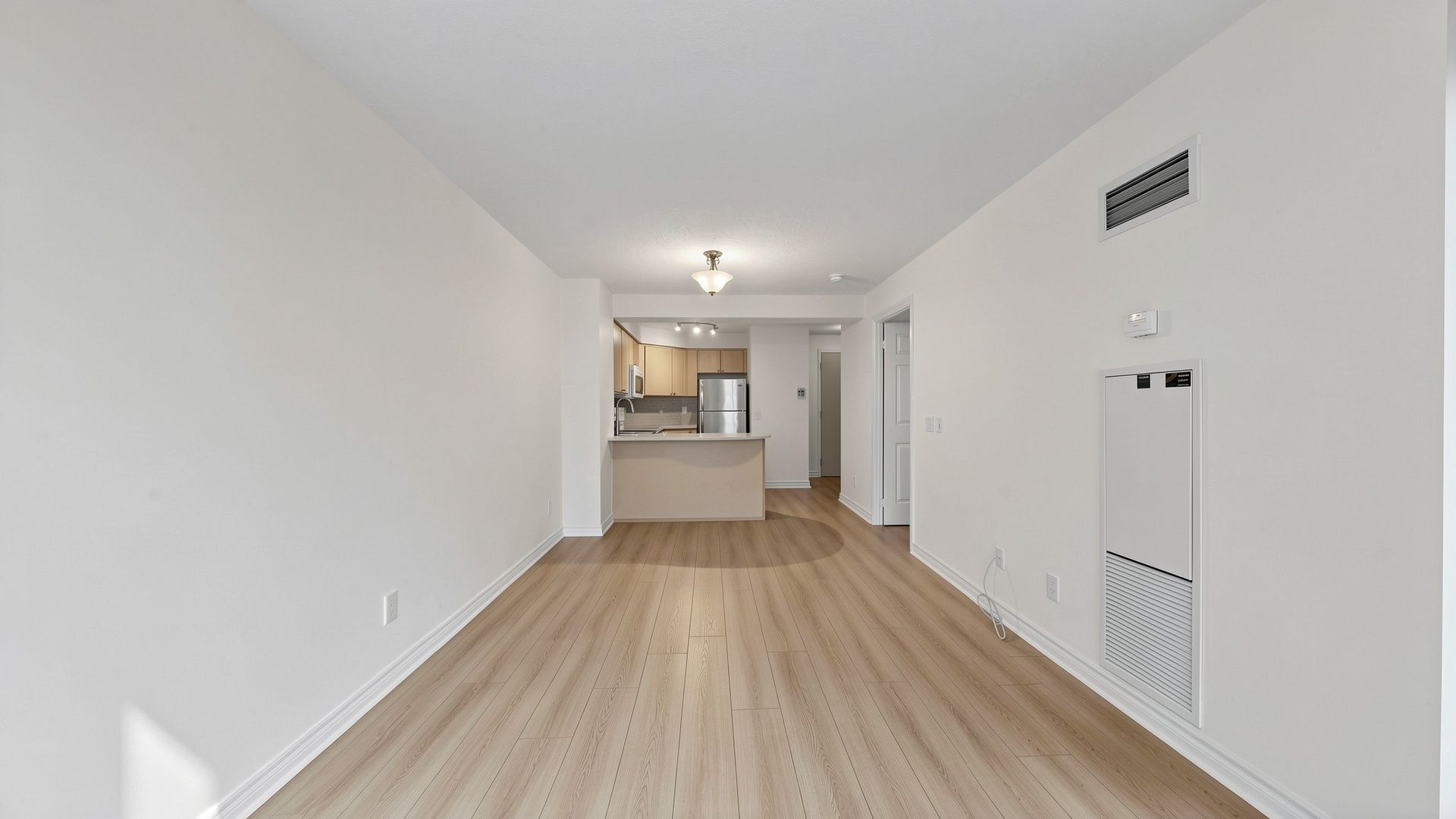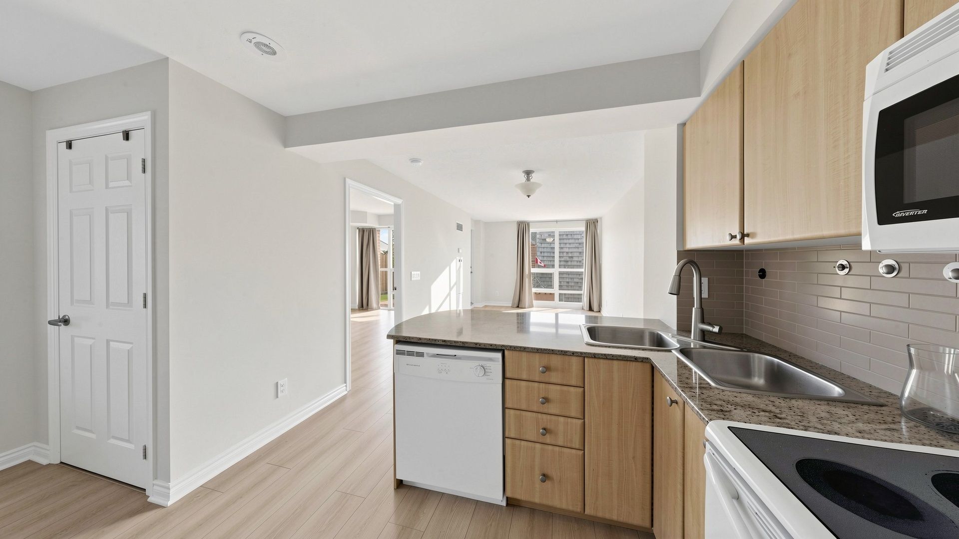• Open-concept living and dining area with access to a private balcony.
