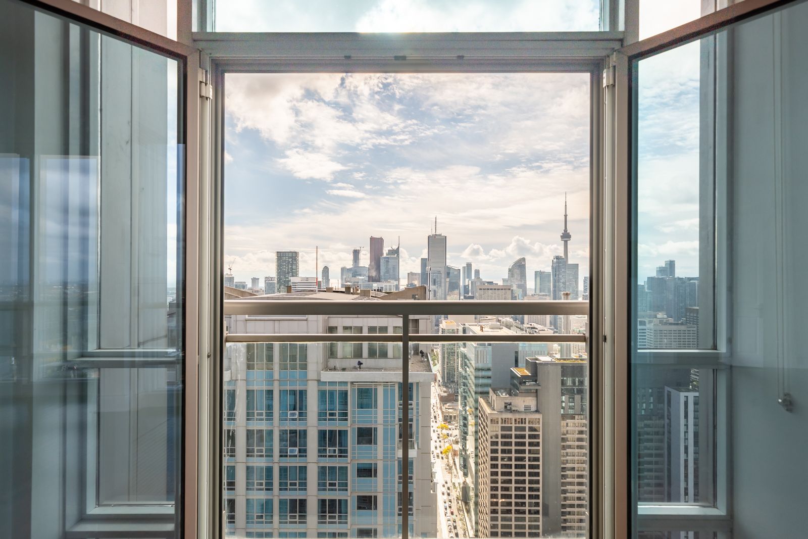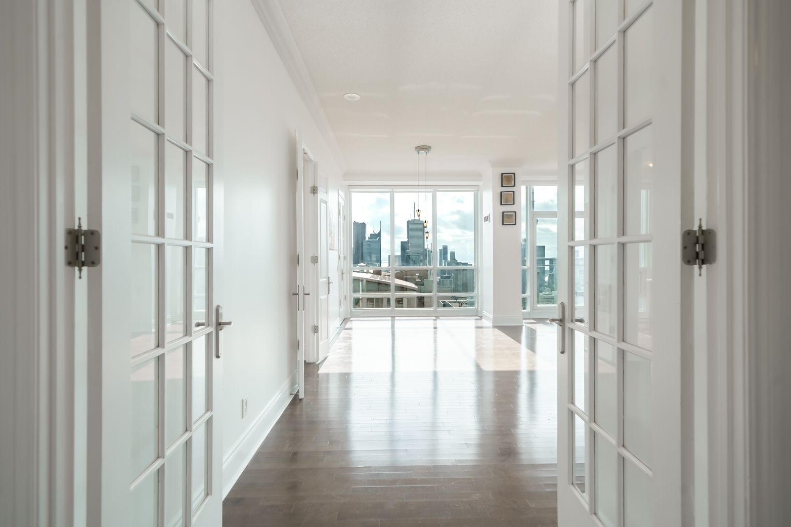 Absolutely stunning 2 bedroom plus den, penthouse, corner unit at 763 bay st. A rare gem ready to be called home. Occupying nearly 1,900 sq. Ft. Of luxurious space high above the city, this sky-high home offers breathtaking, unobstructed south-west views from the 52nd floor. Floor to ceiling windows wrap around the open concept living and dining area, creating a dramatic, light filled space with panoramic views of downtown toronto, the lake, and beyond. Whether it's golden sunsets over the city skyline, the sparkling lights at night, or watching the seasons change from above, the views from this penthouse are truly cinematic - and exclusive to few. Step inside through a grand foyer that immediately sets a tone of elegance. The spacious kitchen features granite countertops, stainless steel appliances, built-in storage, and a cozy breakfast nook that lets you start your mornings with sunshine and skyline. The primary suite is a private retreat with double door entry, a large walk-in closet, and a spa-inspired ensuite bath. The second bedroom also enjoys striking views and generous space. The enclosed den with french doors is ideal as a home office, guest room, or flexible additional space. Convenience is unmatched: enjoy two exclusive private garages in p1 with space for two vehicles - an exceptional downtown luxury. Located at bay & college, you're steps from cafés, restaurants, u of t, hospitals, shops, ttc, and more. Residents have access to the parkview club featuring a recreation centre, indoor pool, gym, party room, games room, and more. This is more than just a condo - it's a rare, elevated lifestyle with some of the most stunning views toronto has to offer.