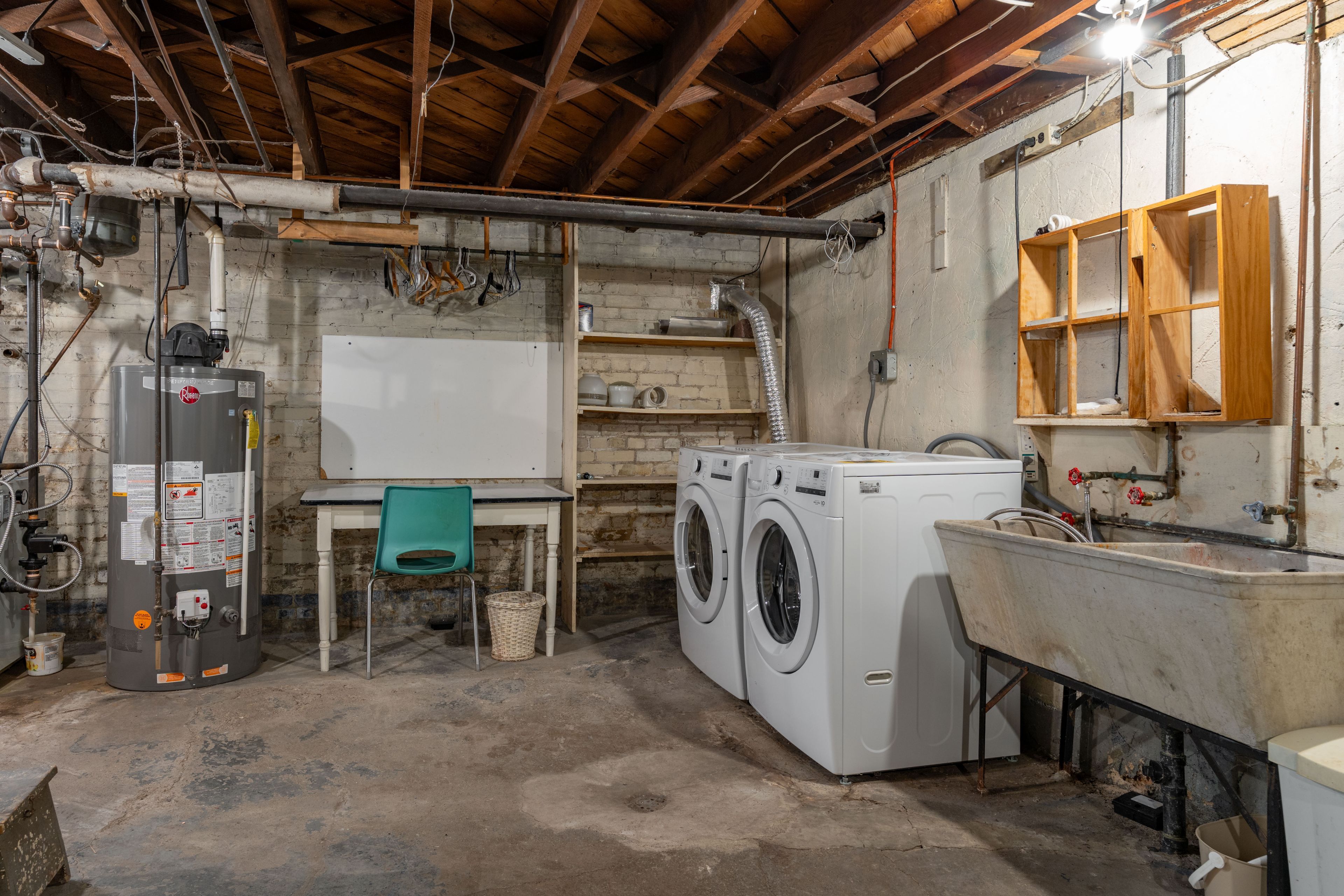 • Private laundry area includes new washer and dryer, plus extra storage space.