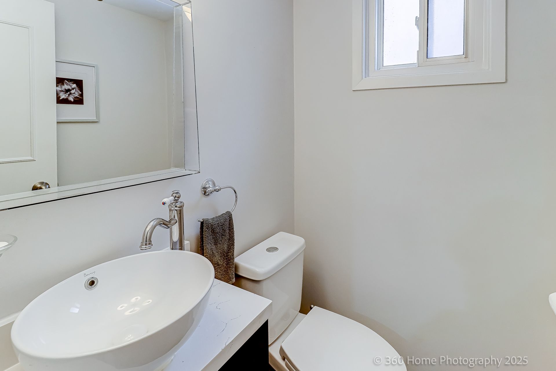 Beautiful home on a lovely street is a great find. Minutes from schools, parks, restaurants. Walking distance to beachfront. Great commuter location with easy access to highway 401 and go station. Bright, open concept main floor with modern finishes. Gourmet kitchen with quartz countertops and stainless-steel appliances. Upper level skylight. Three spacious bedrooms. Primary bedroom retreat with space for sitting area and 2-piece ensuite. Finished basement provides extra space for work or play. Make use of space for recreation or potential in-law suite with 3 pc bath and plumbing for basement kitchen. Features wood-burning fireplace. Rear deck ideal for entertaining. Fully fenced yard. Garage workspace and storage. Freshly painted (2025). Many upgrades include tankless water heater (2023), roof (2022), windows (2016), central vacuum (2025), heppa air filter, expanded driveway, raised flower beds.