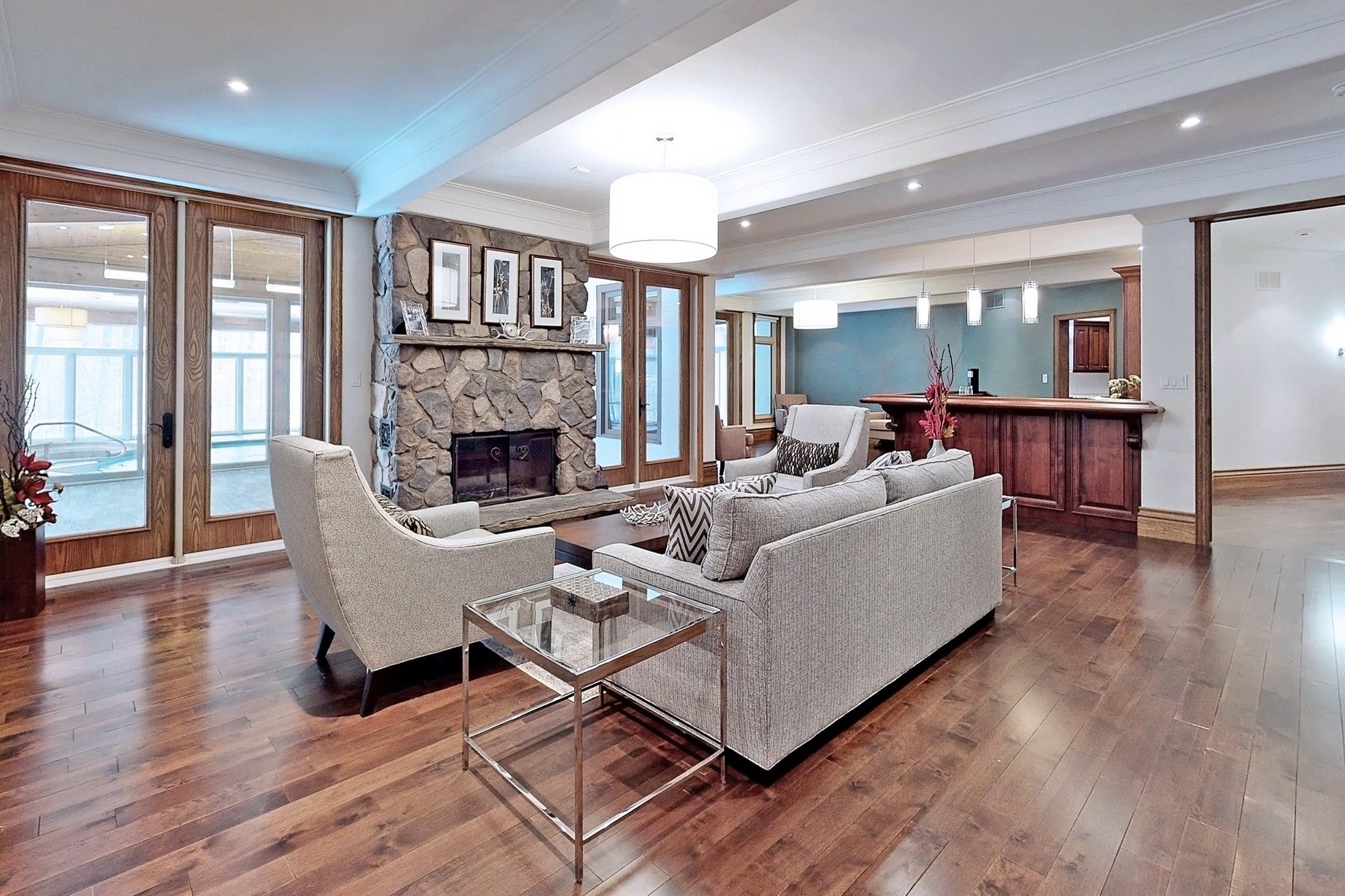 • Resort-style indoor heated pool, spa, and multiple patios for outdoor living.
