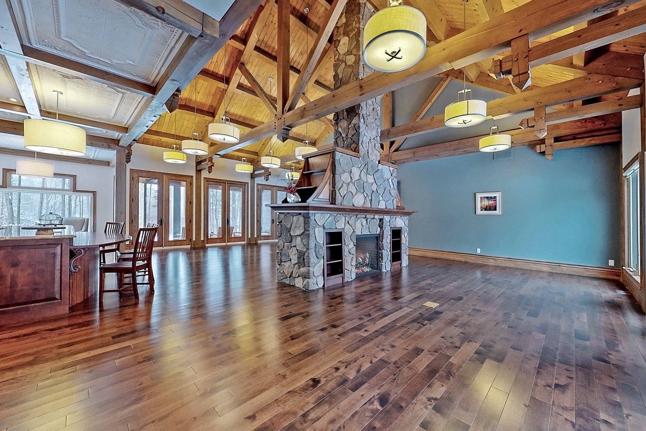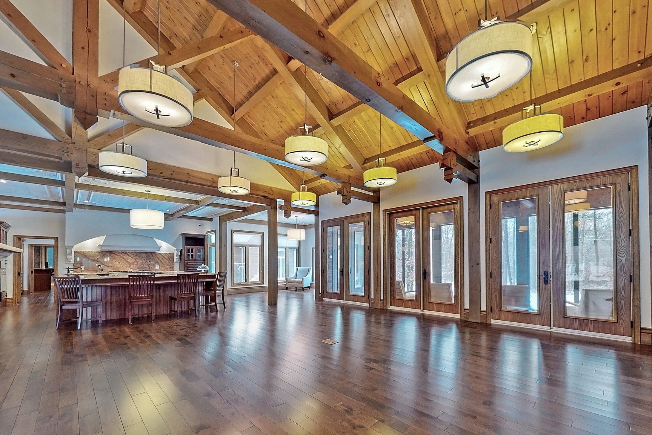 Welcome to 7651 milburough line, an exceptional private estate set on 42 acres of picturesque countryside in milton, complete with a spring-fed pond and 30 acres of mature sugar maple forest. A long, tree-lined private drive leads to this remarkable custom-built residence offering approximately 19,470 sq ft of total living space (15,696 sq ft finished). Designed for grand living and entertaining, the home features 11 bedrooms and 11 bathrooms, ideal for multi-generational families or luxury retreats. Inside, timeless elegance is expressed through soaring 22-ft vaulted ceilings, coffered details, handcrafted plaster mouldings, and rich solid wood finishes throughout. Two gourmet kitchens, outfitted with professional-grade appliances, provide exceptional versatility for hosting on any scale. The main floor primary suite is a true sanctuary, highlighted by a spa-inspired ensuite with chromatherapy tub, heated backrests, warming drawer, and heated towel rack. Multiple principal rooms are anchored by five gas fireplaces and a striking wood-burning fireplace, offering warmth and sophistication. Resort-style amenities elevate the experience, including a stunning indoor heated pool with hot tub and children's wading area, along with a dedicated wellness wing featuring a home gym and spa with dual saunas. The finished lower level with walkouts adds flexible space for recreation or extended family living. Outdoors, enjoy multiple patios, screened porches, and a muskoka-style room with a double-sided fireplace, all surrounded by serene natural beauty. Built with exceptional quality, the home includes geothermal heating, in-floor radiant systems, 400-amp service, metal roofing, and advanced water purification. Renovated in 2015, this rare offering blends luxury, privacy, and convenience just minutes from major routes.