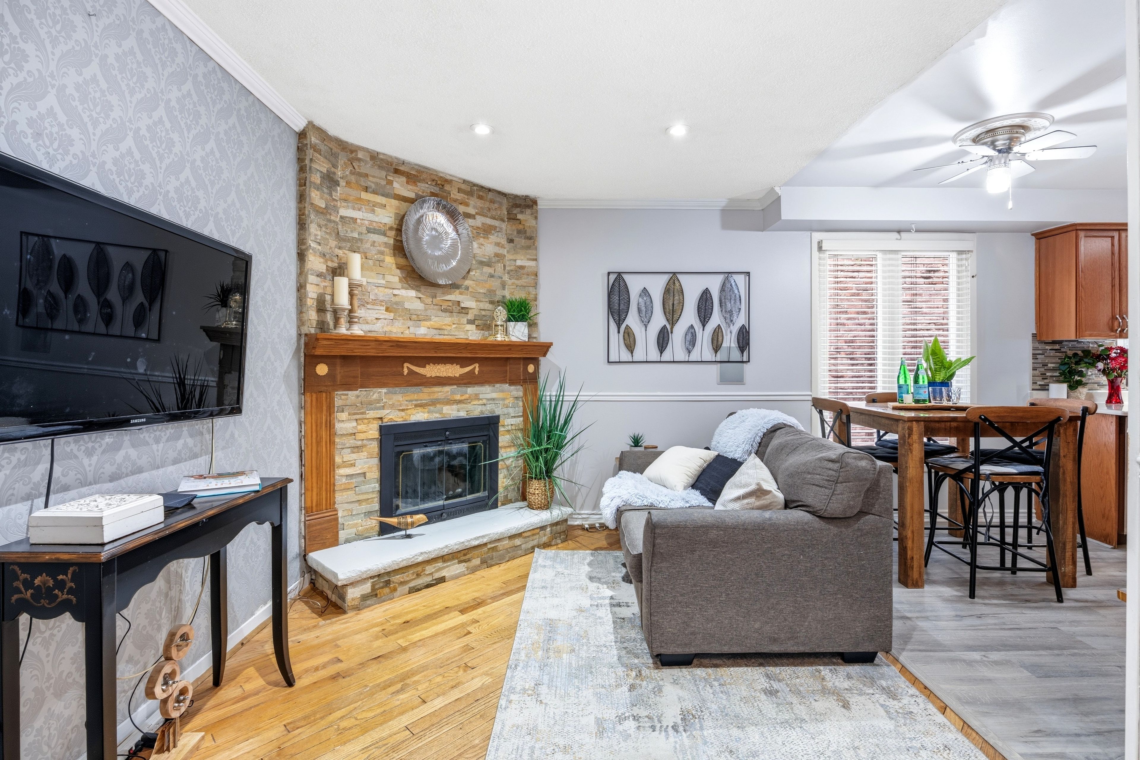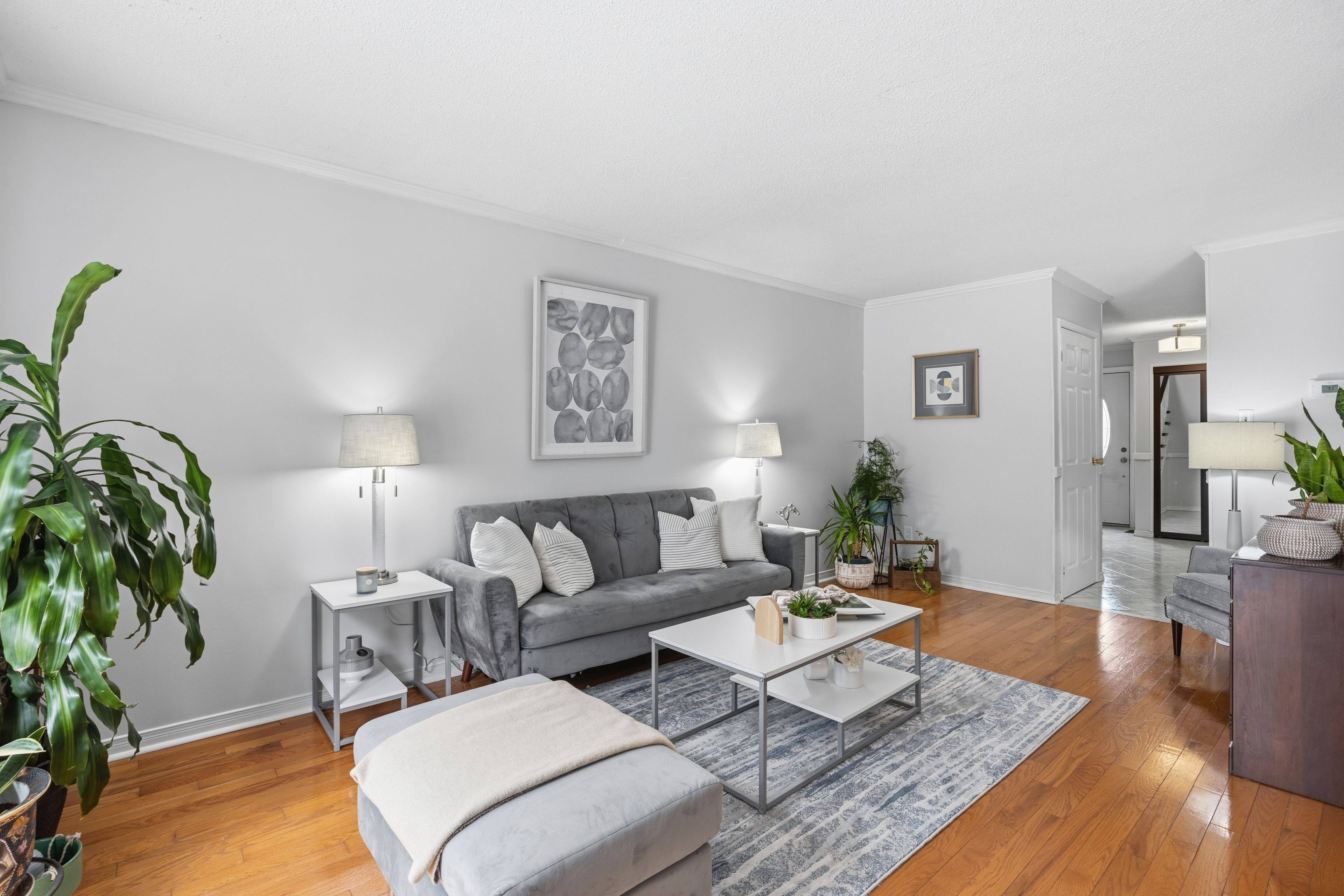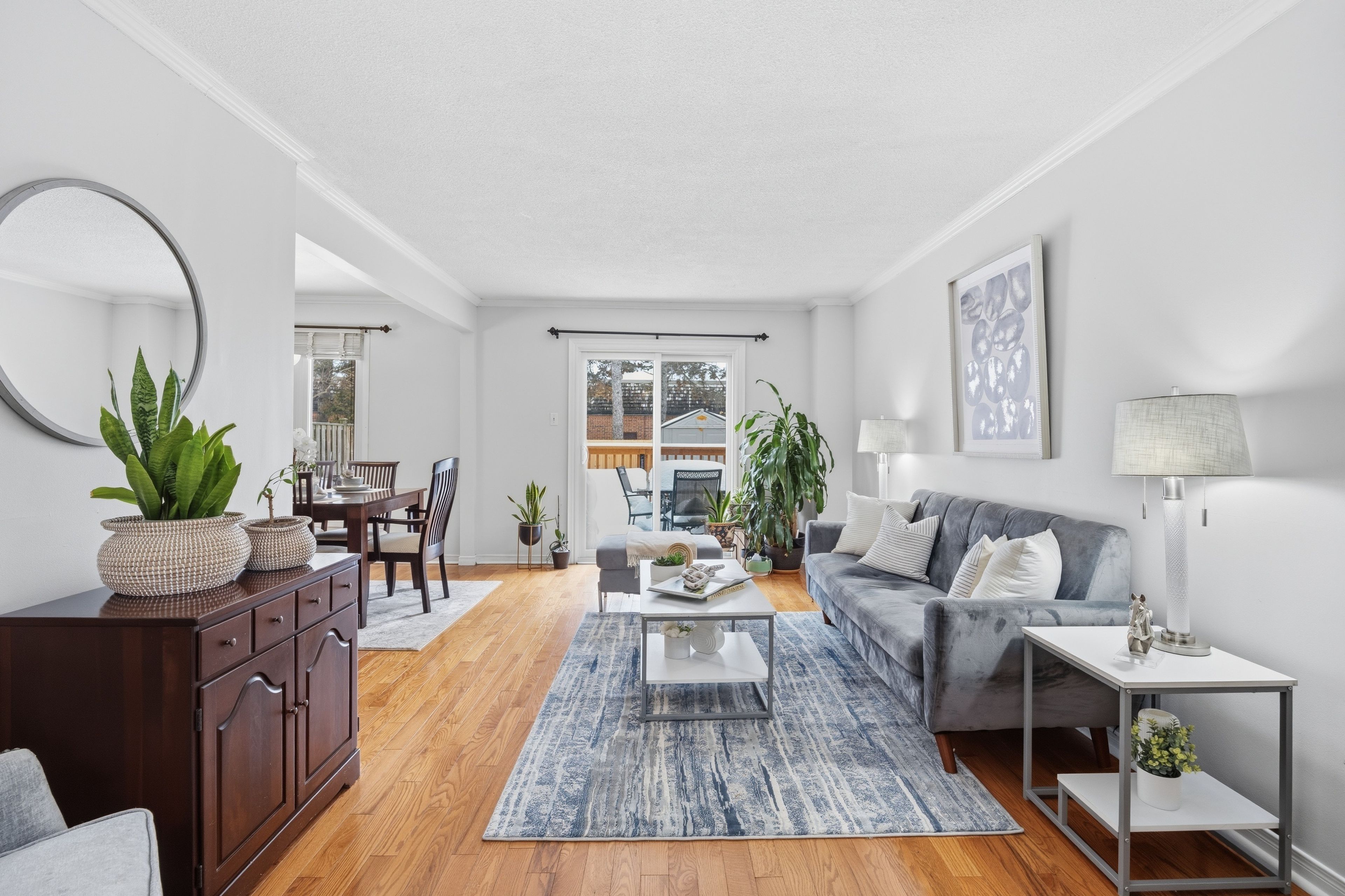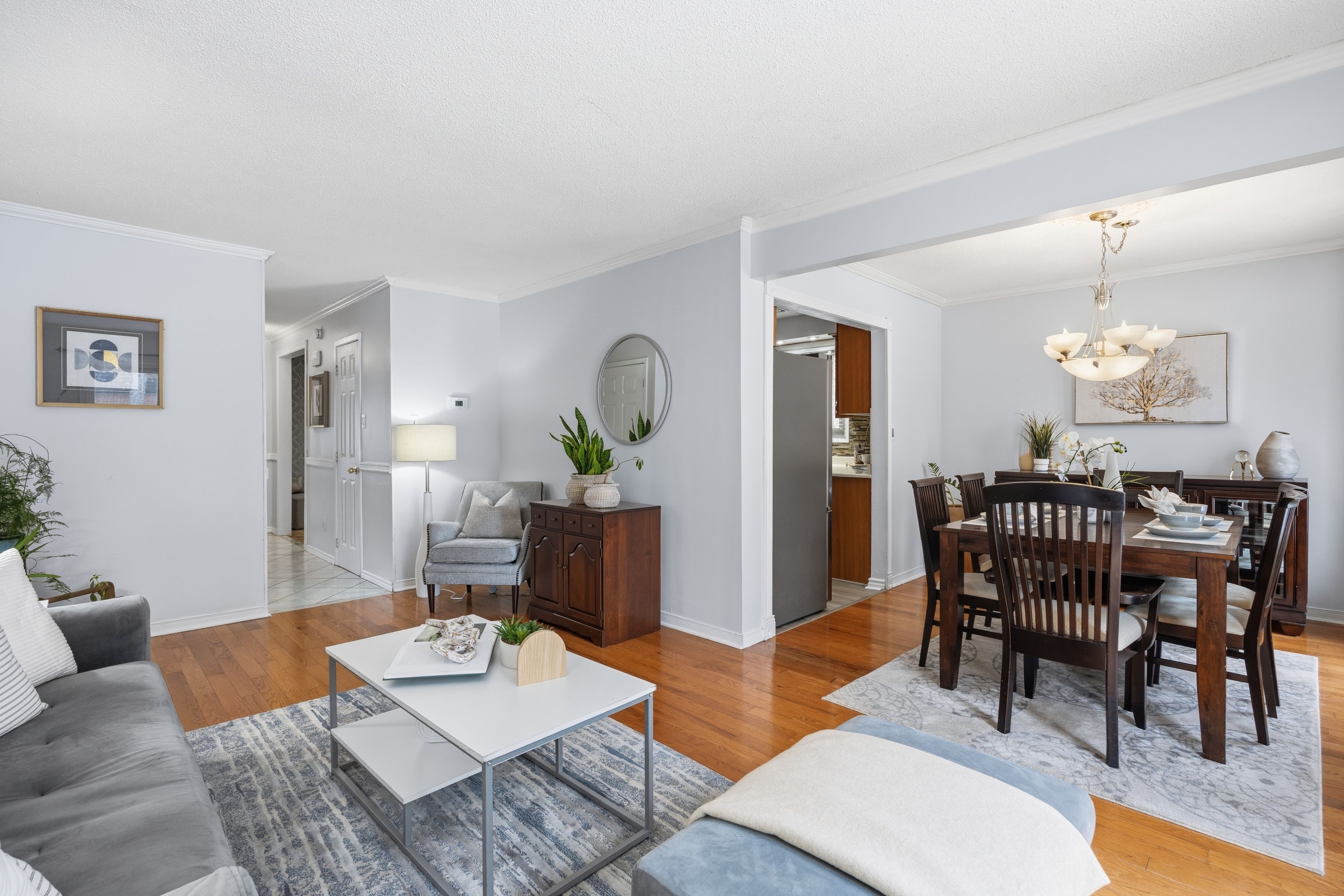 • Spacious living and dining rooms with hardwood floors.