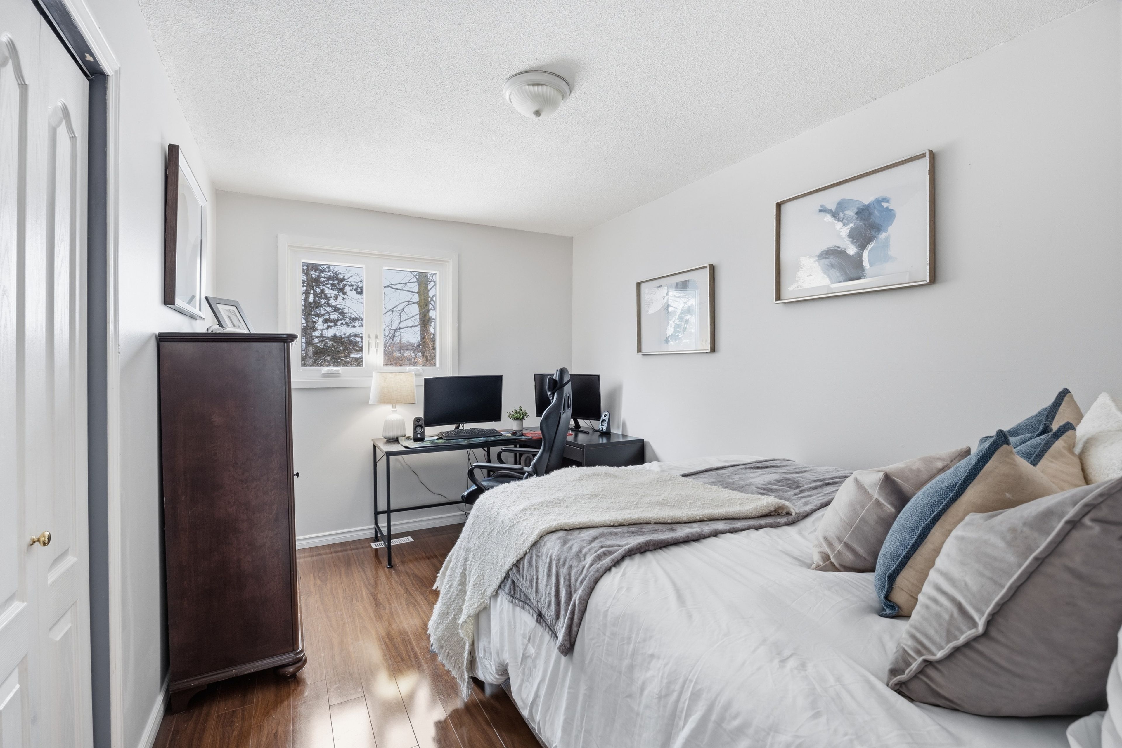 This loving home holds wonderful memories and is great for family gatherings and entertaining. You will be welcomed at the front door by a warm family room and fireplace. The functional, modern kitchen has plenty of cupboard and counter space. The spacious living room and dining room have lovely hardwood floors. The three upstairs bedrooms are a good size, and the primary bedroom has its own en suite powder room. The finished basement has a large rec room, two extra bedrooms, a bathroom and a spacious laundry and furnace area with plenty of storage room. The fully enclosed backyard with a deck is great for children and pets! The double car garage and double driveway provide parking for multiple vehicles. This home is located on a low traffic court and is within walking distance to parks, the conservation area, lake front nature trails, tennis courts and schools (public, catholic, and french immersion). There is also easy access to the 401, go train, recreation complex, and shopping.