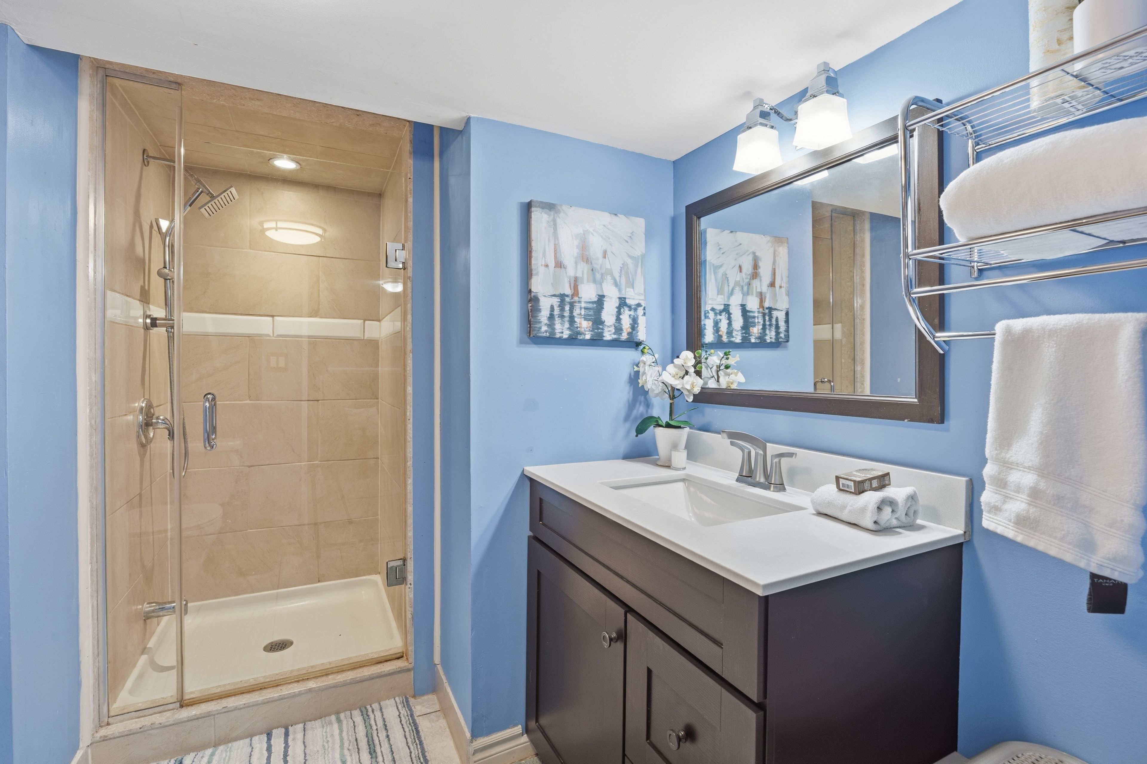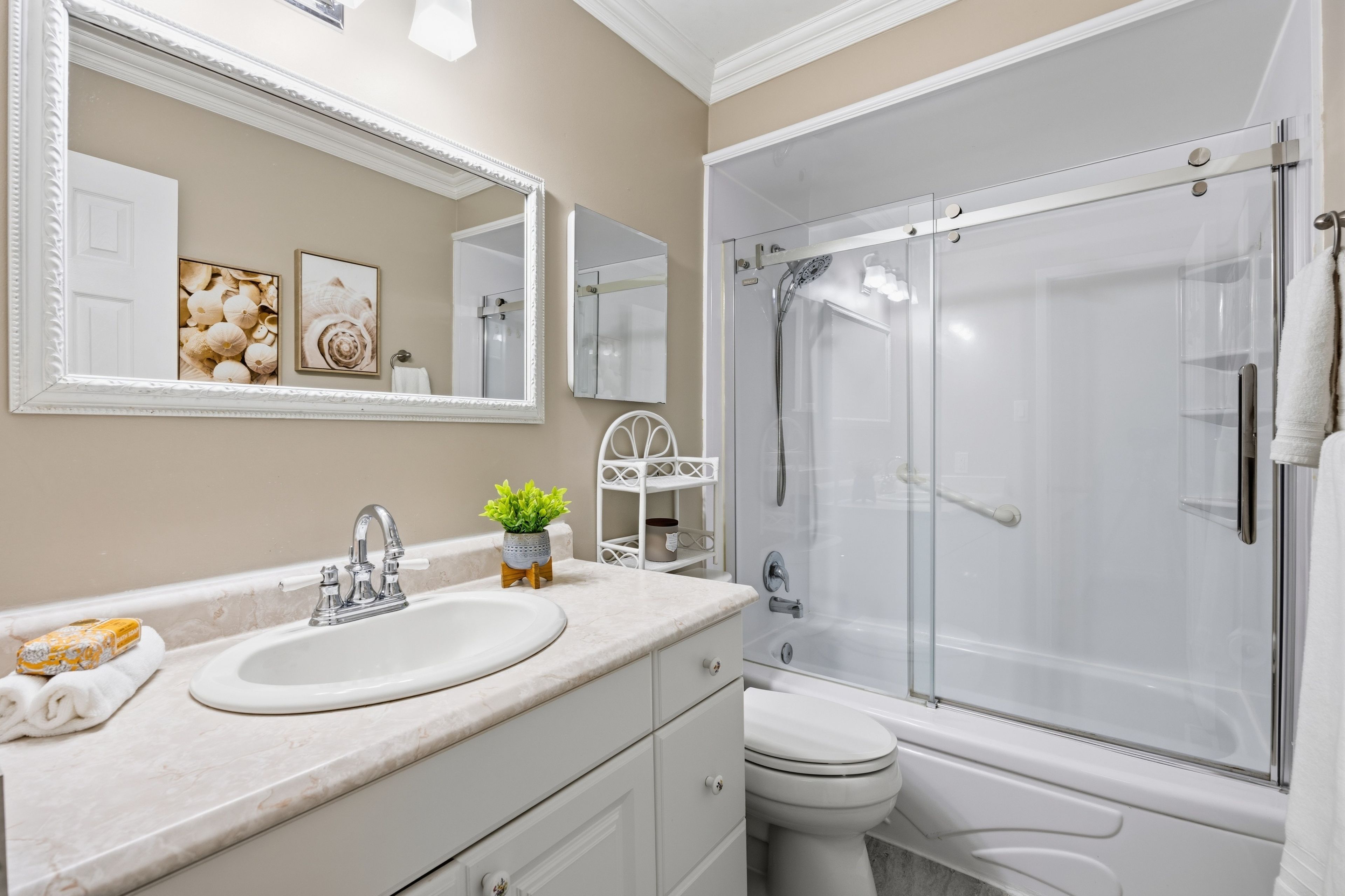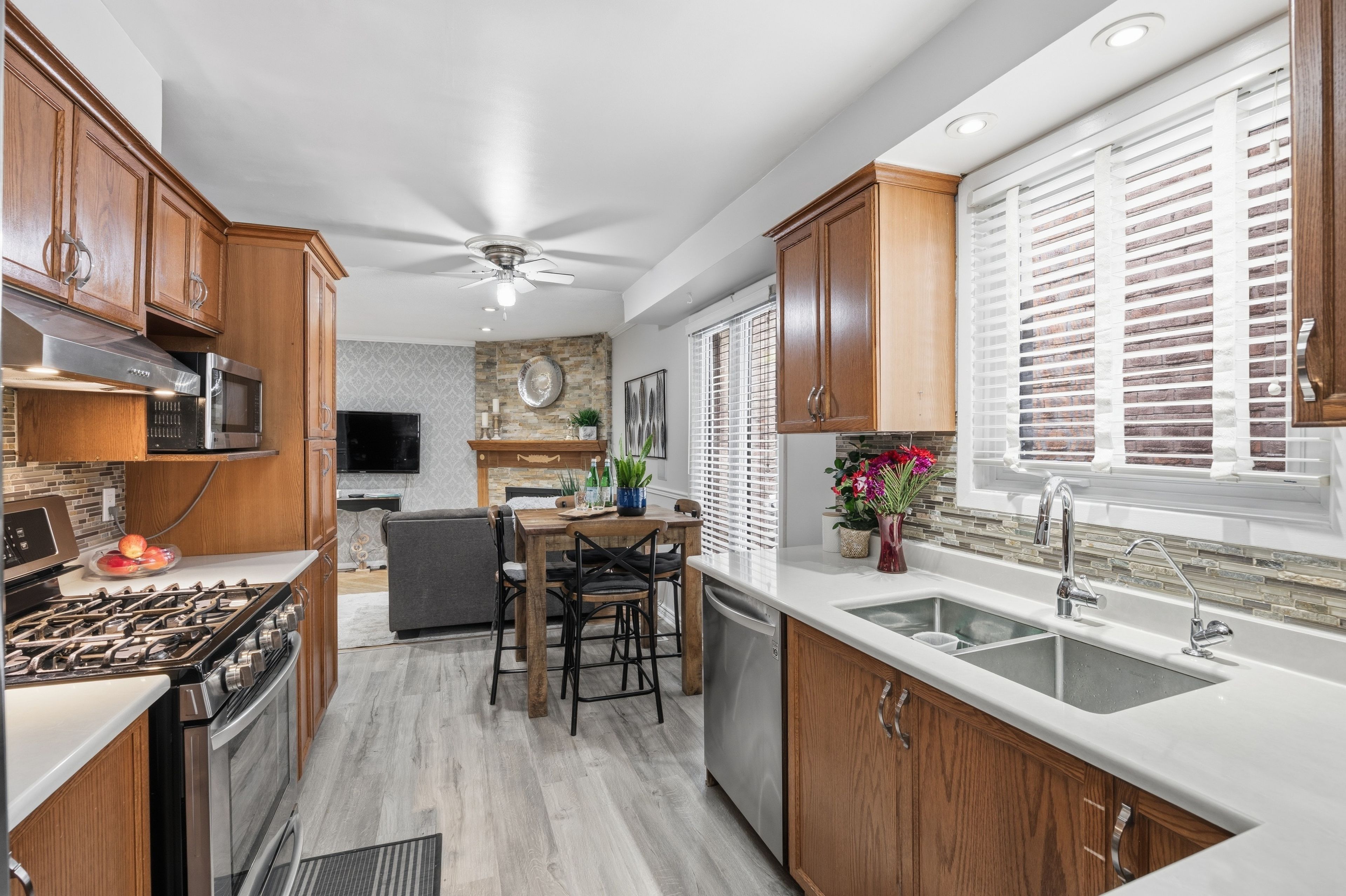 • Modern kitchen with ample cupboard and counter space.