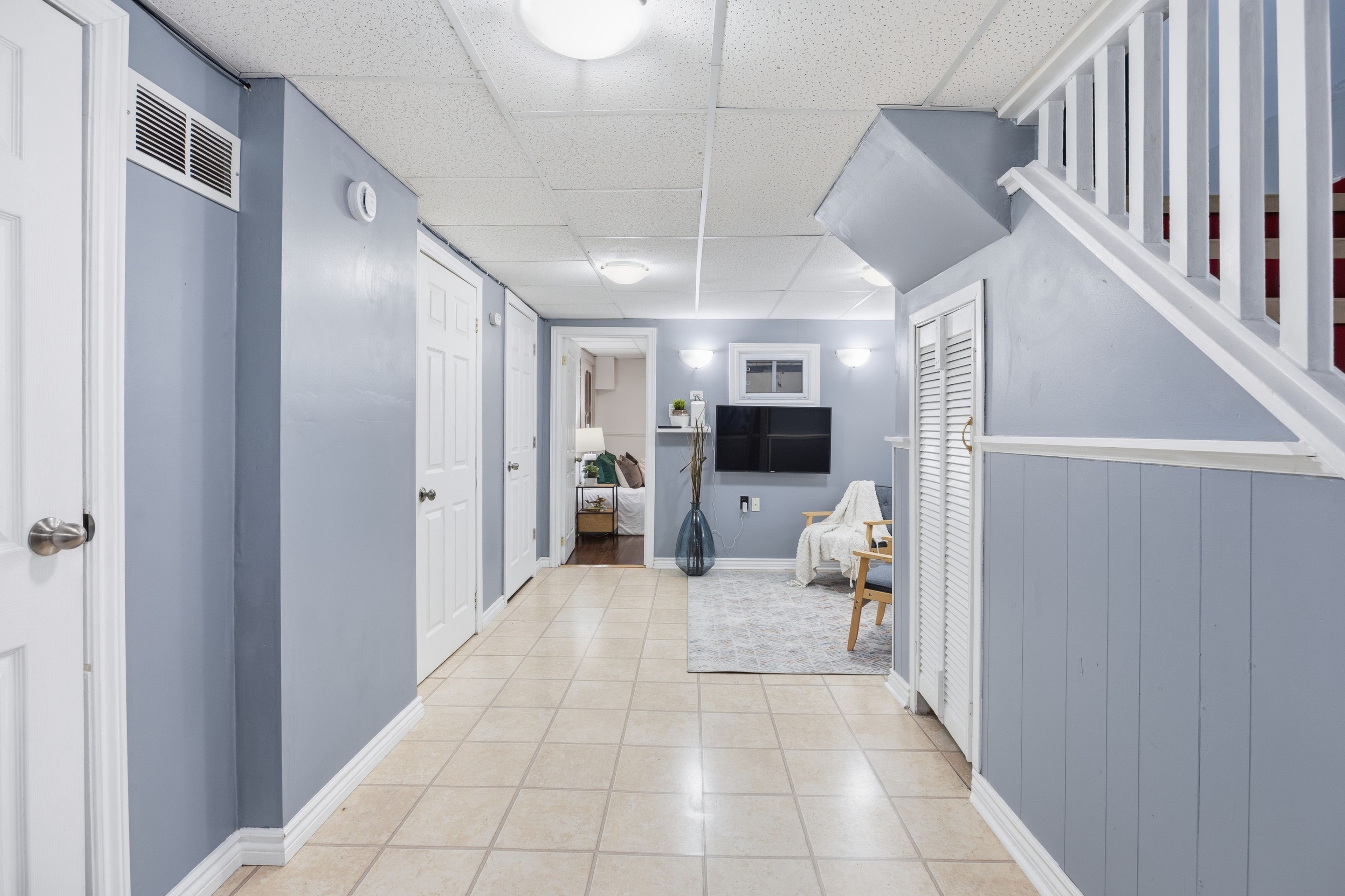 • Finished basement featuring rec room, two bedrooms, and storage.