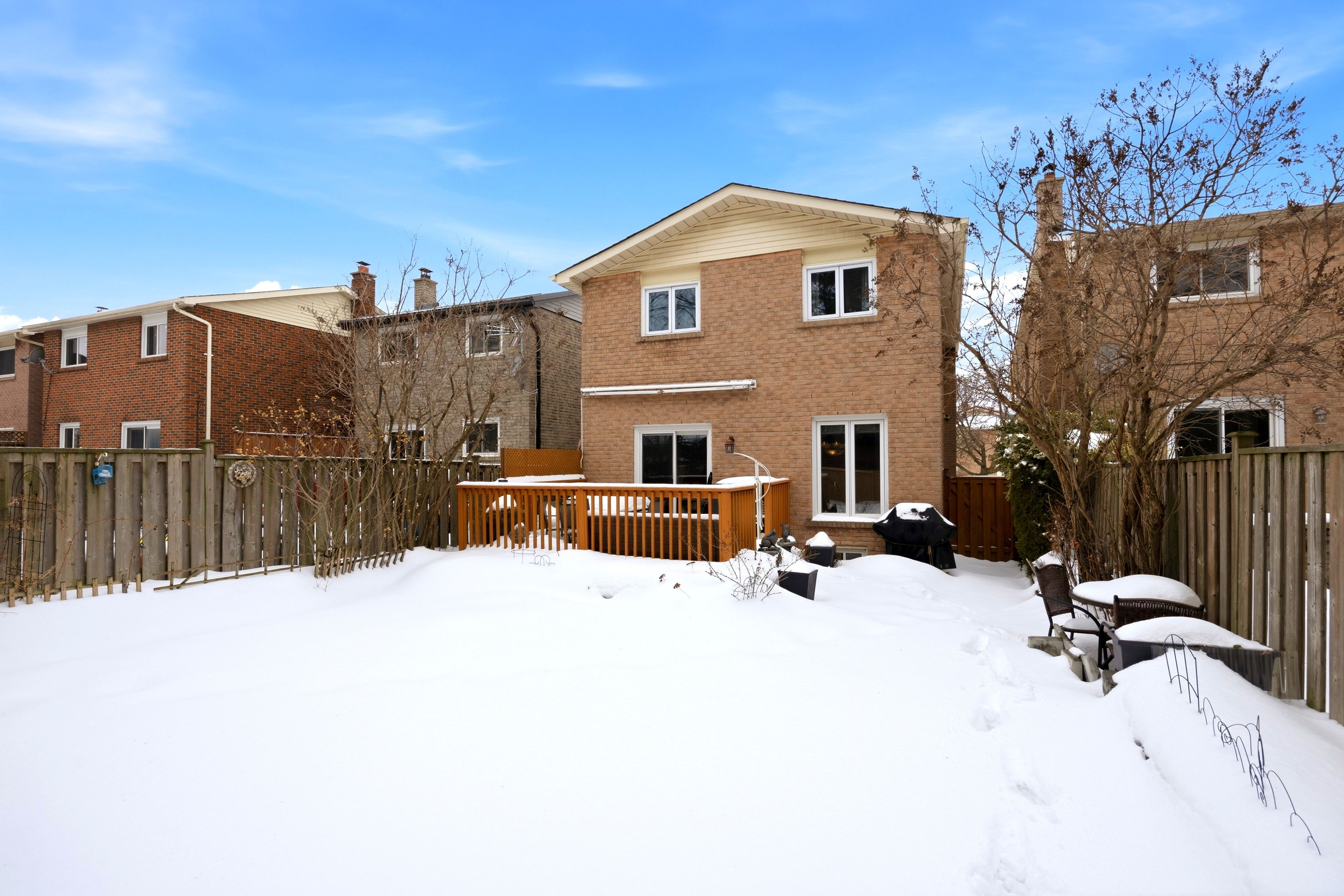 • Fully enclosed backyard with deck, perfect for kids and pets.