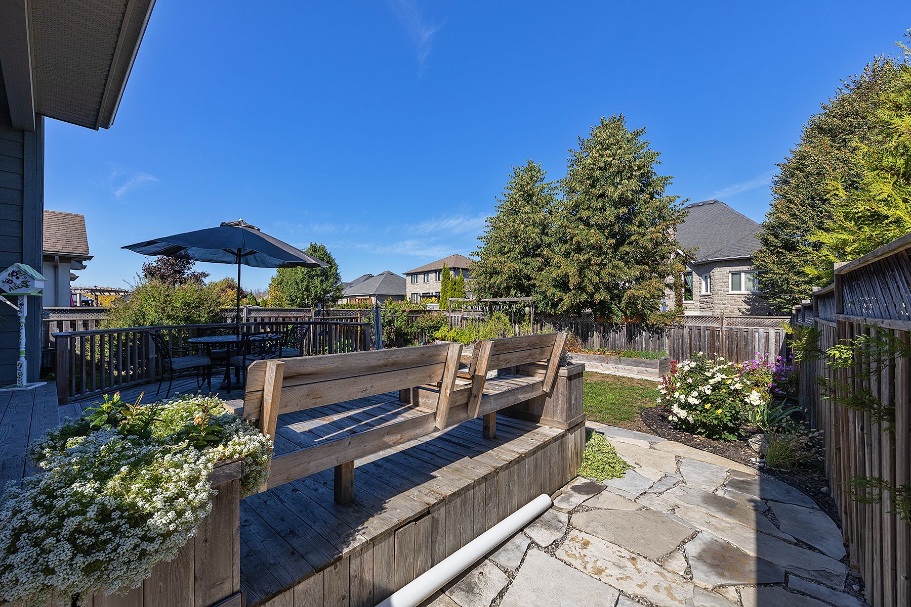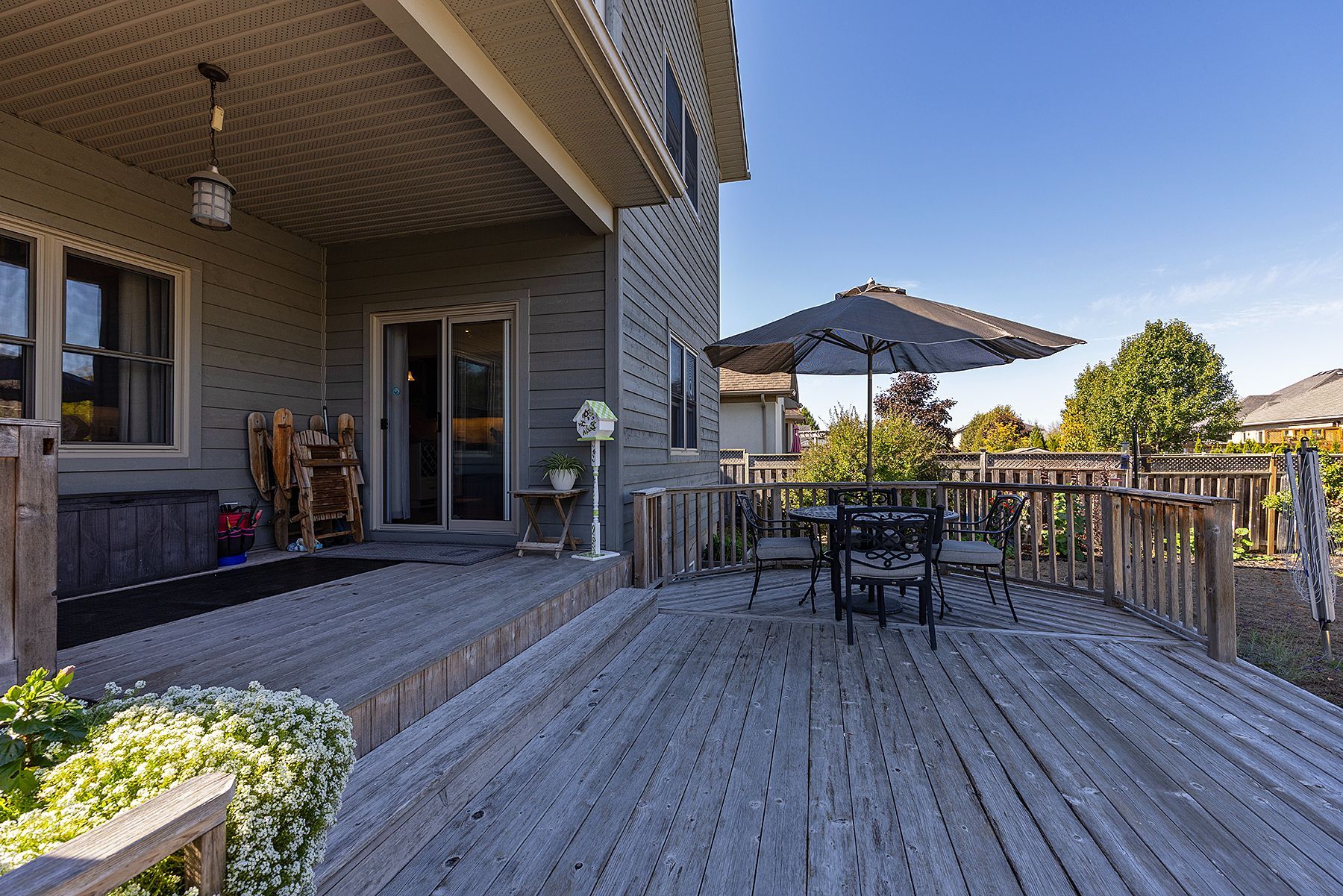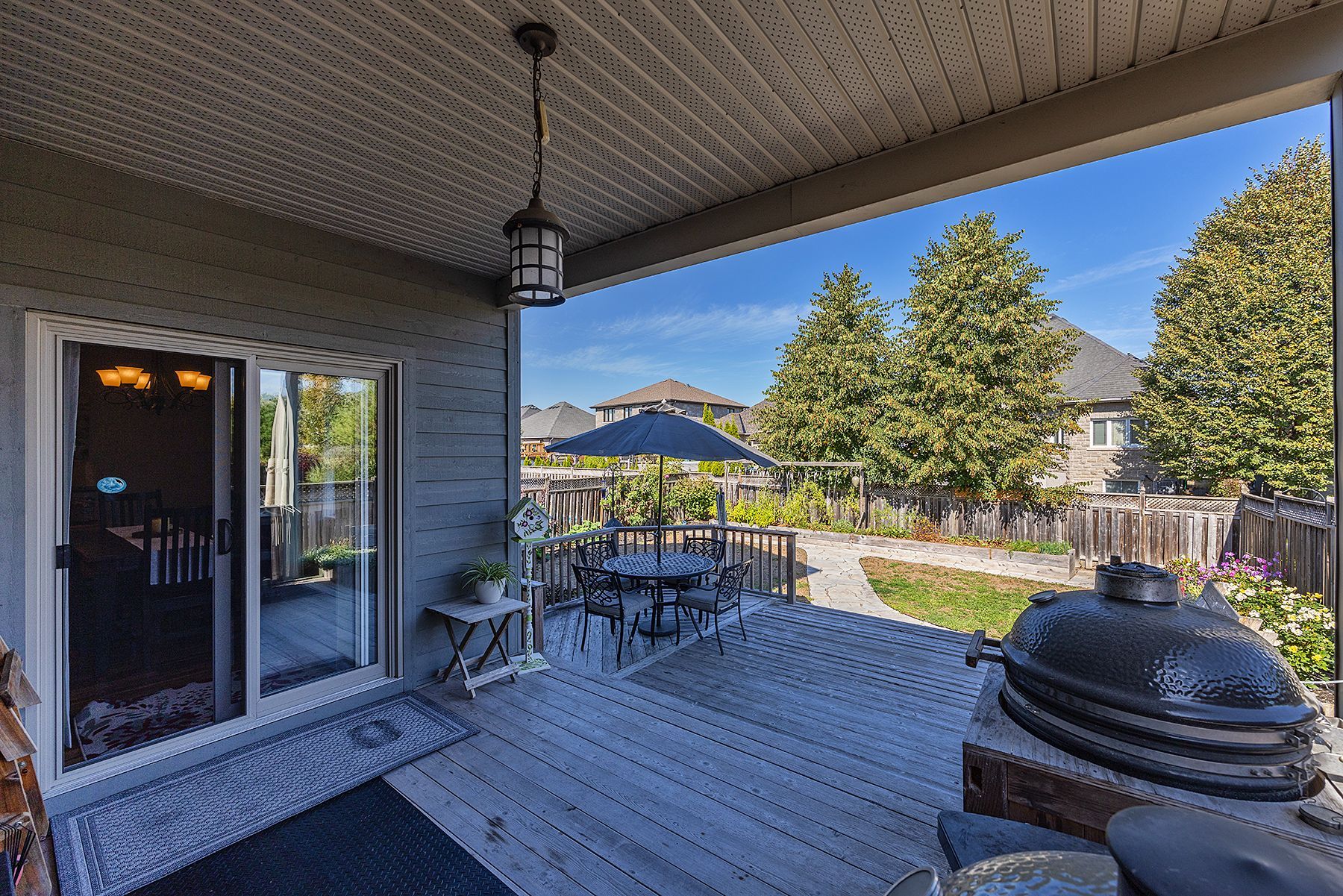 • Landscaped backyard with a covered deck and natural gas BBQ line.