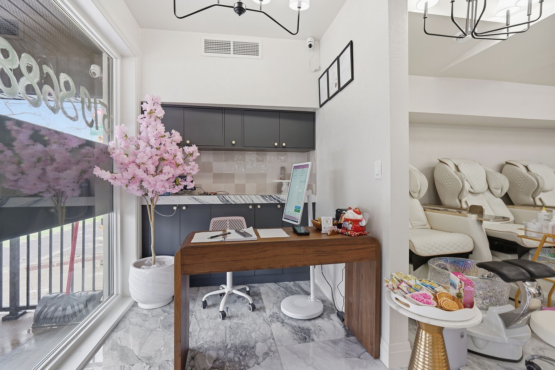 • Bright open-concept commercial unit currently used as a Nail Salon.