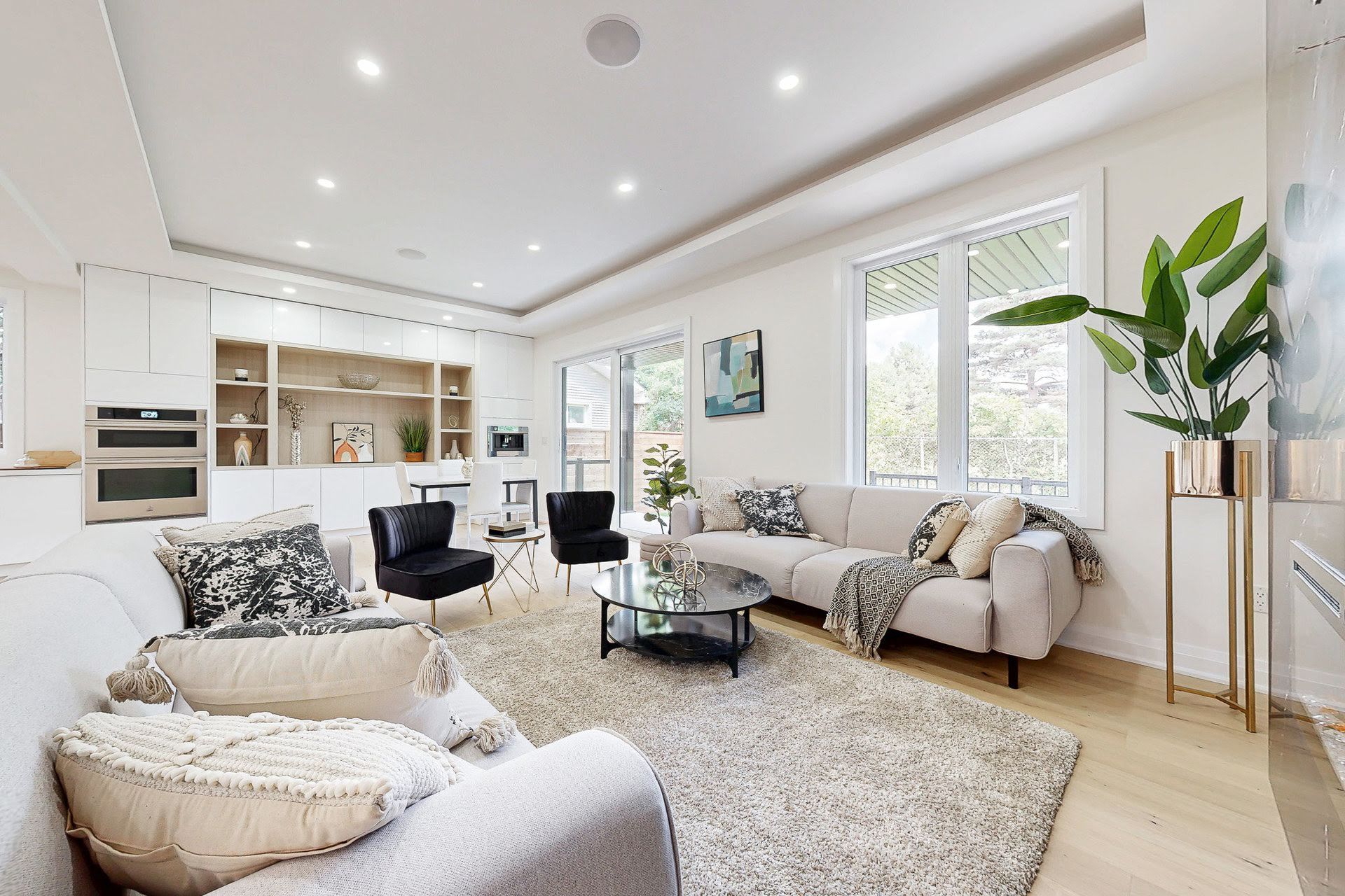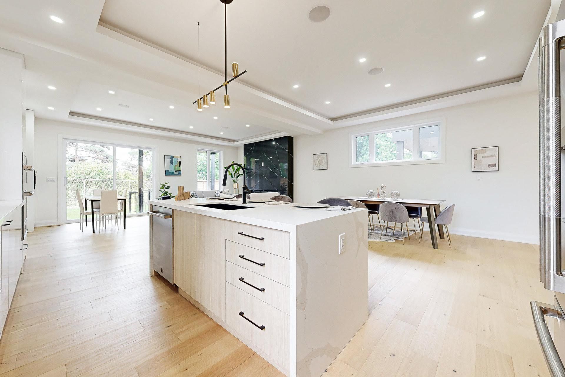 • Bright open-concept layout with modern kitchen and high-end appliances.