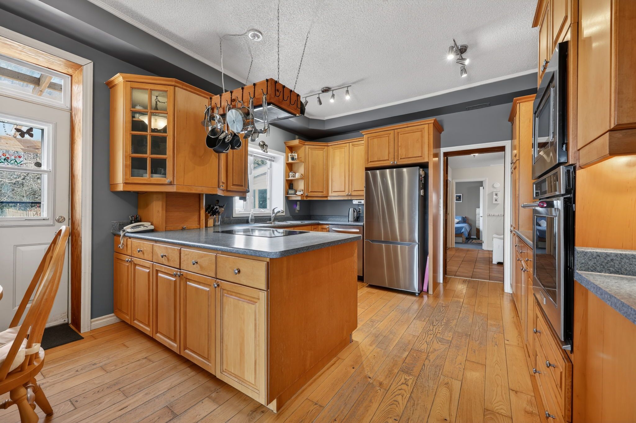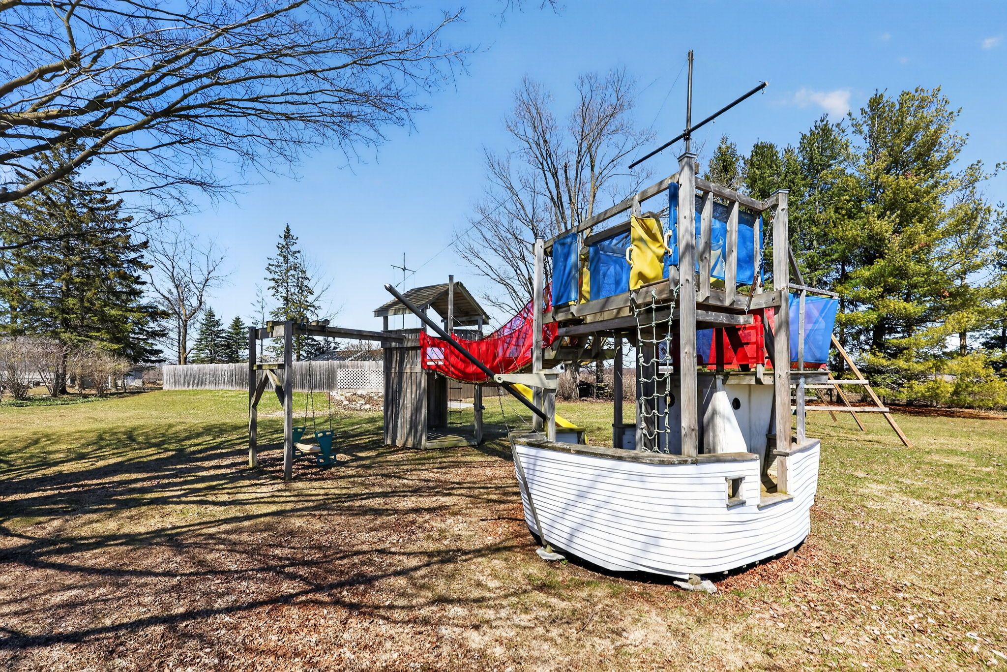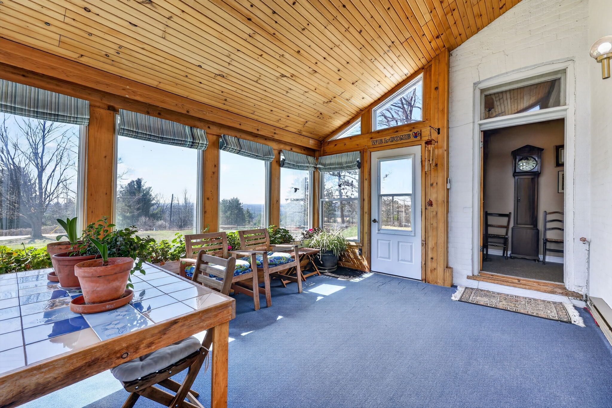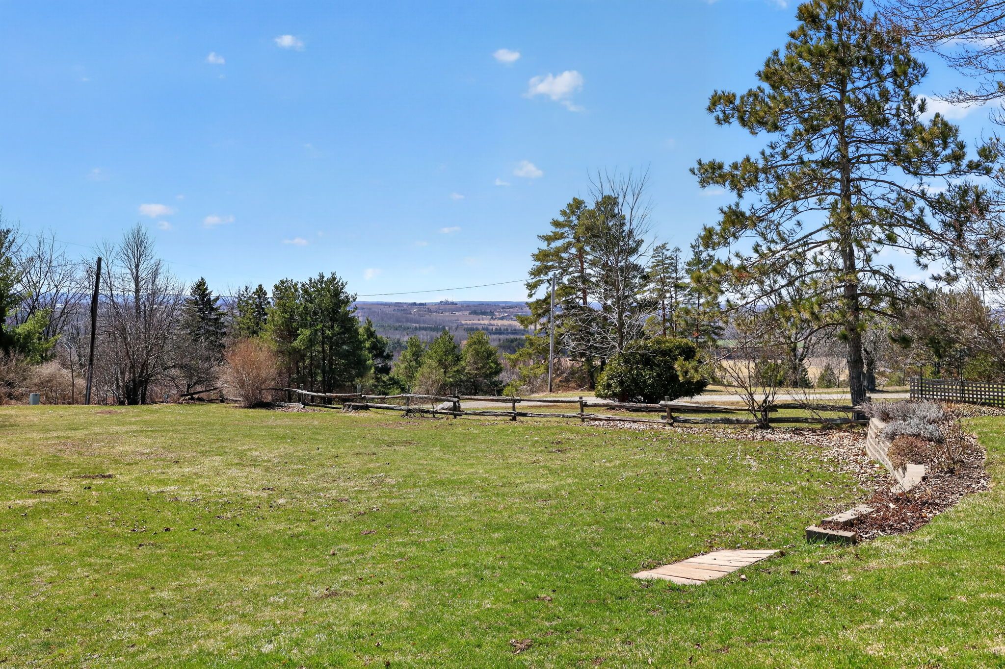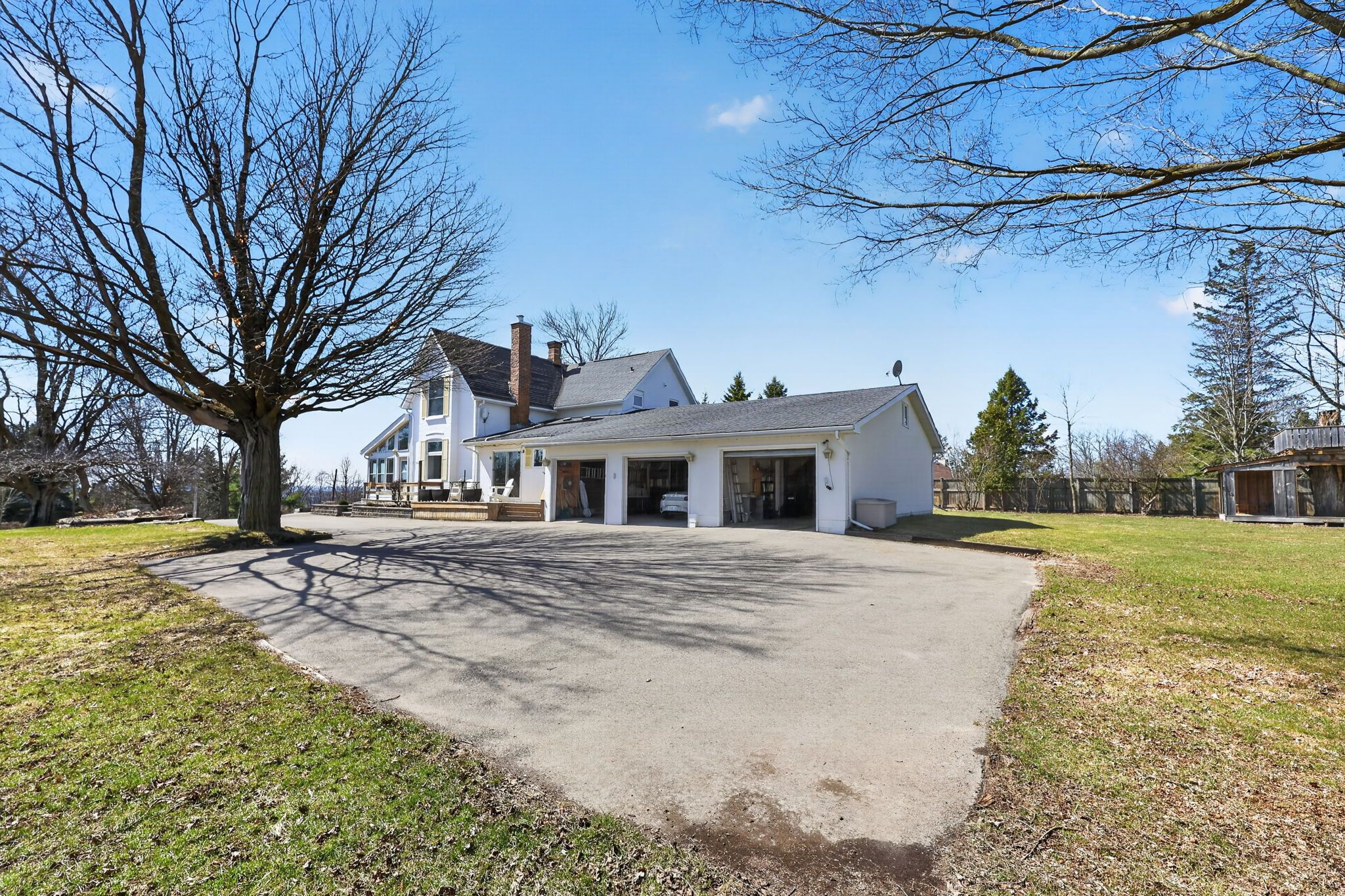 A one of a kind country home, perfect for a family that loves the outdoors, southern views for miles of beautiful rolling countryside and a warm and inviting home. Mature sugar maple tree lined driveway, with scattered apple trees. 4 car garage with house access, tree forts and zip lines, sheltered and fully fenced in ground pool area with lot's of patio space for large summer gatherings. This is the home and property you look forward to coming home to each day. Unwind with a morning coffee or evening glass of wine as you sit out on the front porch and admire the scenery. Hours of walking trails across the paved road on conservation land. Inside offers large rooms, high ceilings, cozy family room, windows everywhere with lovely private views, an on demand generator, high speed fibre optic internet on the road, brand new gas furnace and much more. Lot's of storage rooms, walkout's to convenient decks, and patio pergola areas. Summertime dinners will inevitably be outside under the twinkling lights. Great for kids and pets to roam around safely. A great time to escape the subdivision for a true country lifestyle that you won't regret.