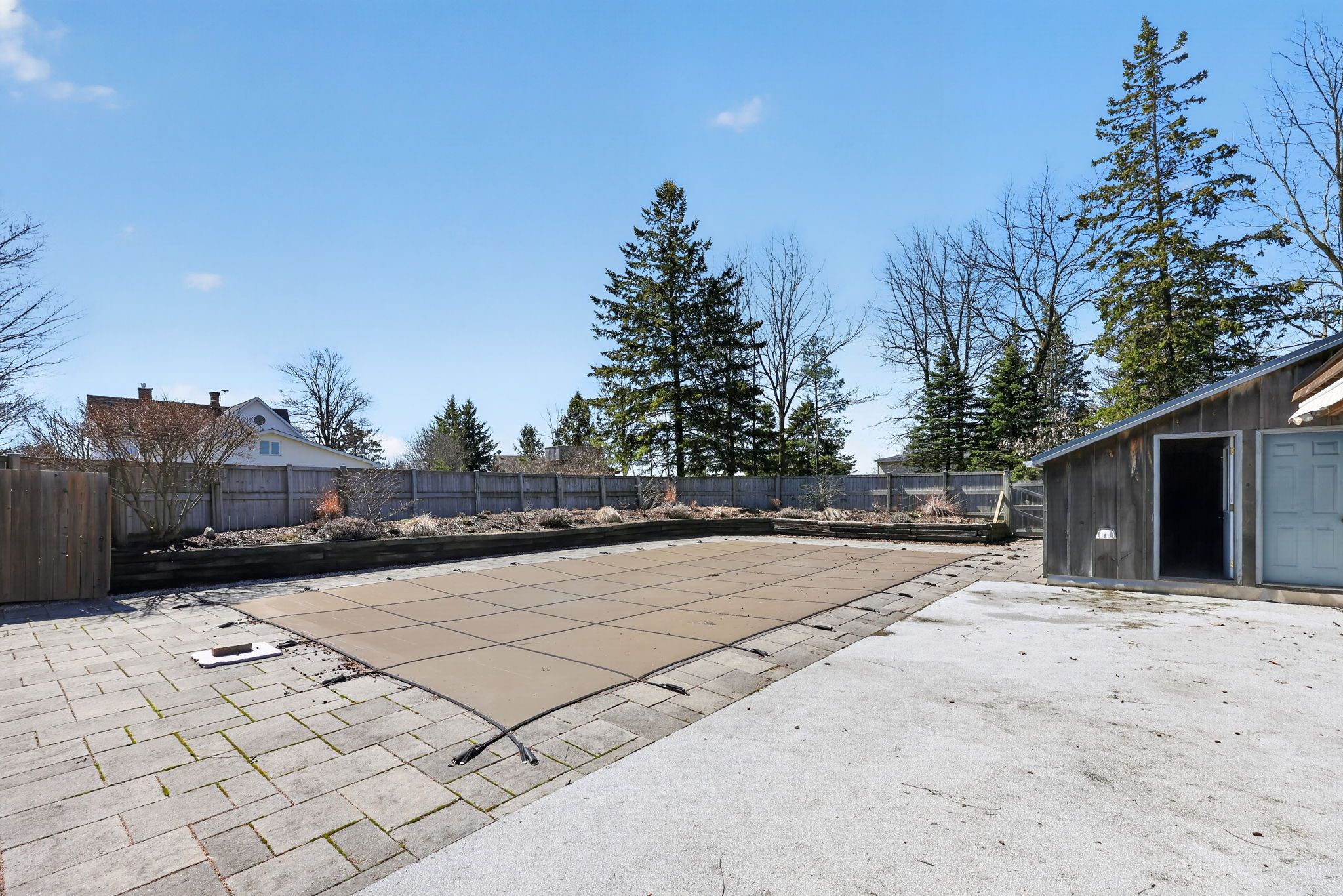 • Fully fenced yard with an in-ground pool and ample patio space.