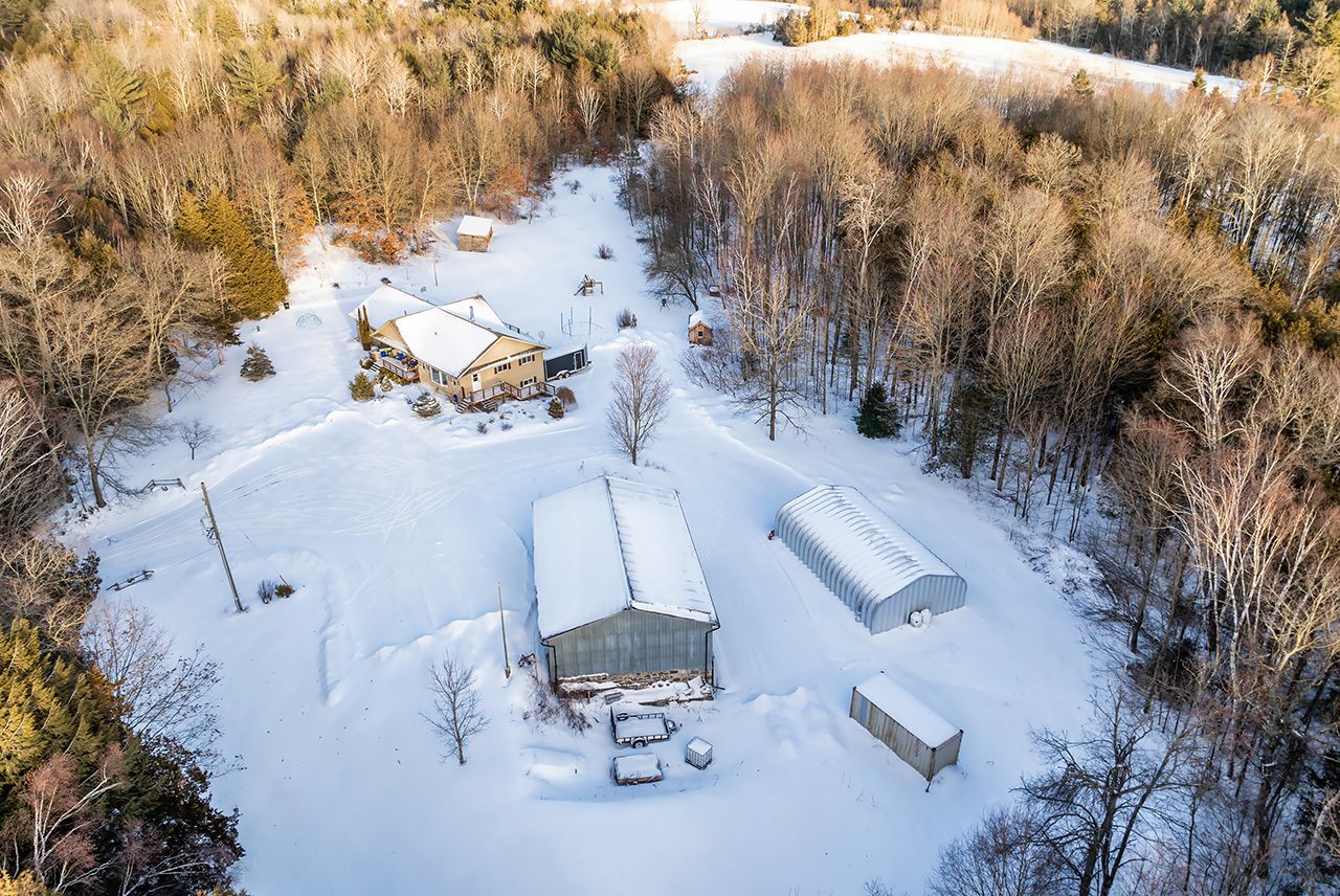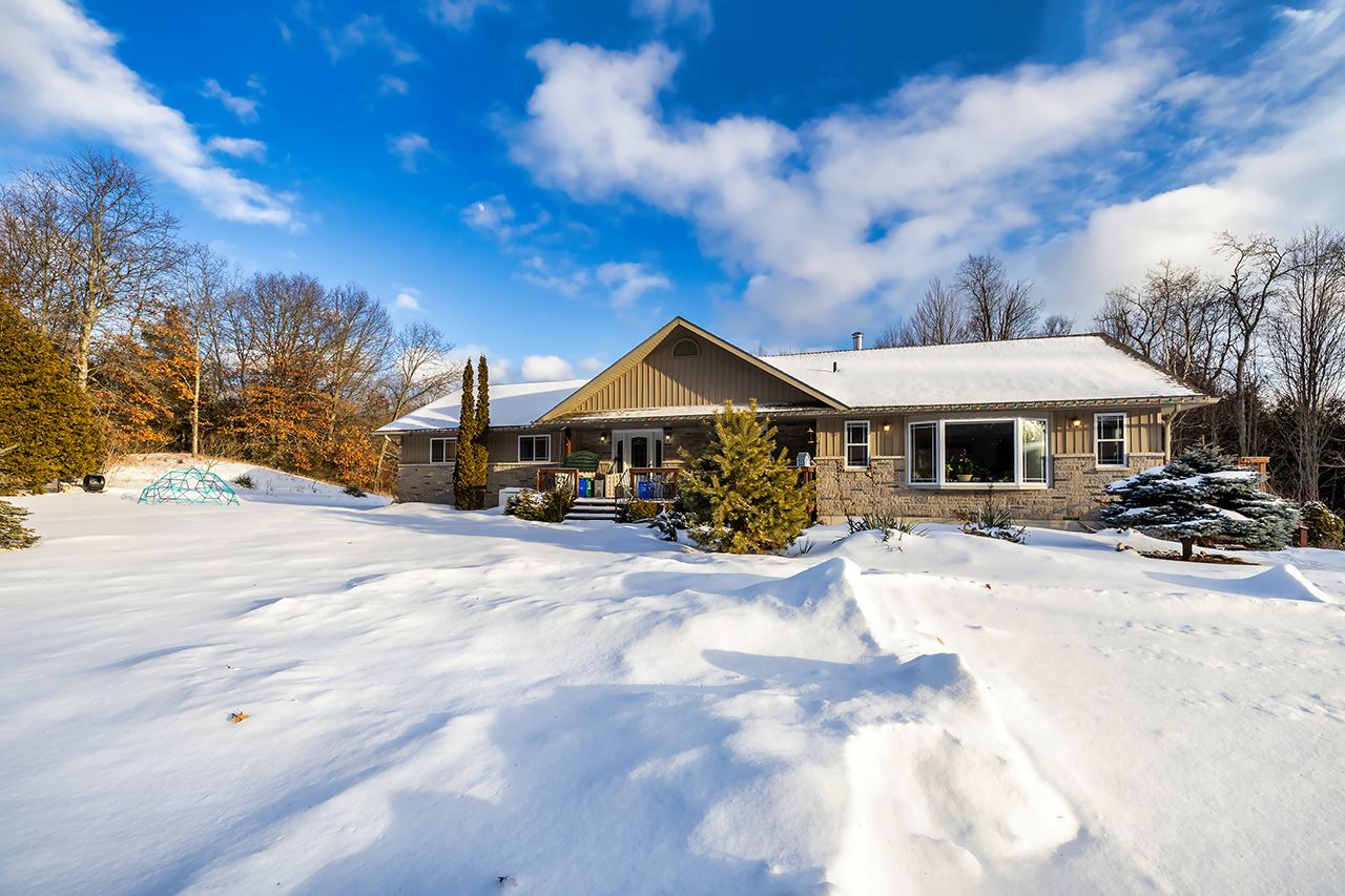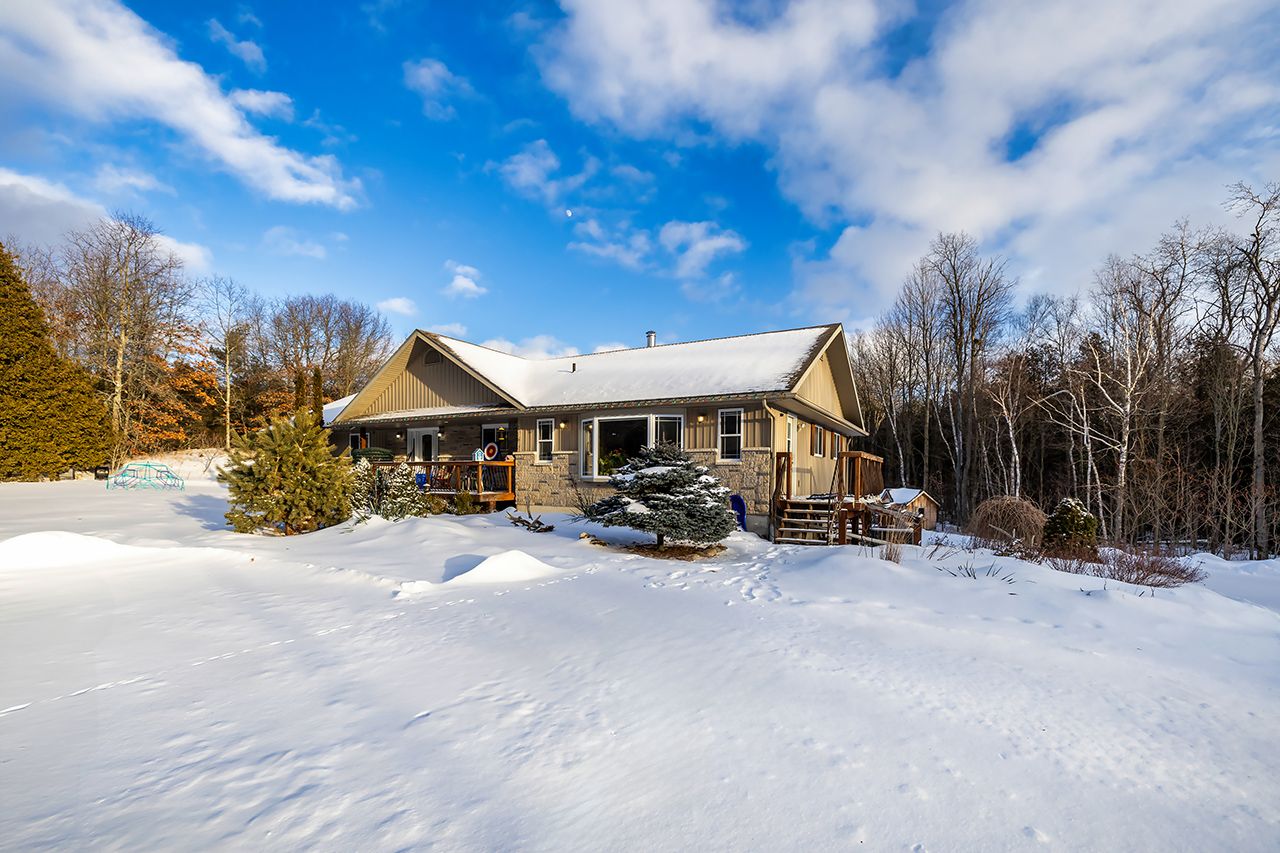 Escape to your own private retreat at 769 penryn road, colborne. This exceptional 80-acre property offers the perfect blend of comfort, craftsmanship, and income potential. The custom 3-bedroom, 3-bathroom bungalow showcases stunning cherry wood floors, trim, and accents milled directly from the property, creating a warm, one-of-a-kind interior. The spacious living room features a built-in cherry desk and convenient 2-piece bath. The kitchen is designed for both function and style with custom hickory cabinetry, granite countertops, a large centre island, vaulted ceilings, and patio doors leading to the back deck with picturesque views of the surrounding landscape. A generous 5-piece bath with air tub and a large primary bedroom with walk-in closet complete the main level. The fully finished walk-out basement offers a large rec room and family room with access to a covered back patio-ideal for entertaining or quiet relaxation. Additional features include central air, generator wiring, and numerous updates: 22kw generac (2017), propane forced-air furnace (2018), granite countertops (2018), bathroom/pantry renovation (2020), bridge wood replacement (2020), water treatment system (2023), and new shed (2024). Outbuildings are equally impressive, including a solid 30' x 50' barn with metal roof, trusses, new sliding doors, and solar panels, plus a 25' x 42' heated and insulated shop. The beautifully landscaped exterior features a covered front porch and wrought iron railings on all decking. The land itself is a nature lover's dream with three streams, extensive trails, tree stands, mixed bush, and open meadows. Owned solar panels are included, providing excellent income with a contract in place until 2035 (generated $7,767. 01 in 2025). A rare opportunity to own a private, income-generating rural estate-this is country living done right.