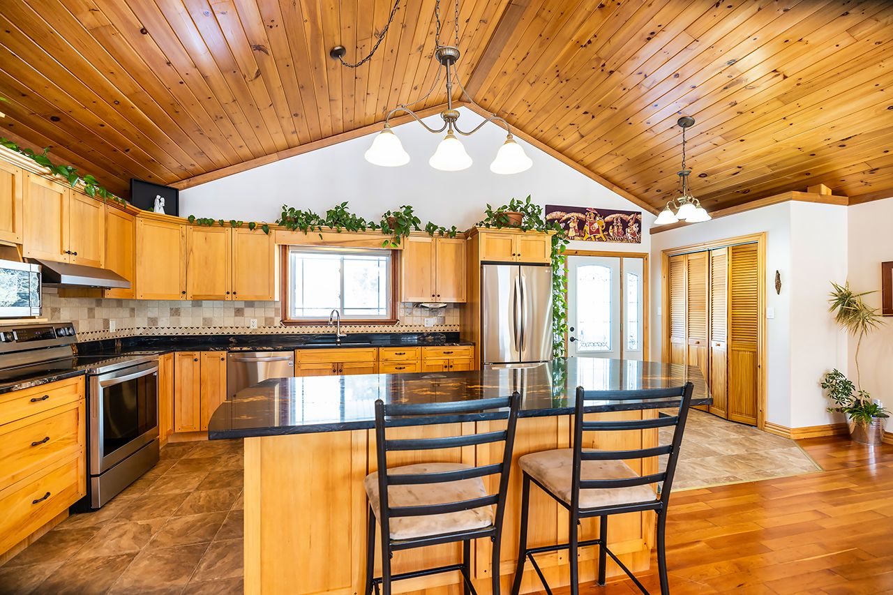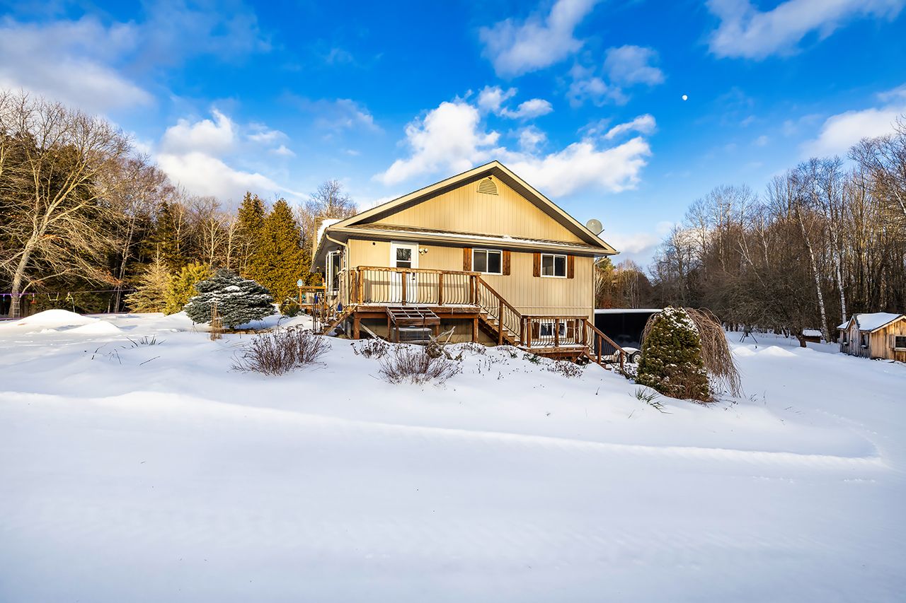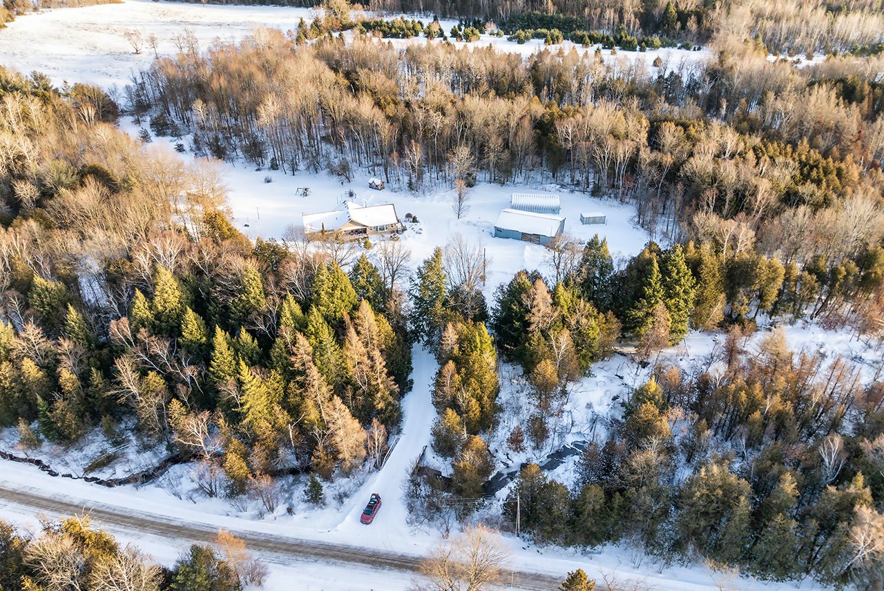 Escape to your own private retreat at 769 penryn road, colborne. This exceptional 80-acre property offers the perfect blend of comfort, craftsmanship, and income potential. The custom 3-bedroom, 3-bathroom bungalow showcases stunning cherry wood floors, trim, and accents milled directly from the property, creating a warm, one-of-a-kind interior. The spacious living room features a built-in cherry desk and convenient 2-piece bath. The kitchen is designed for both function and style with custom hickory cabinetry, granite countertops, a large centre island, vaulted ceilings, and patio doors leading to the back deck with picturesque views of the surrounding landscape. A generous 5-piece bath with air tub and a large primary bedroom with walk-in closet complete the main level. The fully finished walk-out basement offers a large rec room and family room with access to a covered back patio-ideal for entertaining or quiet relaxation. Additional features include central air, generator wiring, and numerous updates: 22kw generac (2017), propane forced-air furnace (2018), granite countertops (2018), bathroom/pantry renovation (2020), bridge wood replacement (2020), water treatment system (2023), and new shed (2024). Outbuildings are equally impressive, including a solid 30' x 50' barn with metal roof, trusses, new sliding doors, and solar panels, plus a 25' x 42' heated and insulated shop. The beautifully landscaped exterior features a covered front porch and wrought iron railings on all decking. The land itself is a nature lover's dream with three streams, extensive trails, tree stands, mixed bush, and open meadows. Owned solar panels are included, providing excellent income with a contract in place until 2035 (generated $7,767. 01 in 2025). A rare opportunity to own a private, income-generating rural estate-this is country living done right.