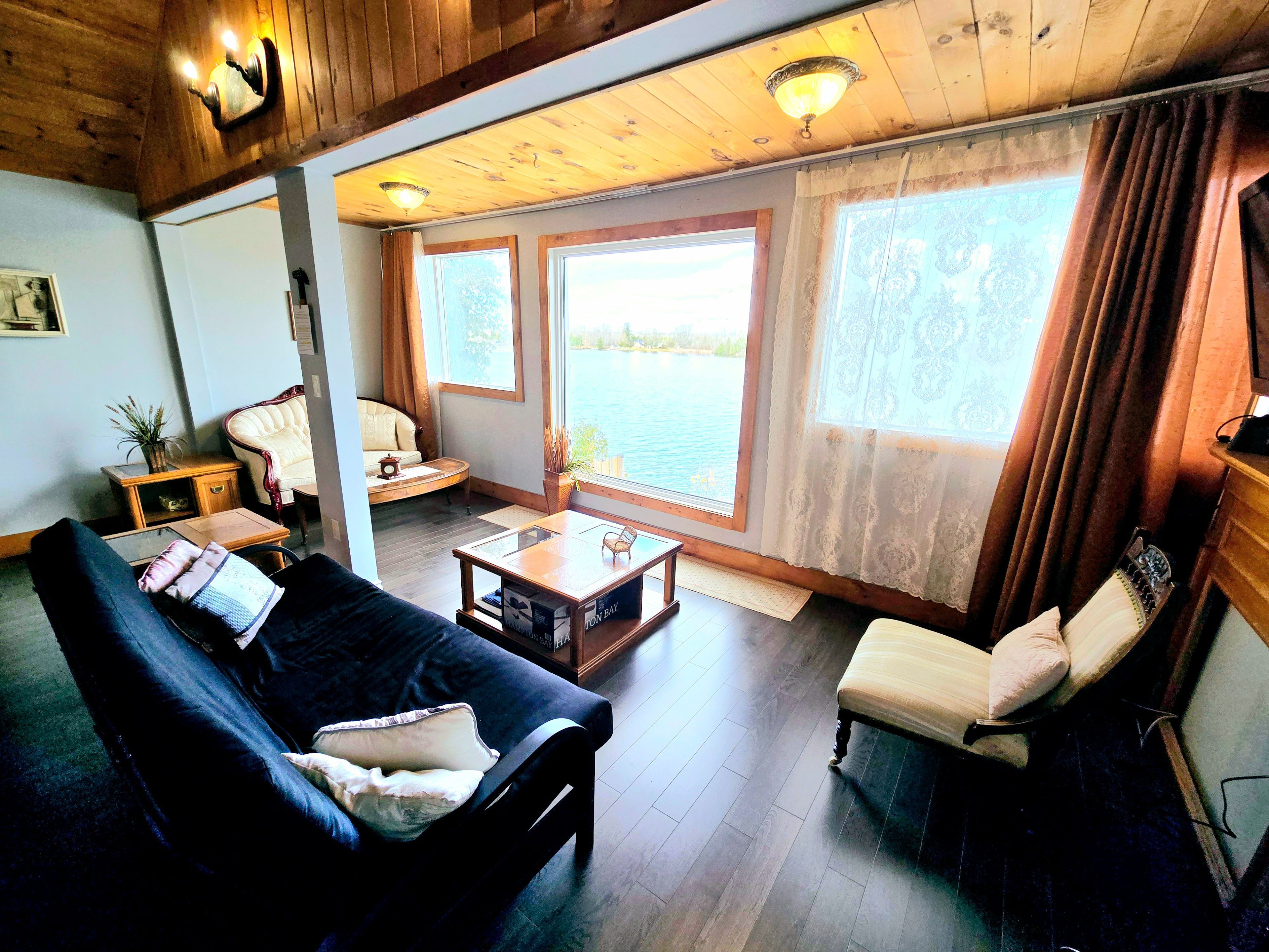 Discover the ultimate lakeside living with this stunning year-round waterfront home in campbellford! Perfect as a permanent residence, vacation rental, or cottage retreat, this property offers year-round road access and modern water/septic systems. Enjoy a pristine shoreline with crystal clear waters, and breathtaking panoramic sunsets, a perfect place location for hunting and fishing enthusiasts. This renovated 2-bedroom, 2-bathroom home features 10-foot cathedral ceilings, creating a spacious and airy feel. Located in a peaceful, private setting, you can navigate from trent river to seymour lake or enjoy the large lot. The deck is newly built in 2023. Close to top-notch restaurants, healey falls, ranney gorge suspension bridge, and essential amenities like no frills, mcdonalds, tim hortons, canadian tire, giant tiger, rona, home hardware, schools, community centre, hospital, and antique stores. With well-maintained roads providing easy year-round access, this property ensures convenience and comfort. Don't miss this exceptional opportunity to own a piece of paradise in campbellford. (this is a land lease property, $10,136. 18 in 2026)