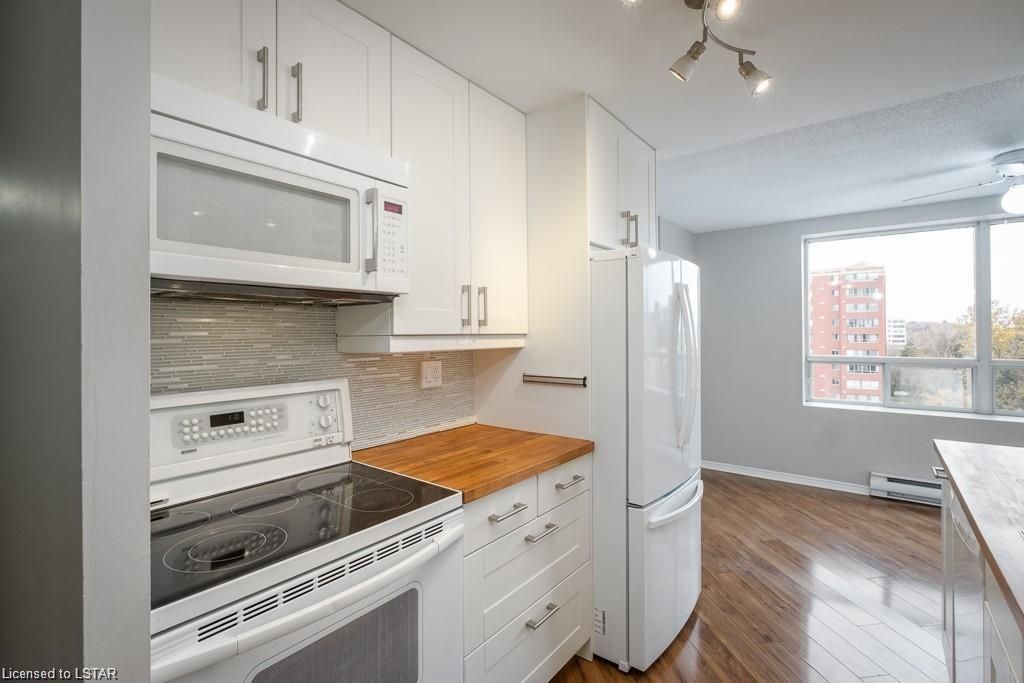 Fully furnished 2-bedroom, 2-bathroom corner unit bright, spacious, and move-in ready! Located in a very clean, quiet, and well-managed building at london, on. Perfect for professionals, couples, or small families looking for a comfortable and convenient place to call home. Large living room with walkout to open balcony offering unobstructed views. Bright kitchen with butcher block-style countertops. Separate dining area with a large window. Spacious master bedroom with ensuite bathroom. In-suite laundry for your convenience. Prime location: walking distance to no frills, shoppers drug mart, and a variety of restaurants. Just minutes to victoria hospital and children's hospital. Easy access to highway 401. Bus stop right at your doorstep. Tenant is responsible for hydro and hot water tank rent.