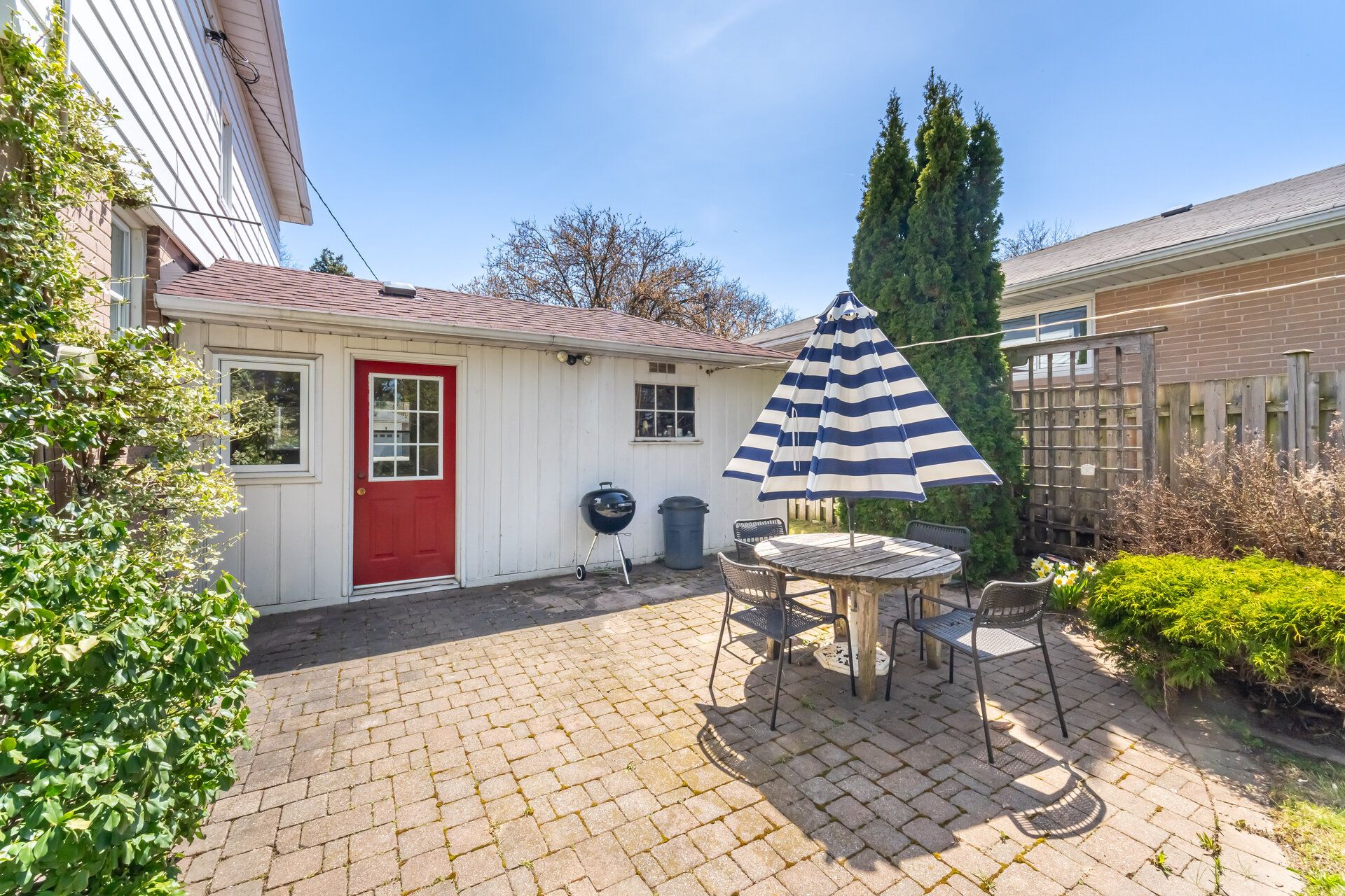 • Private backyard patio perfect for relaxation and outdoor activities.