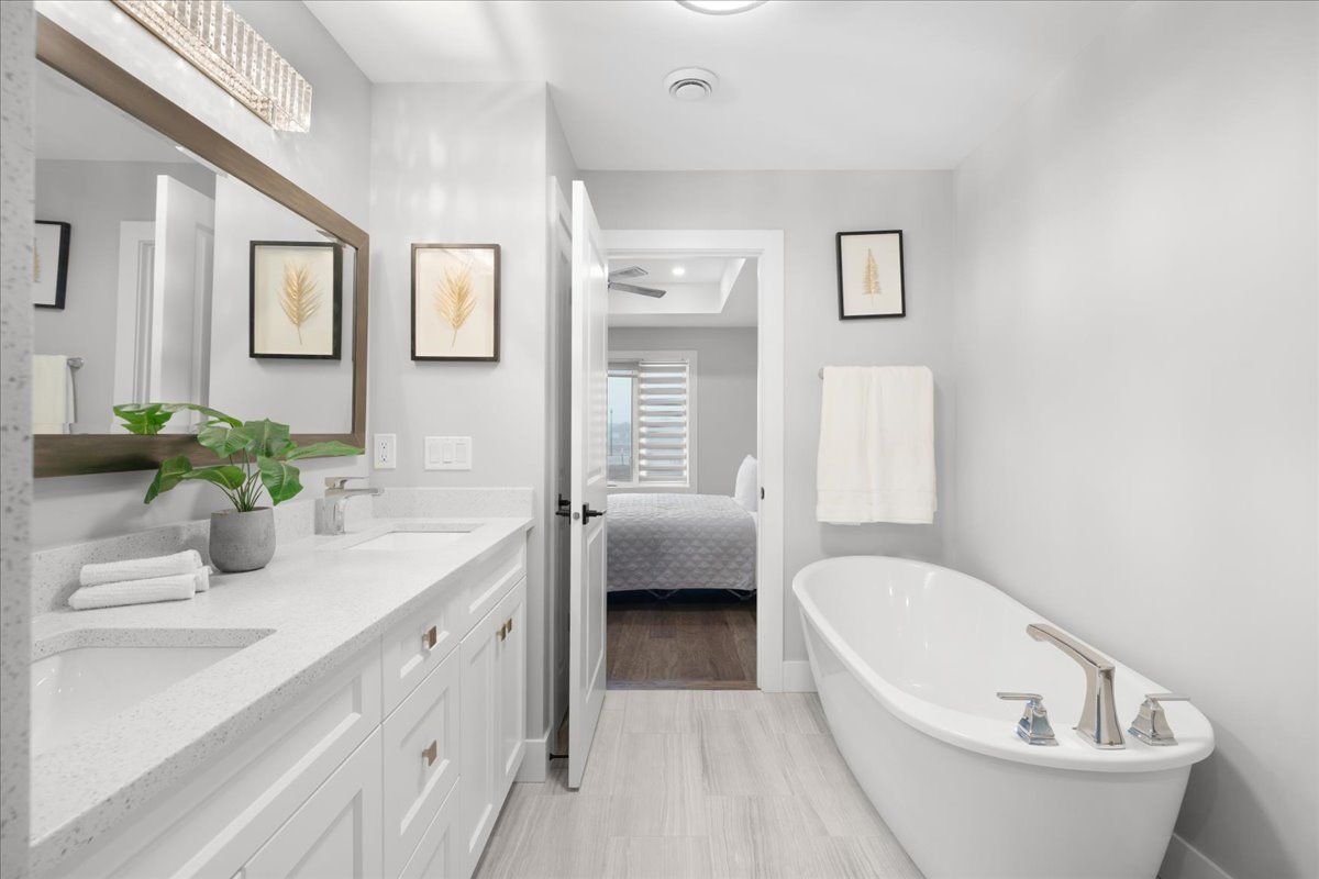 • Carpet-free main floor features two bedrooms and two full baths.