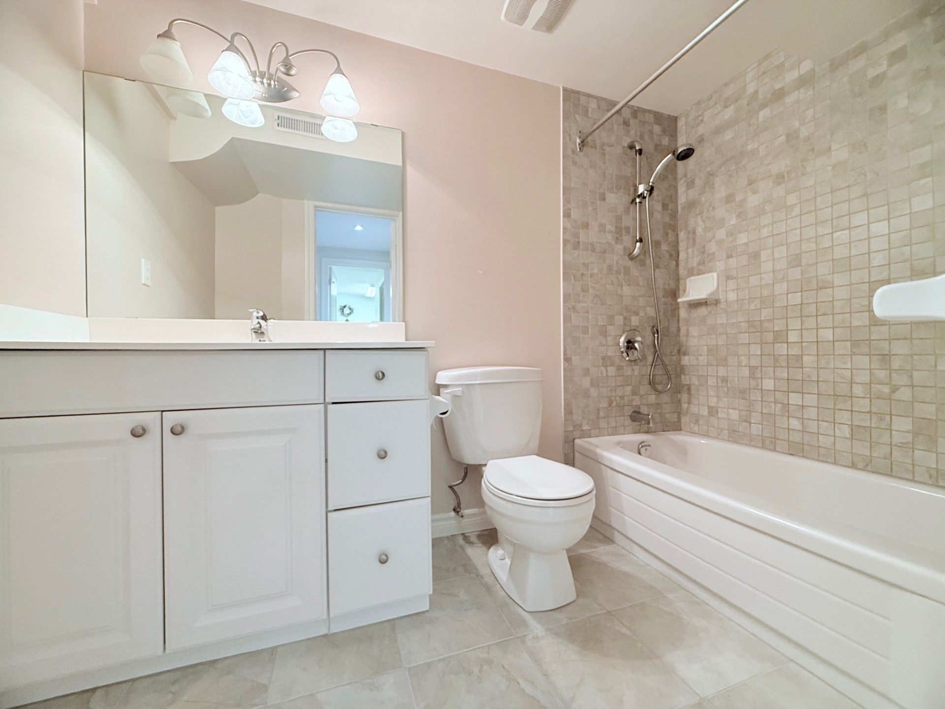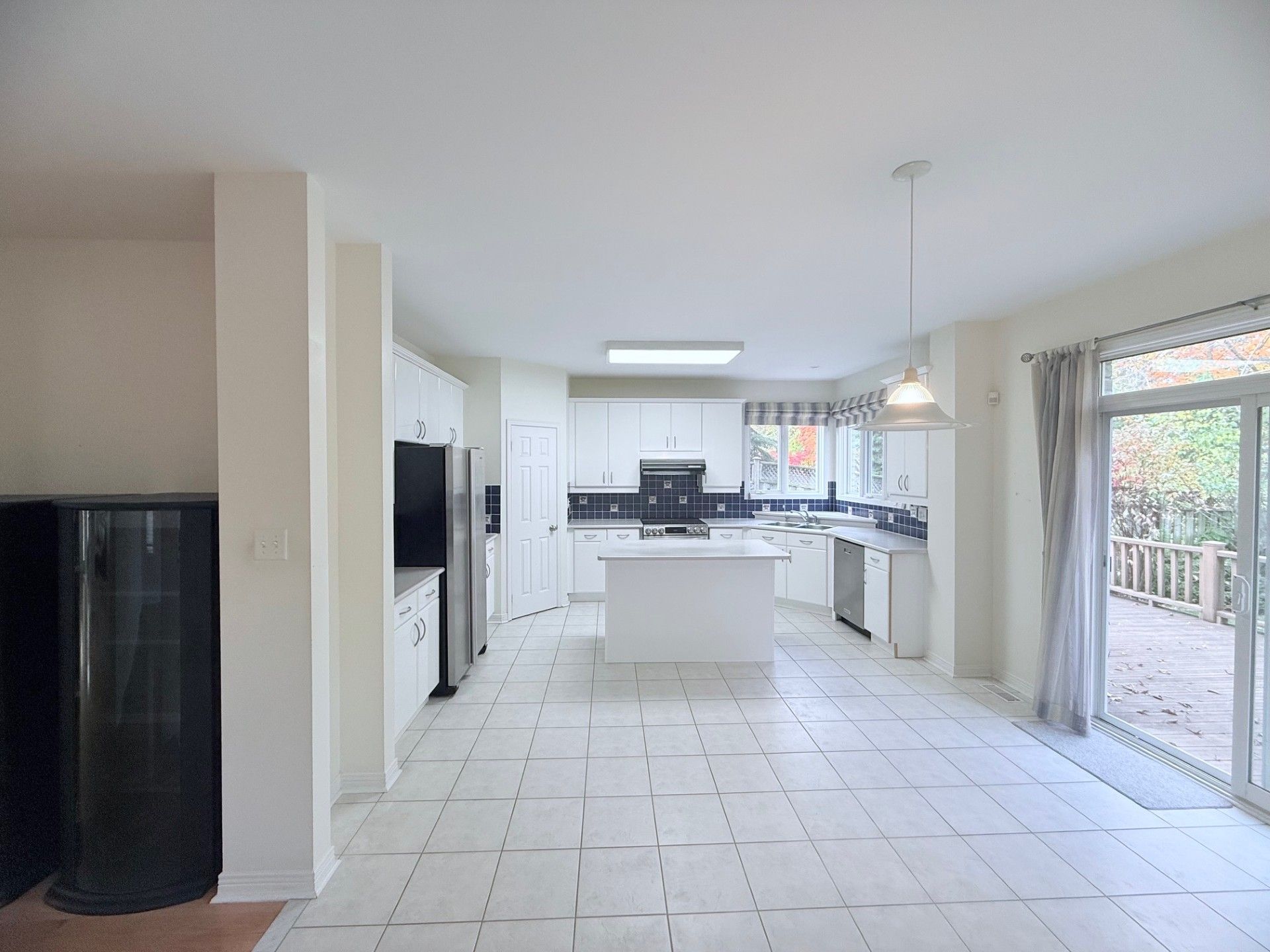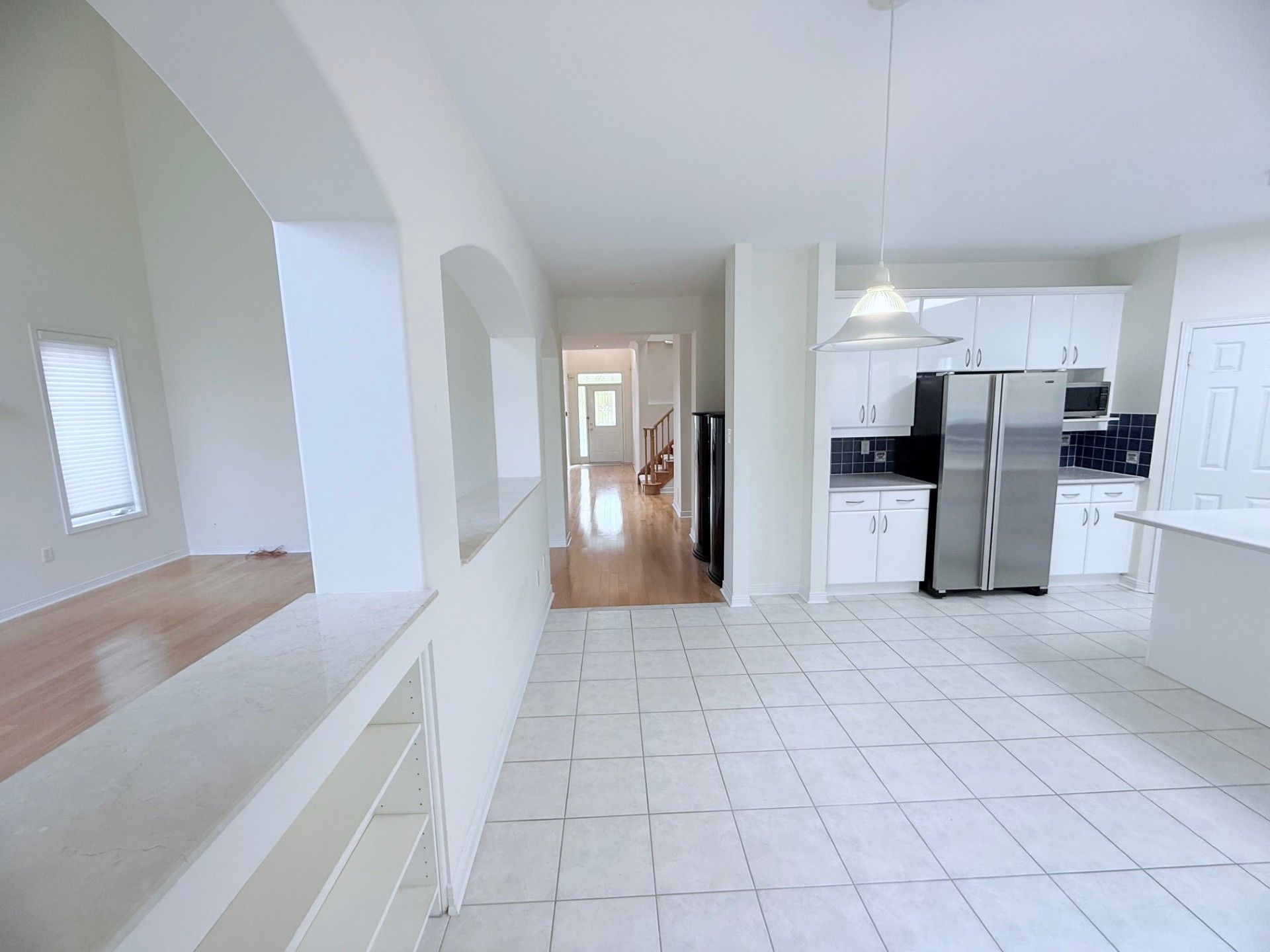 • Open concept kitchen with modern appliances and breakfast bar for convenience.